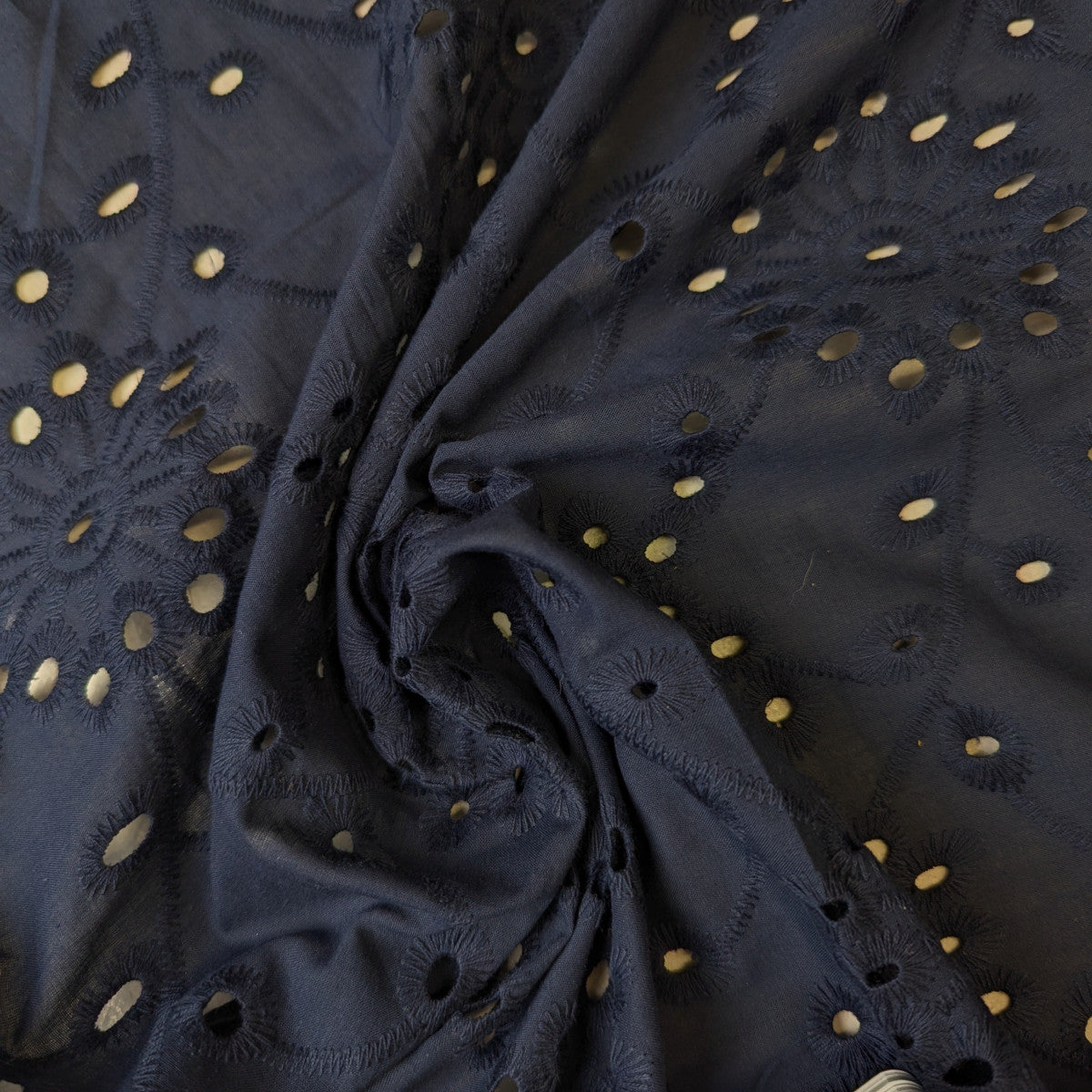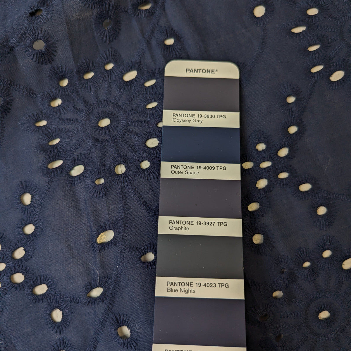 Designerstoff – Deadstock Sangallo Spitze Basisfarbe Outer Space | 120 cm | M6X3X9