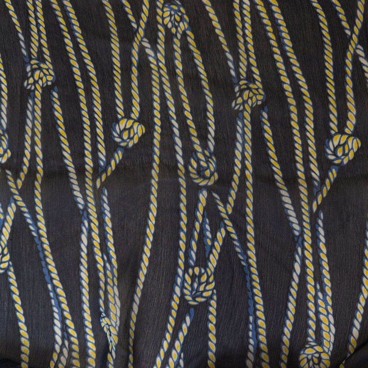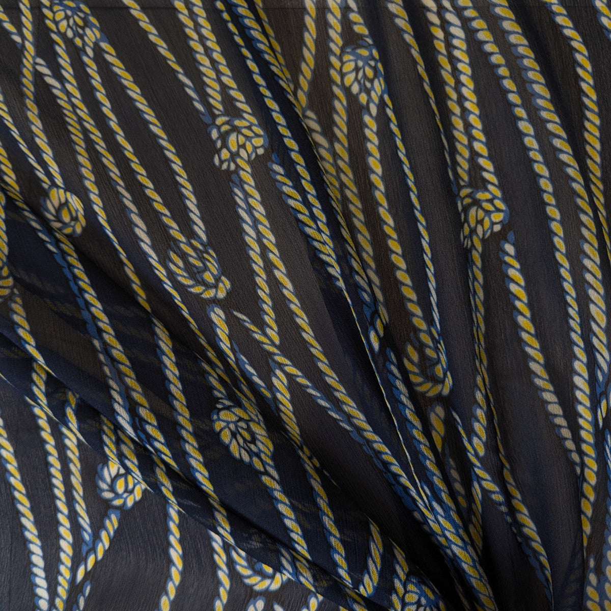 Designerstoff – Deadstock Seide Crepe de Chine Webware Gelb Floral Zitronenmotiv | 140 cm | WEB827R