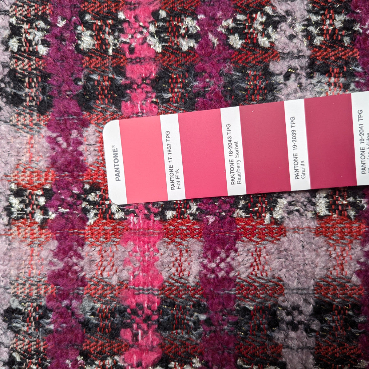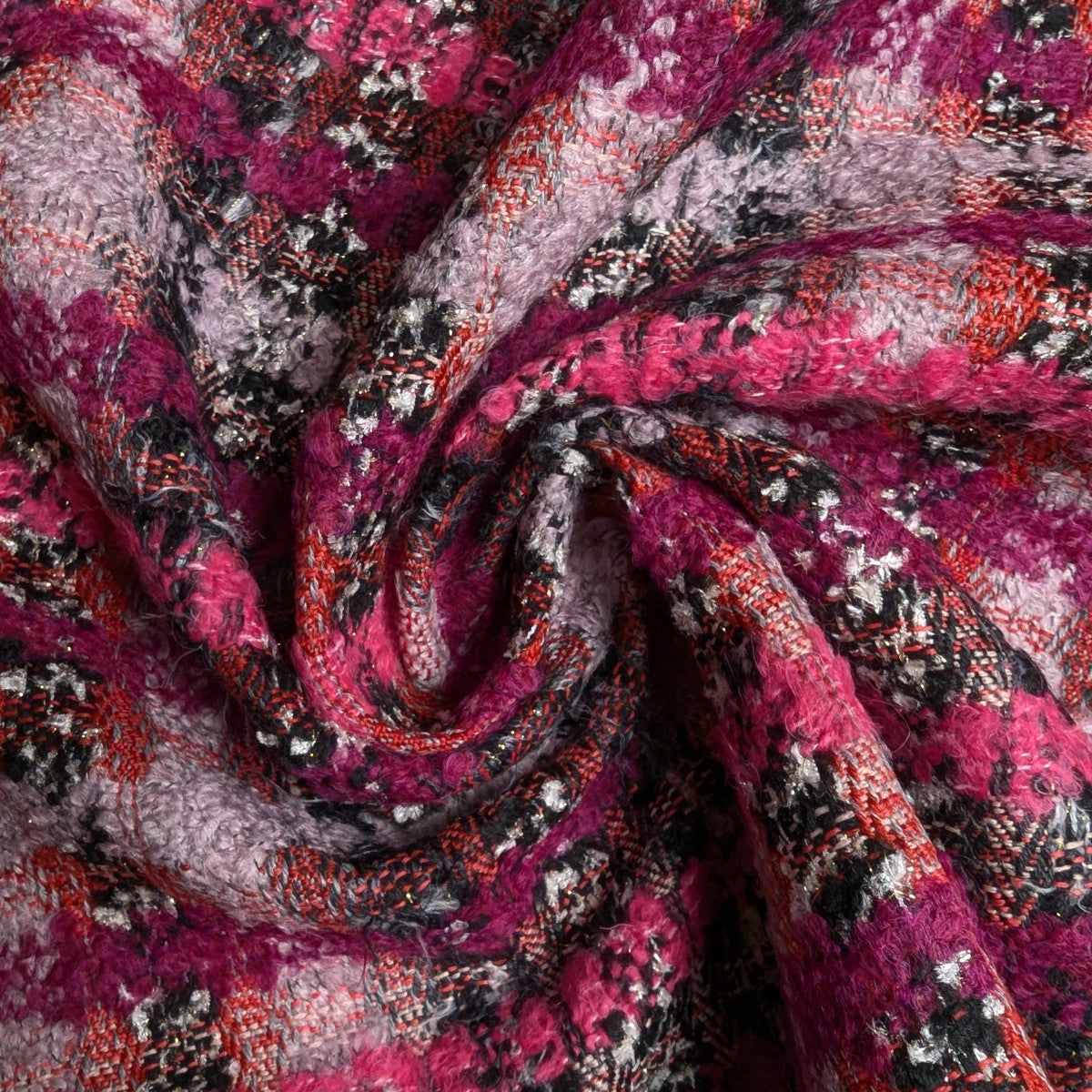 Designerstoff – Deadstock Tweed Karo Pinktöne Hot Pink | 145 cm | M2X5X16