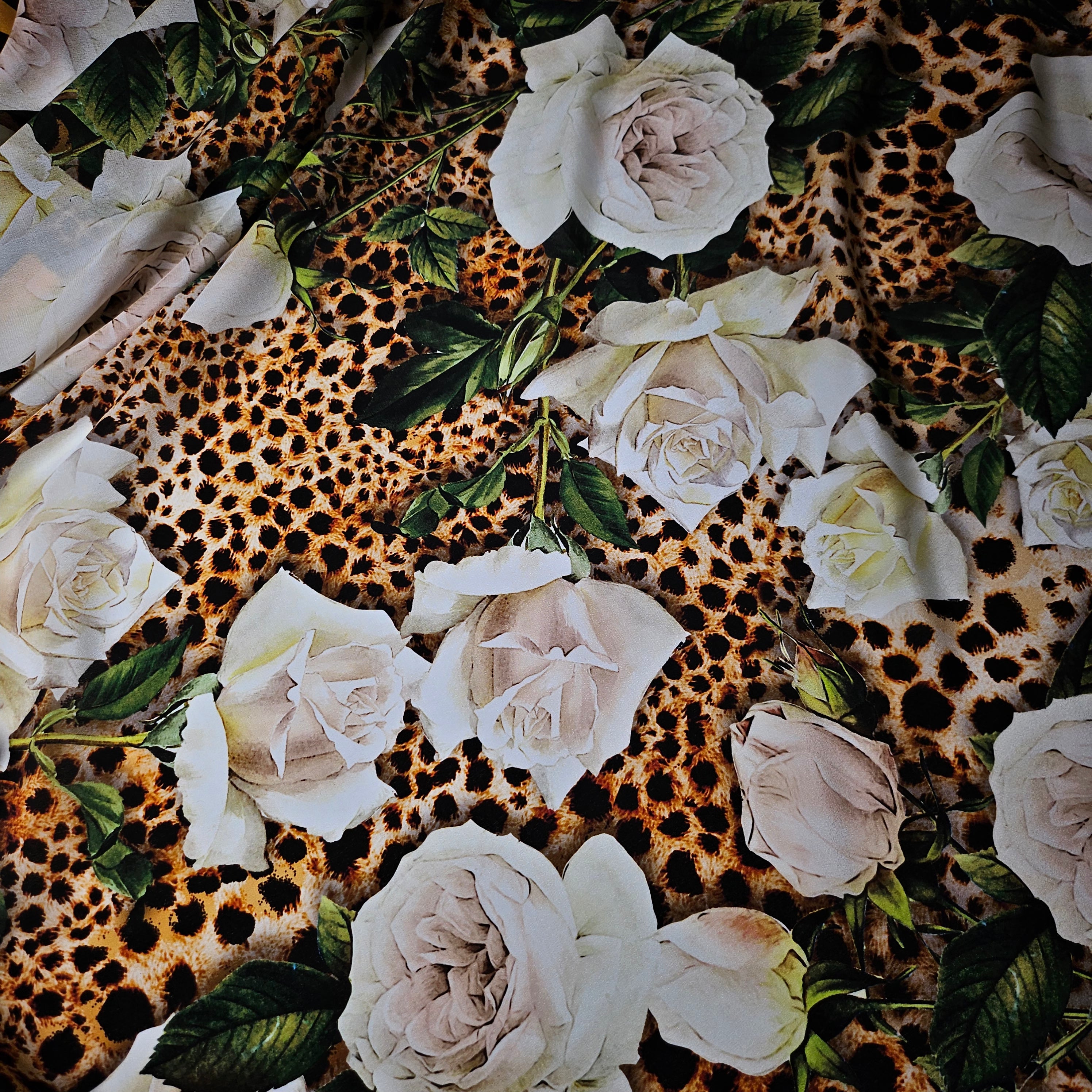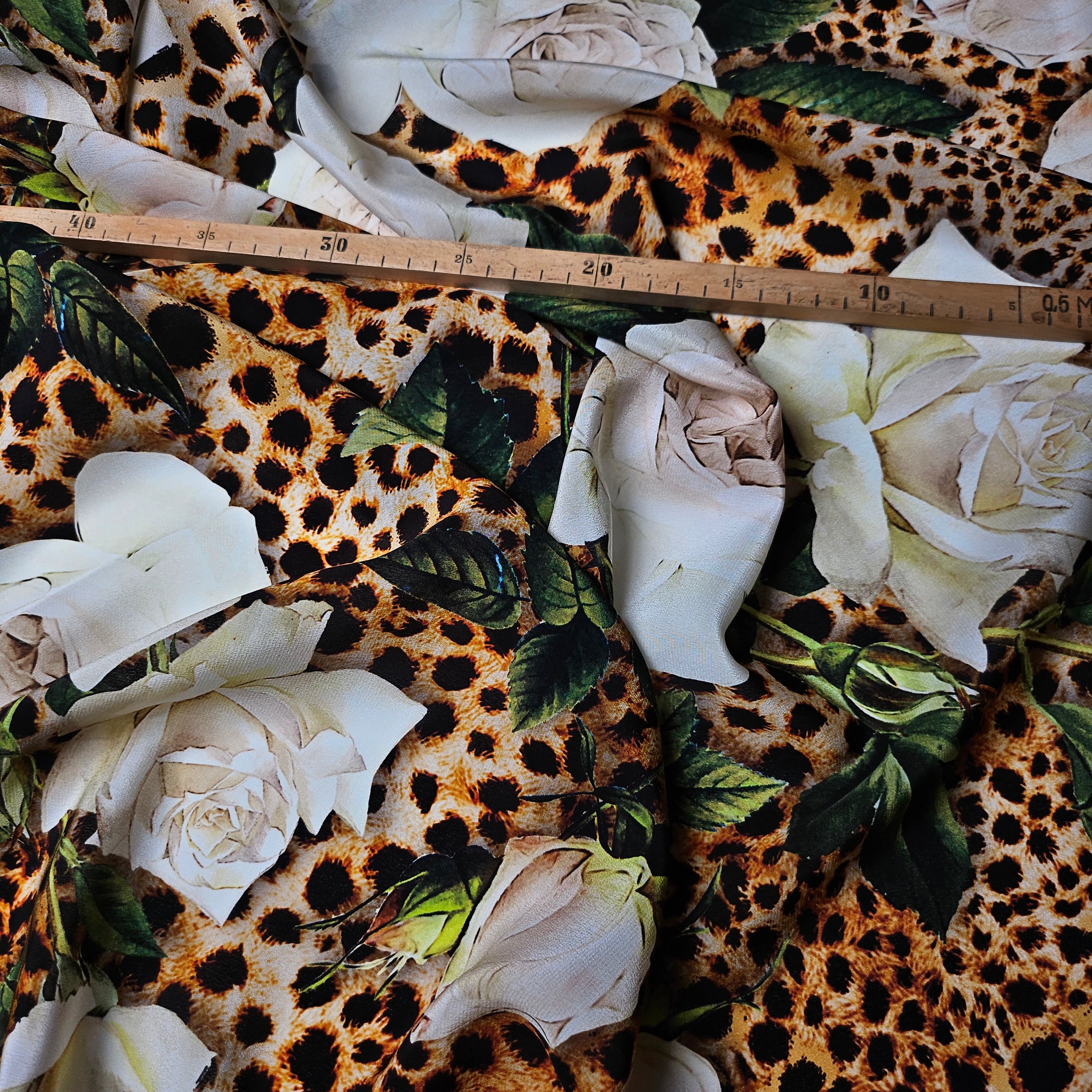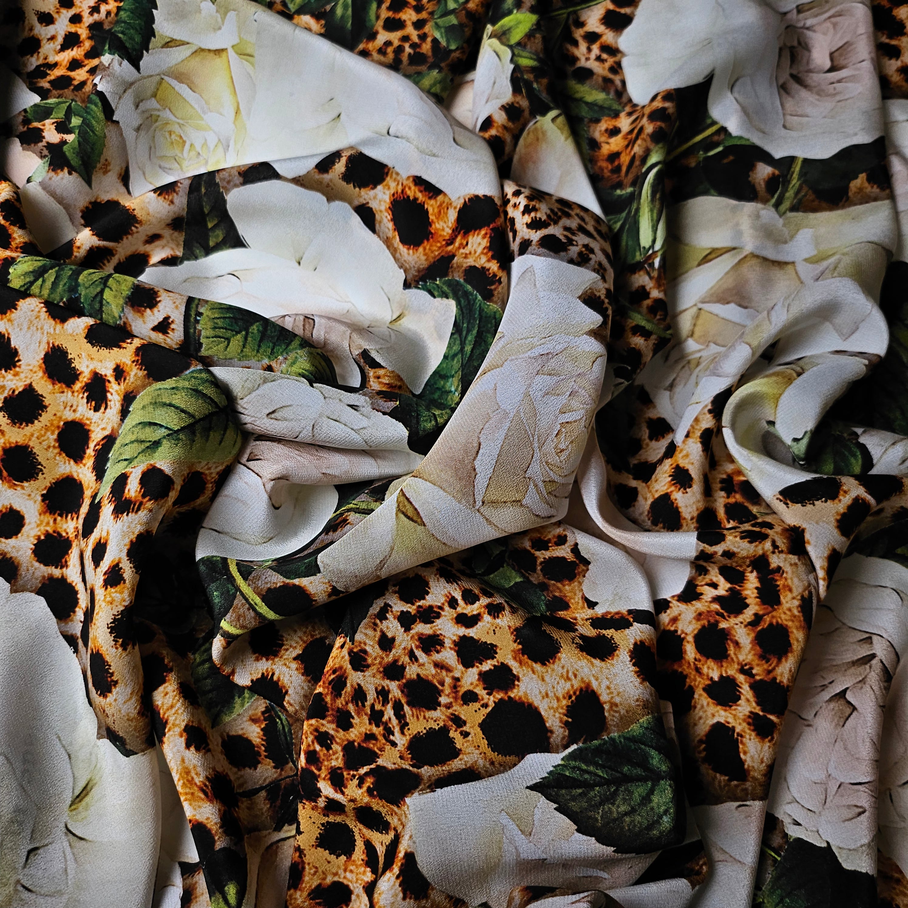 Designerstoff – Deadstock Seidencrêpe mit Leo- und Blumenprint | 145 cm | M5X4X24