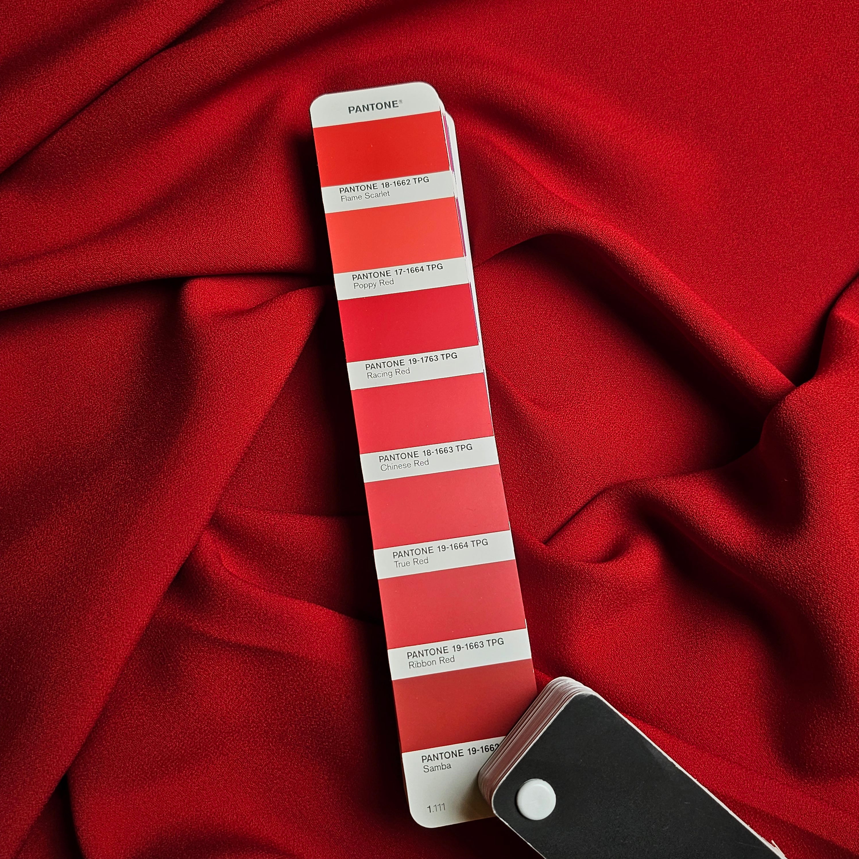 Designerstoff – Deadstock Viskose-Polyester Satin Basisfarbe Pantone Racing Red | 140 cm | M6X4X21