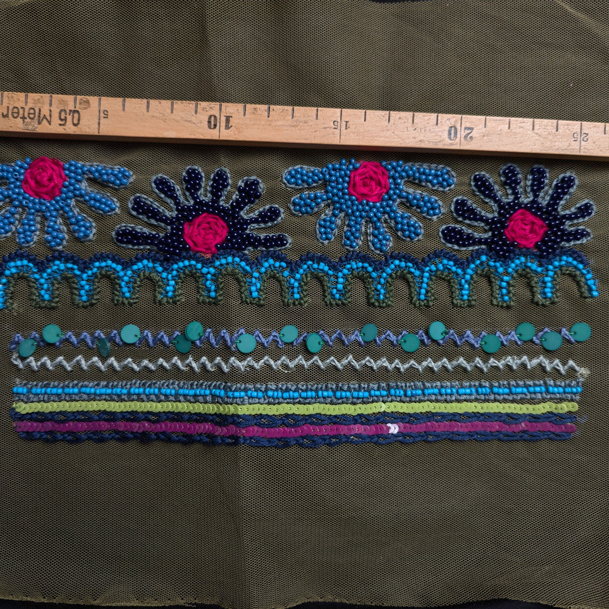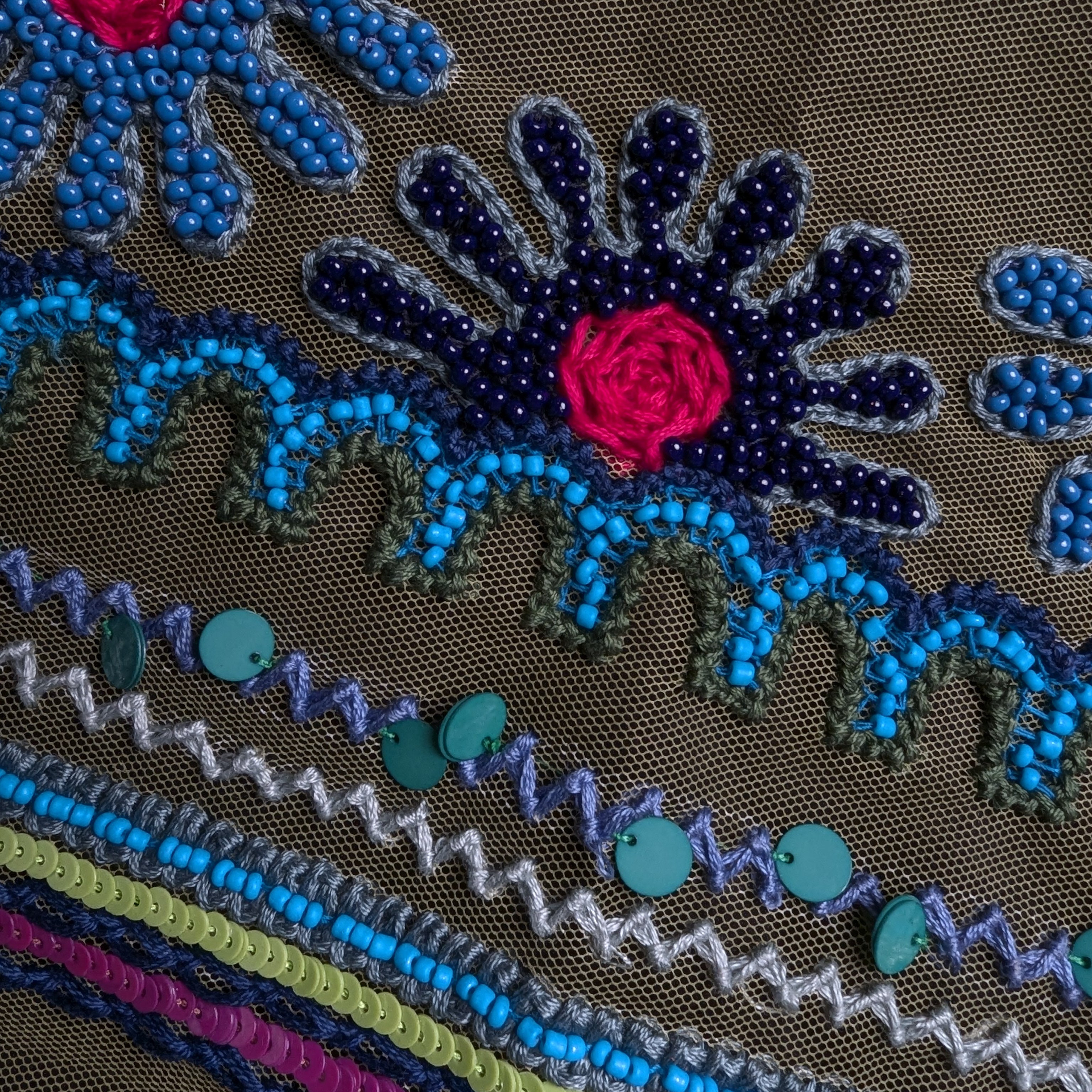 L5X1X002 Patch Perlenstickerei auf grüner Tüllbasis D&G für Taschenklappe 27 cm x 12 cm