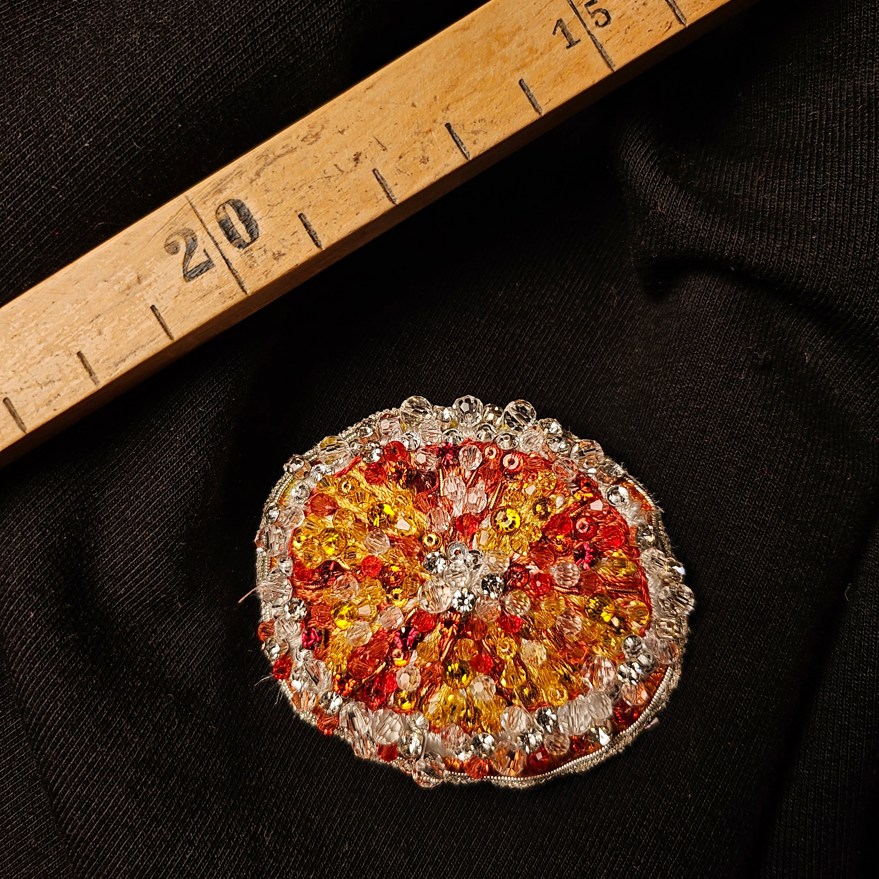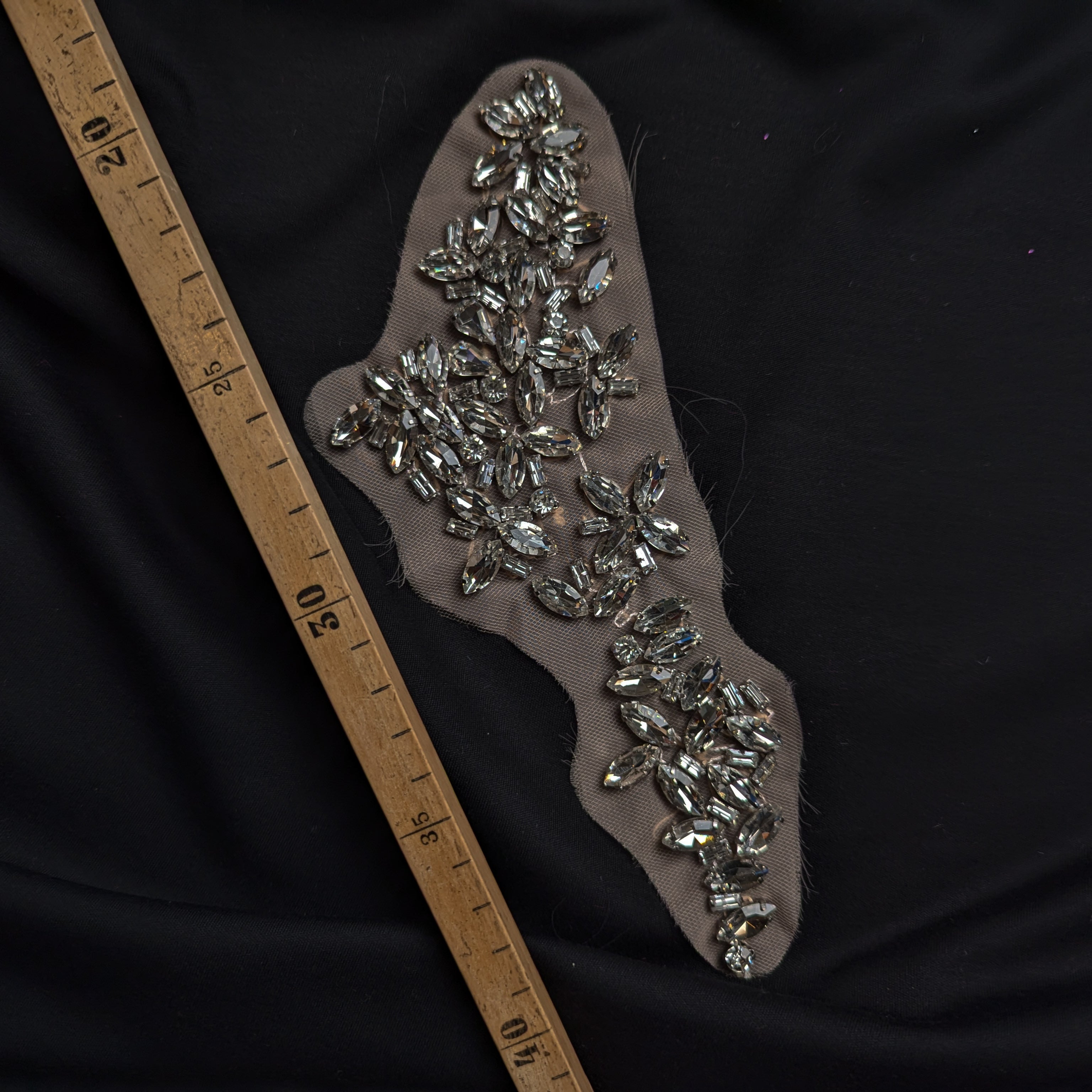 L4X3X012 Schwerer Aufnäher gefasste Edelsteine, Swarovskisteine und Perlen 11 cm x 13 cm
