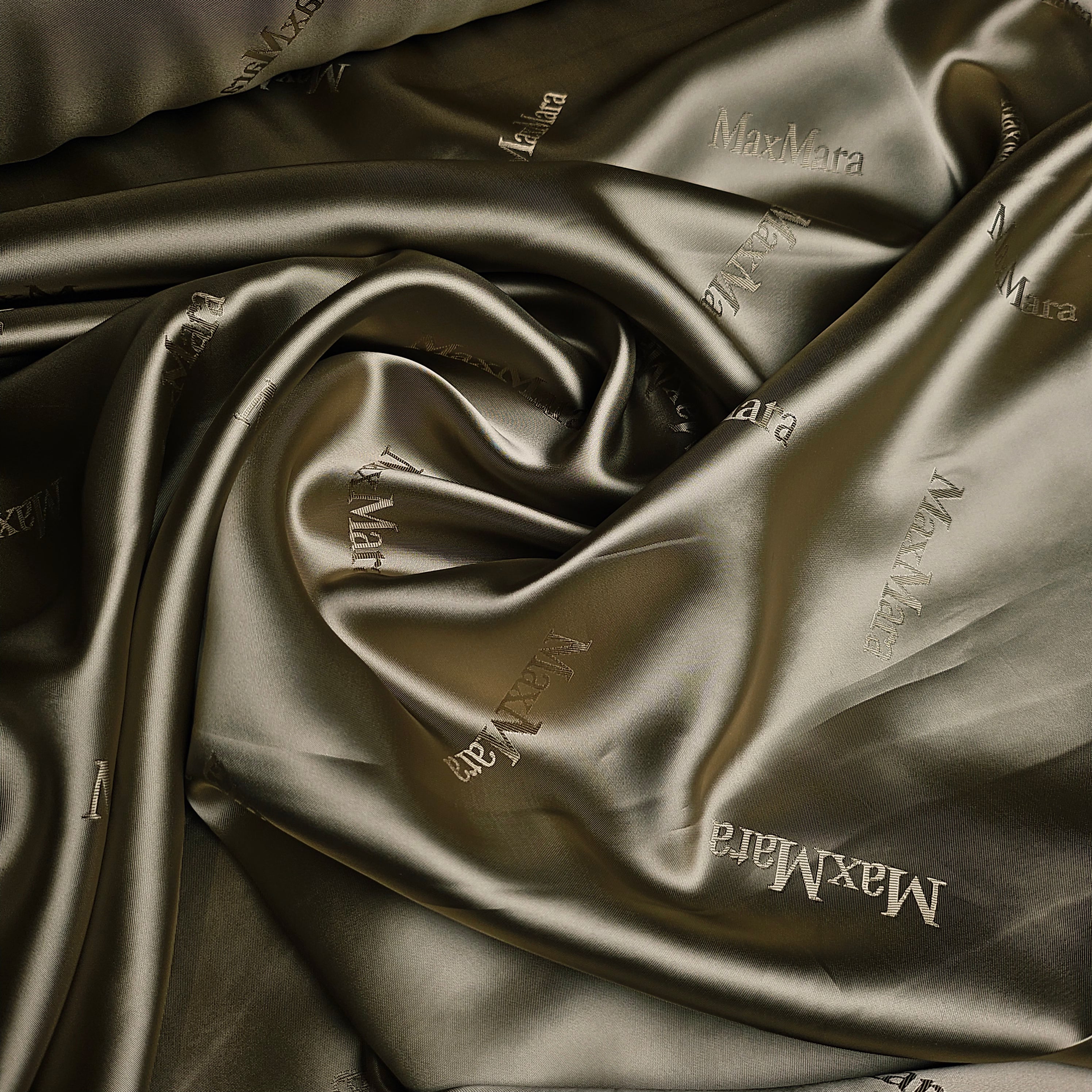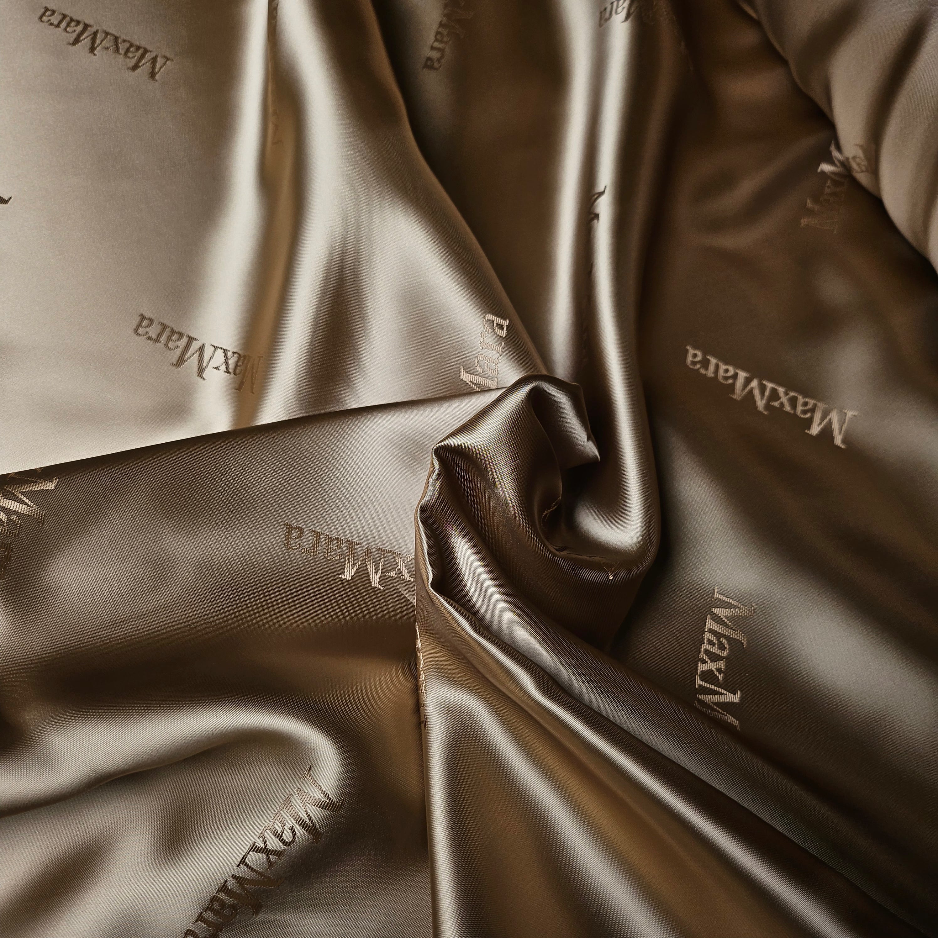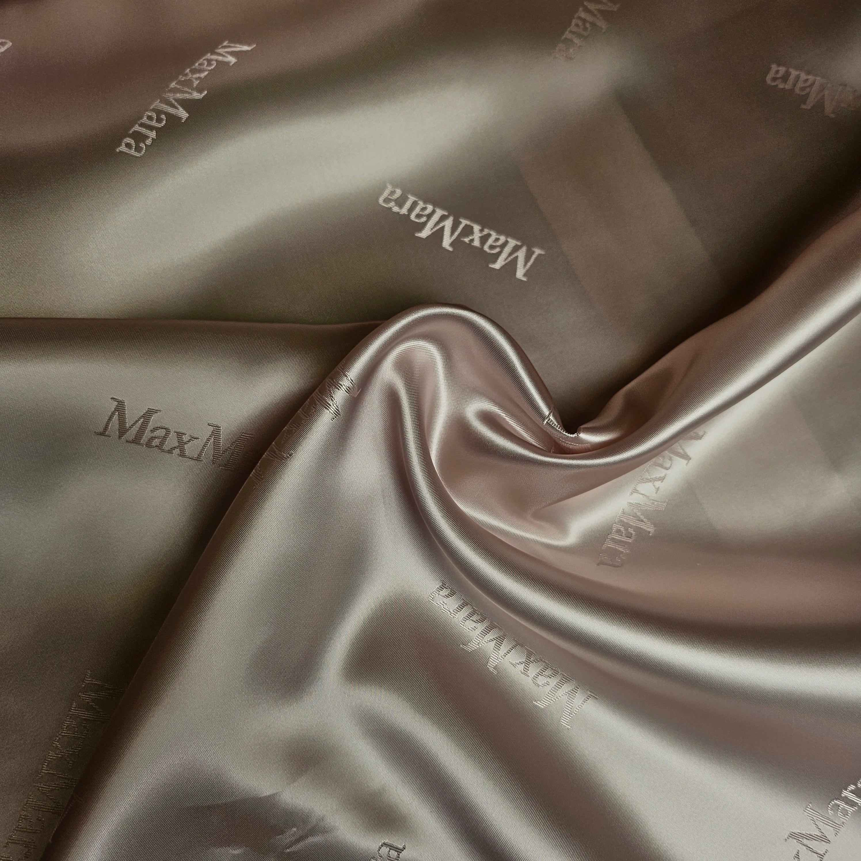 M*x M*ra Designerstoff – Deadstock Viskosefutterstoff in Basisfarbe Pantone Beige Logo Print | 140 cm | M6X2X01