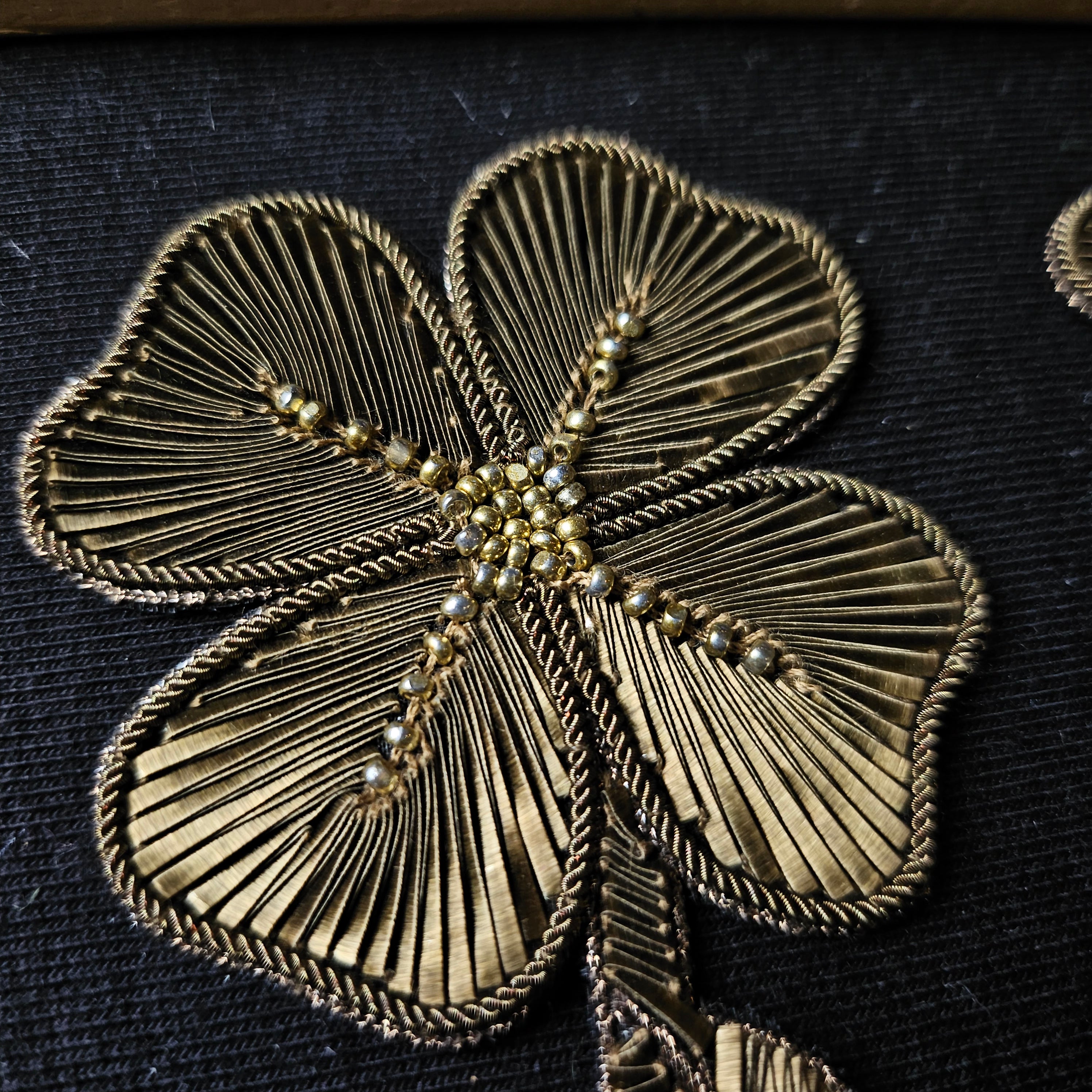 D*G – Metallstickerei Kleeblatt Gold Perlen | 6 × 6 cm | S3X2X028