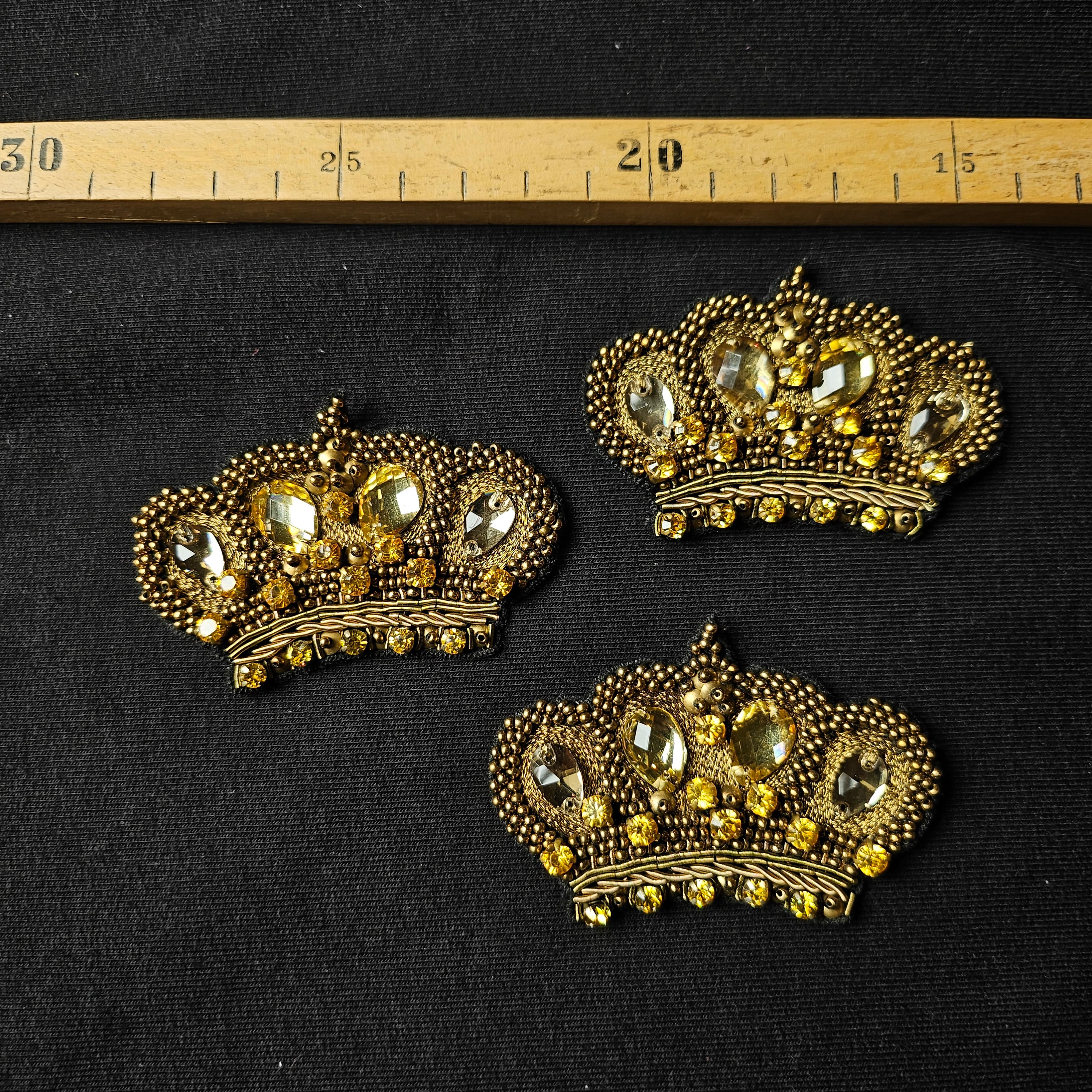 D*G – Metallstickerei-Patch Gold Krone Steine Perlen | 4 × 5 cm | S3X4X019