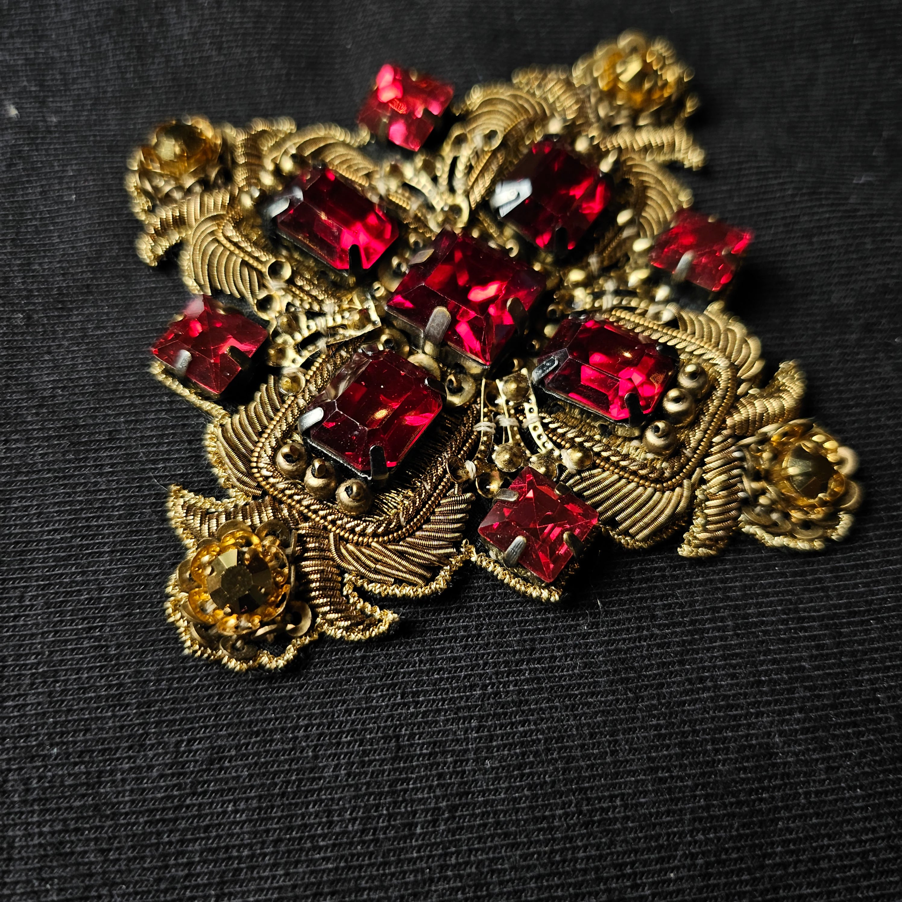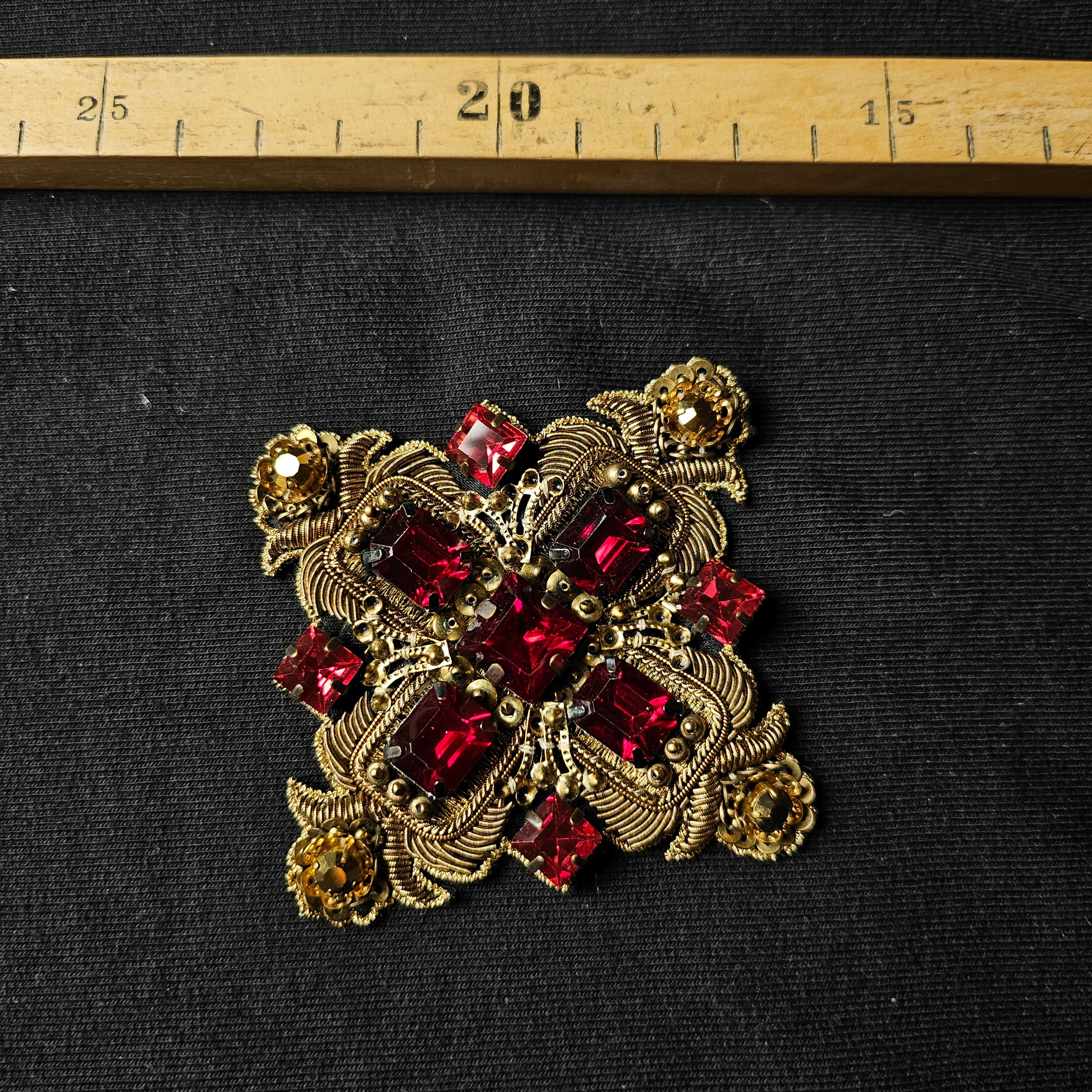 D*G – Metallstickerei-Patch Gold Kristalle Rot | 8 × 8 cm | S3X4X018