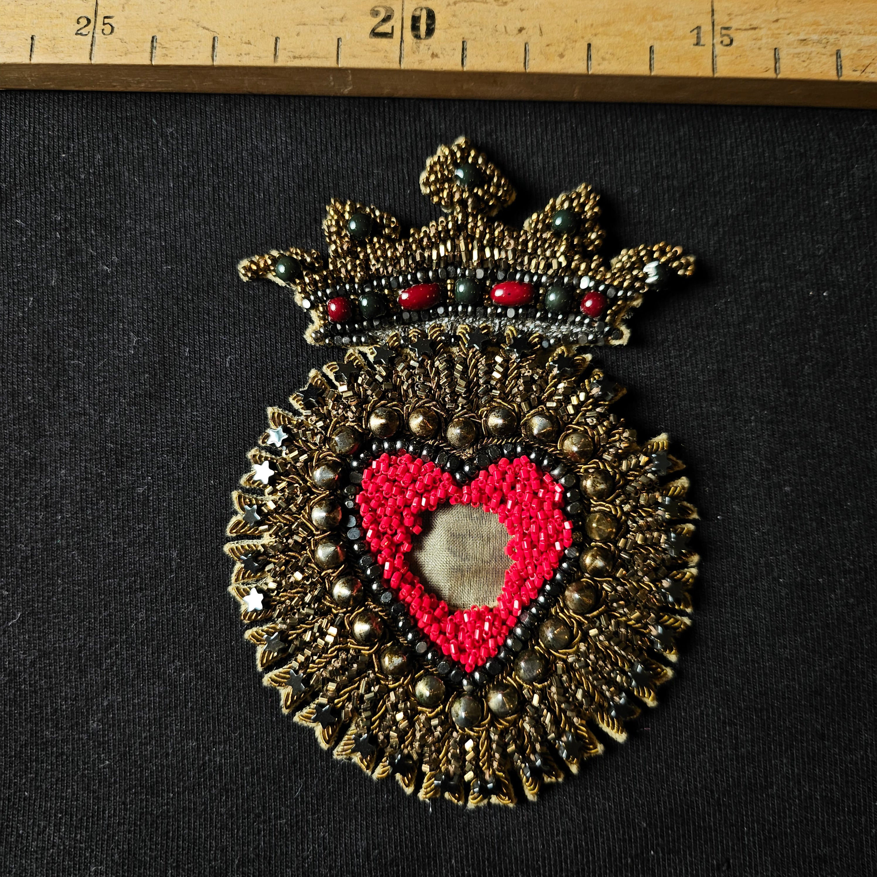 D*G – Metallstickerei Herz Scarlet Red Perlen | 8 × 11 cm | S3X1X051