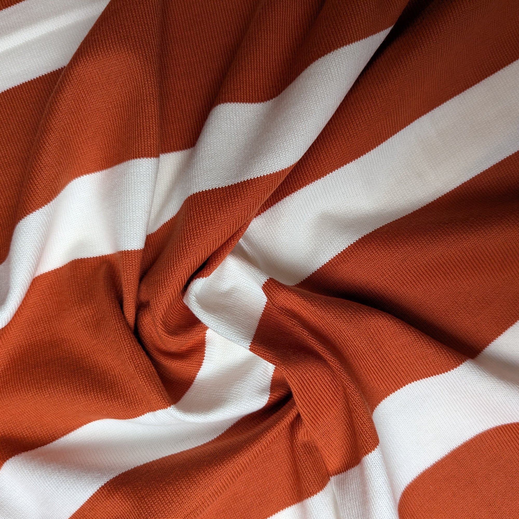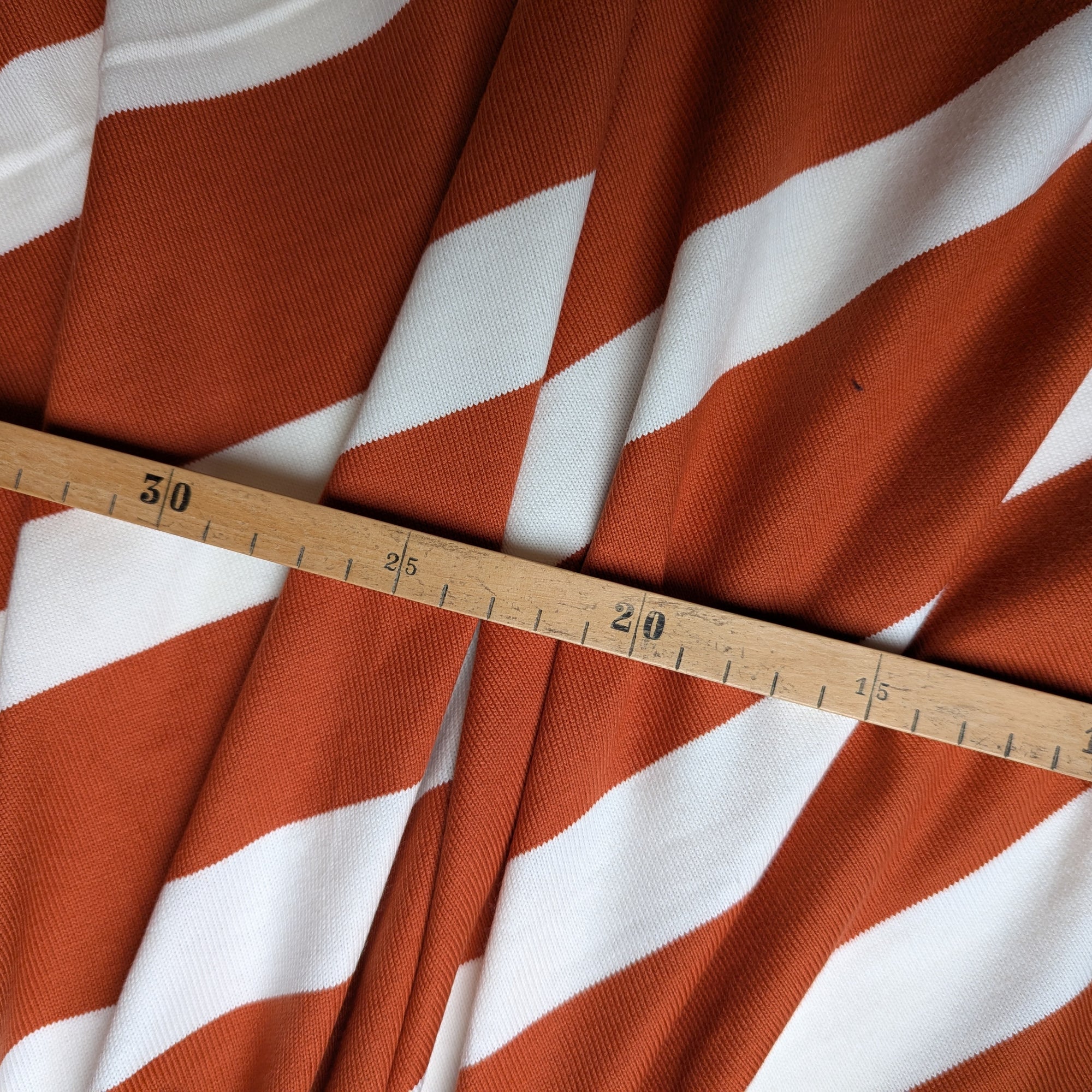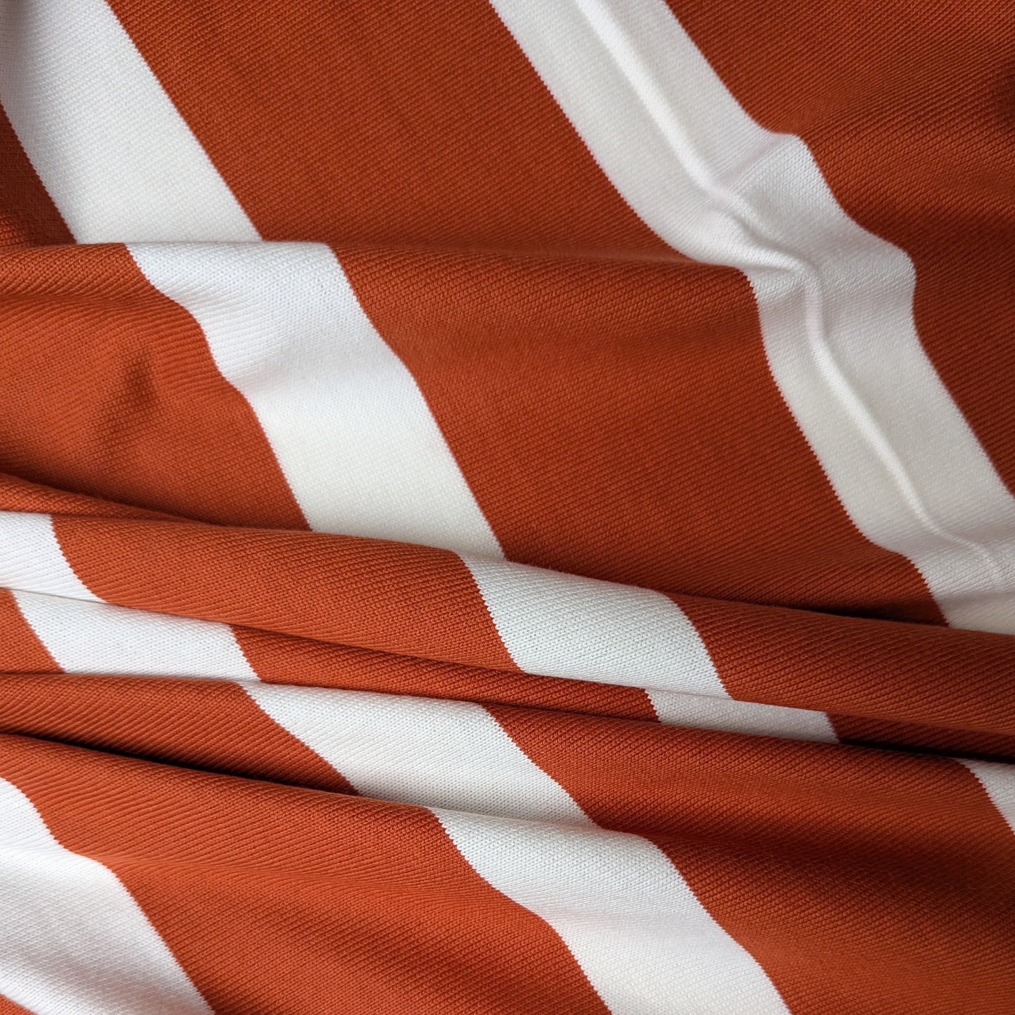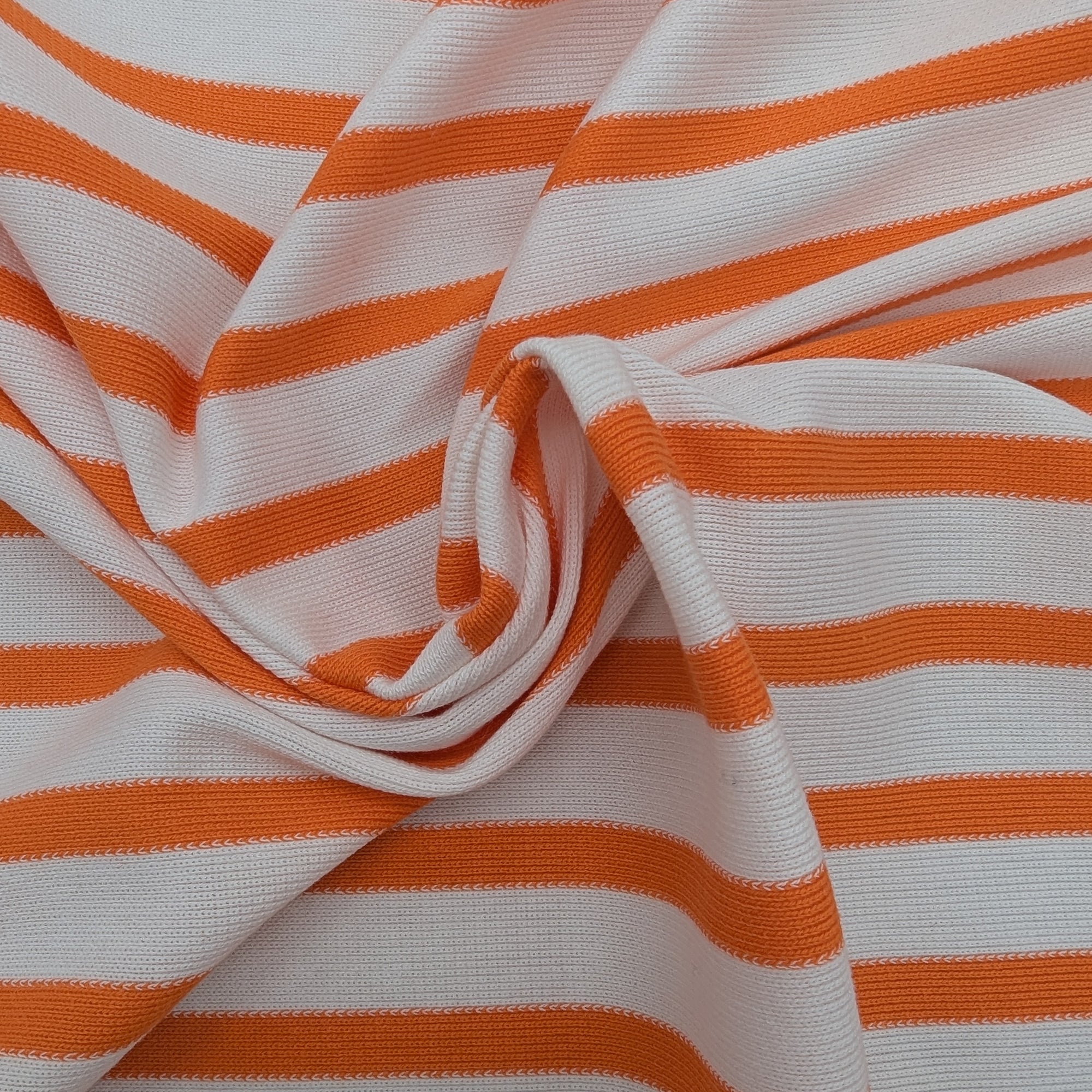 M*rni Designerstoff – Deadstock Baumwolljersey Streifen in Orange/Weiß | 140 cm | M1X4X3