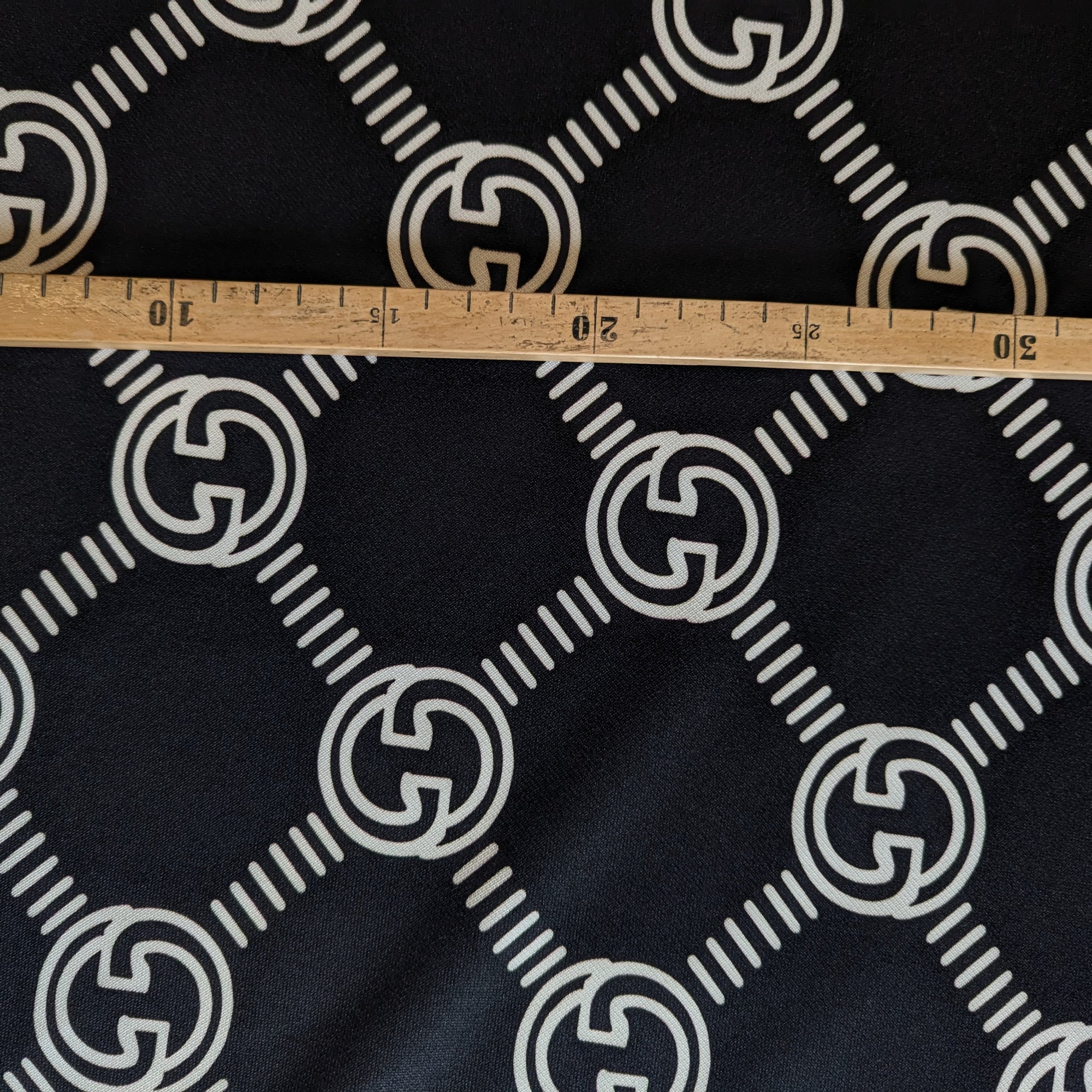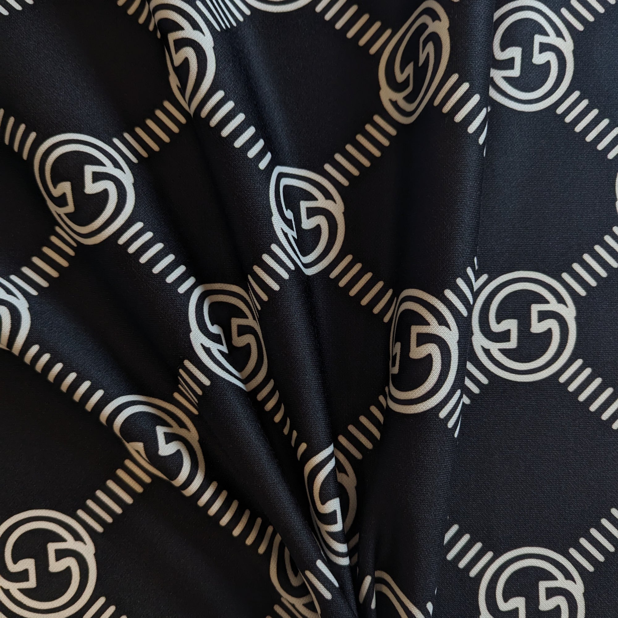 G*cci Designerstoff – Deadstock Baumwoll-Polyesterjersey Großes Logo Schwarz | 163 cm | M5X2X5