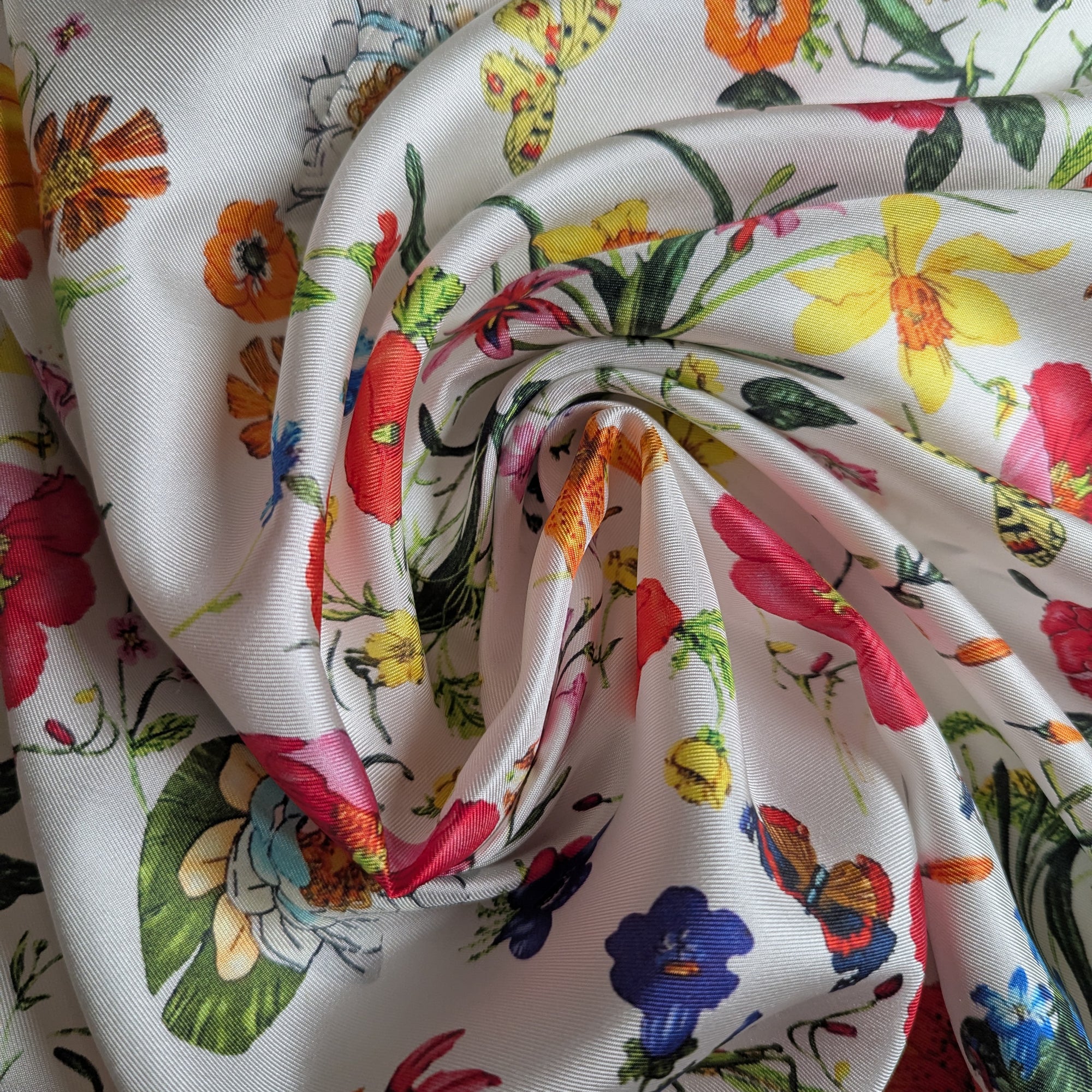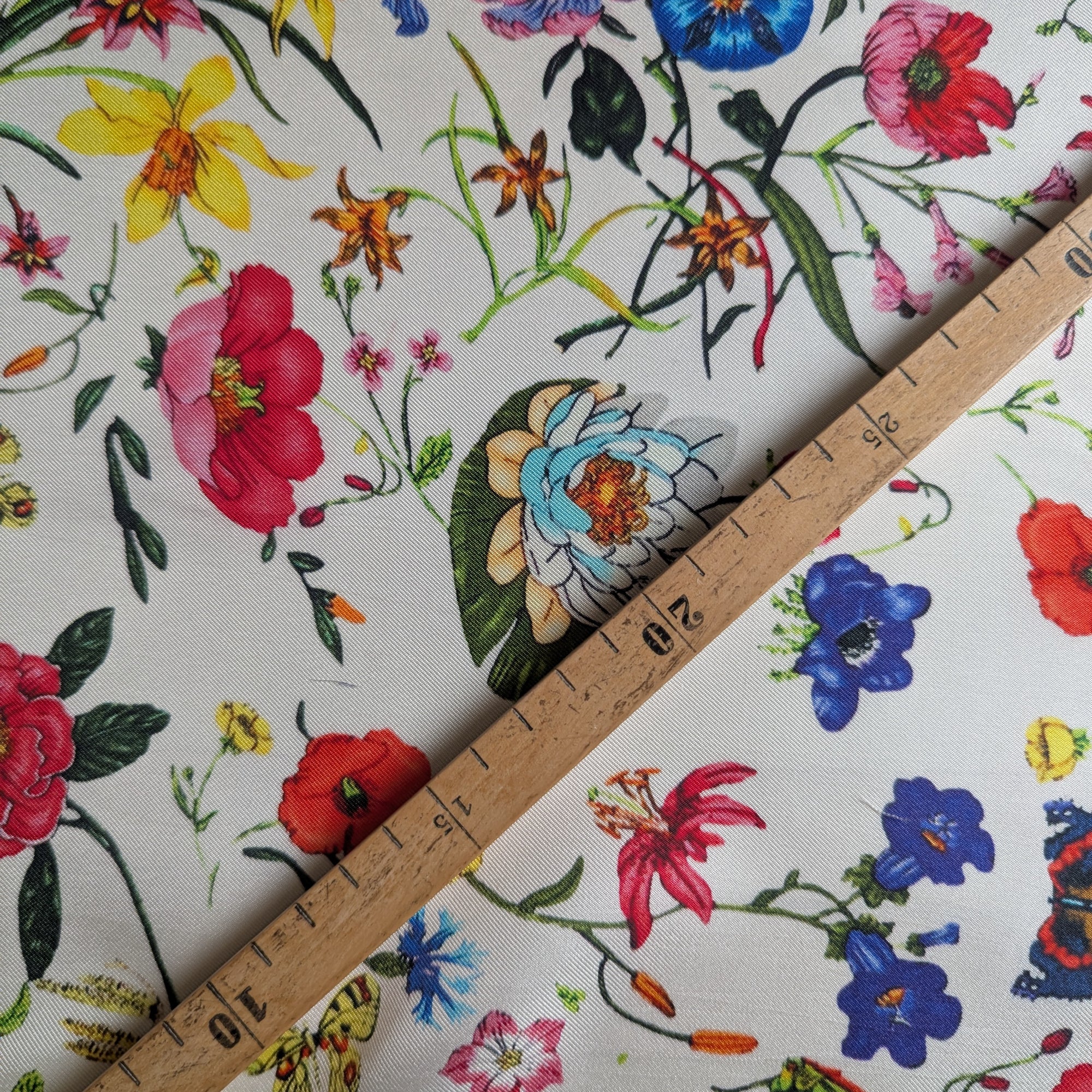 G*cc* Designerstoff – Deadstock Seidentwill Weiß mit Garden-Aufdruck | 140 cm | M2X4X19