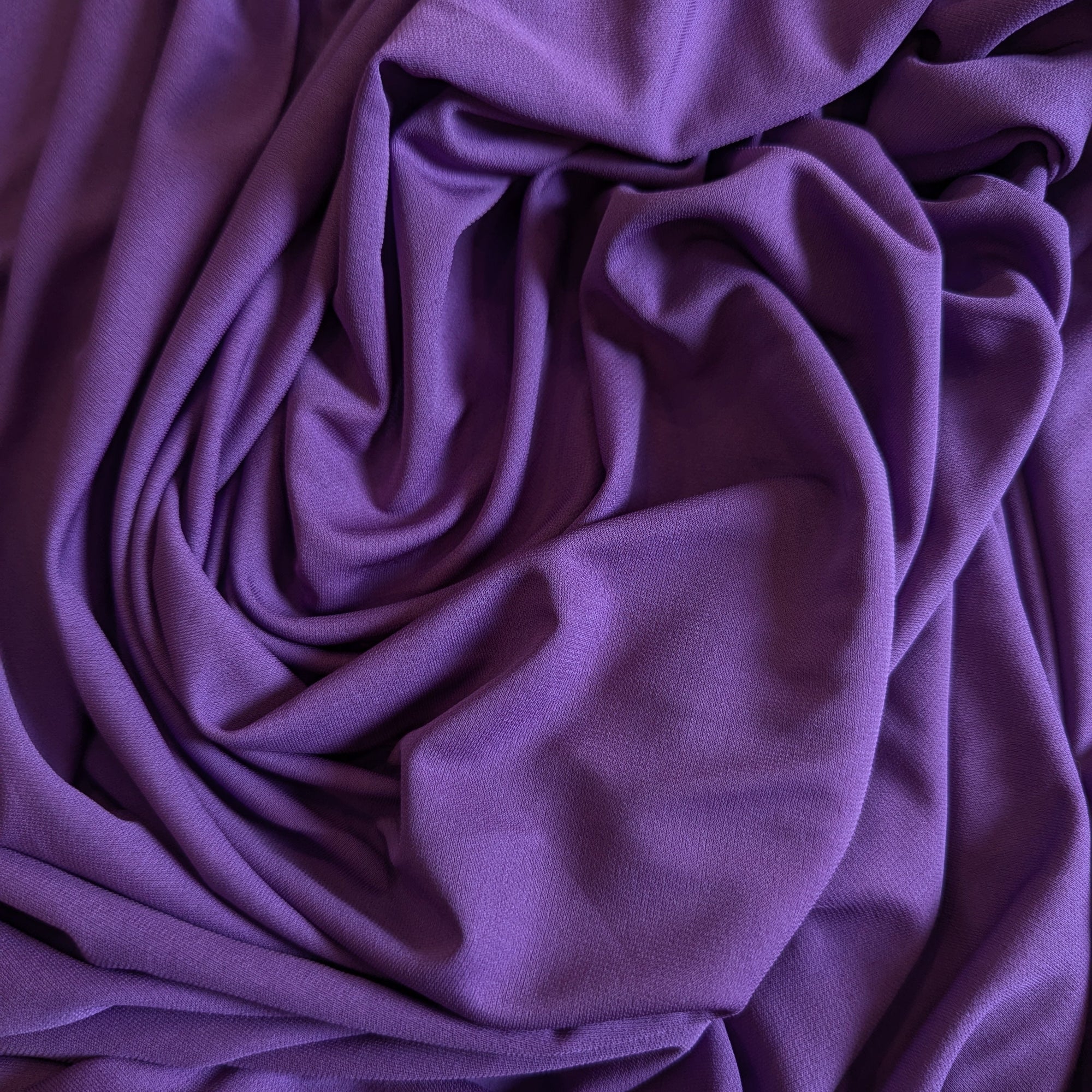 P*cc* Designerstoff – Deadstock Wolle-Seide Jersey Basisfarbe Pantone Royal Purple 70er-Jahre-Muster | 140 cm | M9X6X10