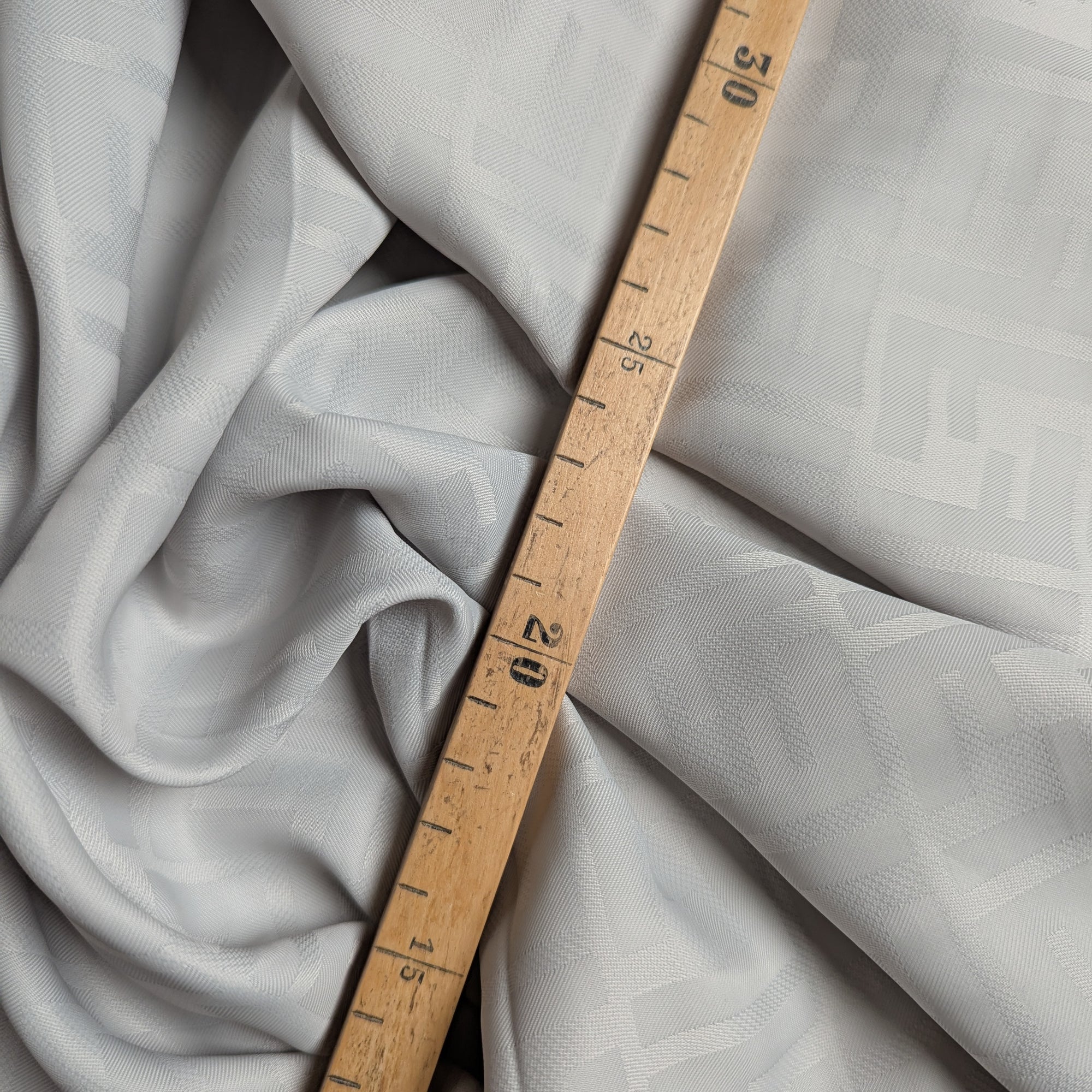 F*nd* Designerstoff – Deadstock Viskosejacquard Logoeinwebung Hellgrau | 140 cm | M2X4X13