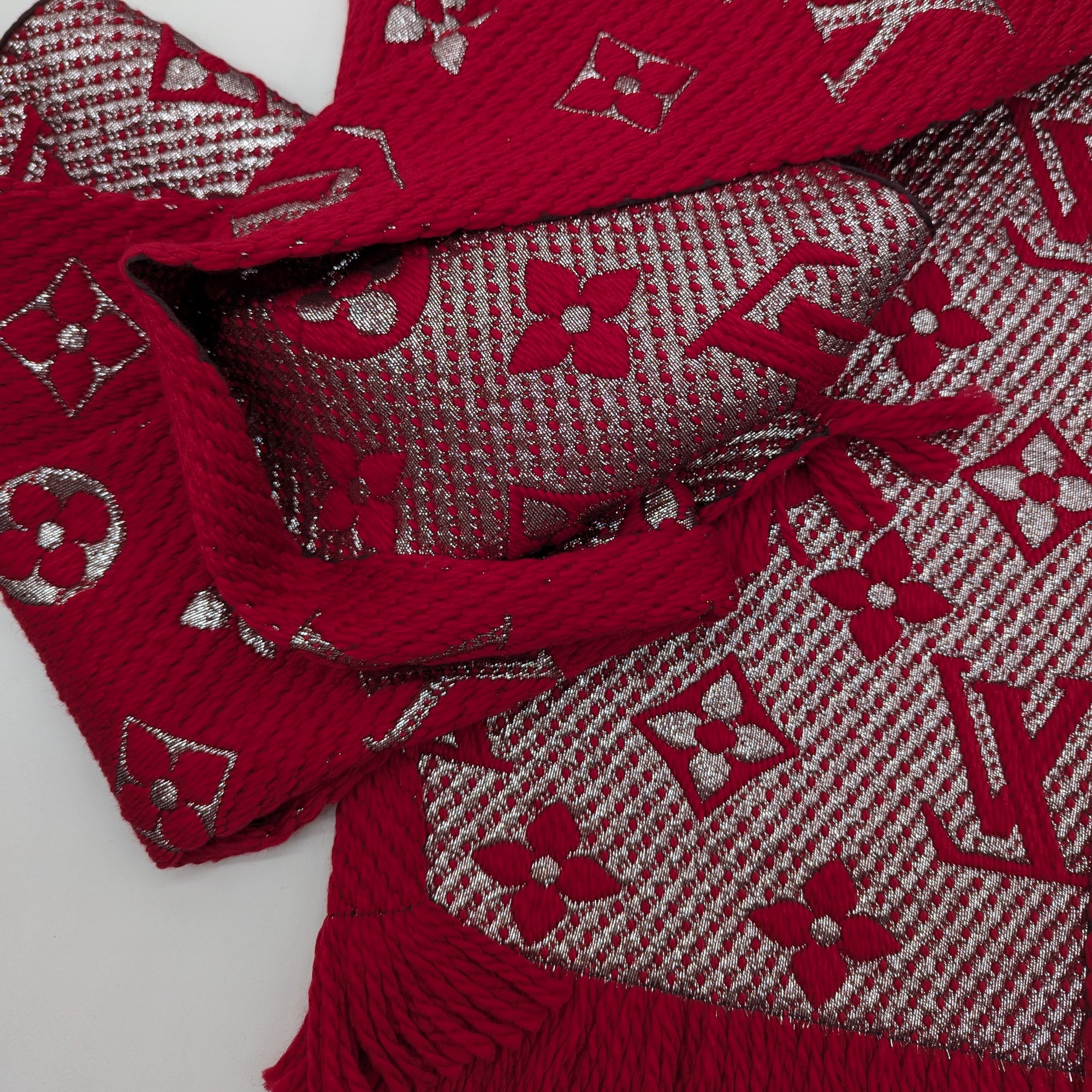 L*go*m*nia – Deadstock Schal Logomania Dunkelrot Silber | 140 × 140 cm | S4X1X001