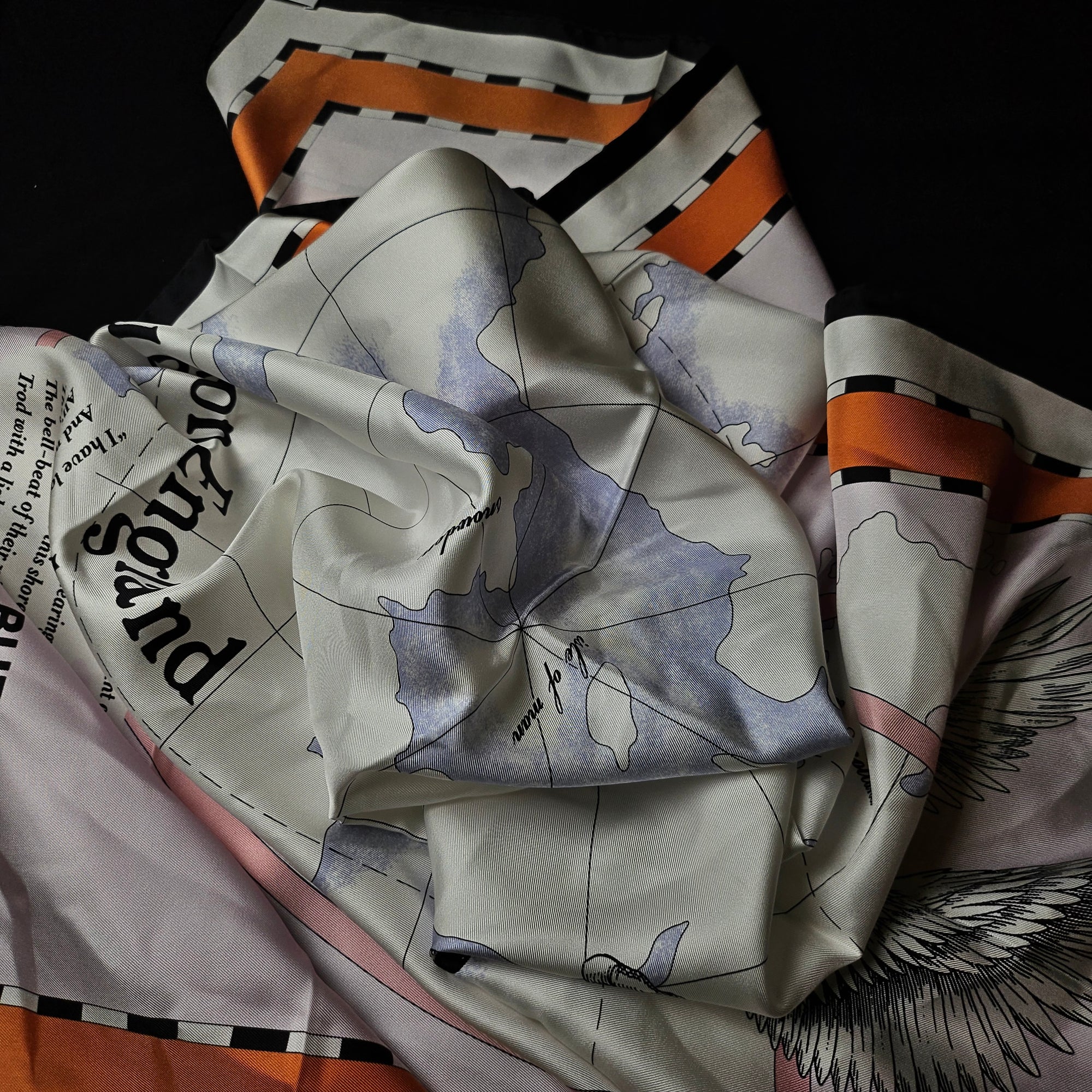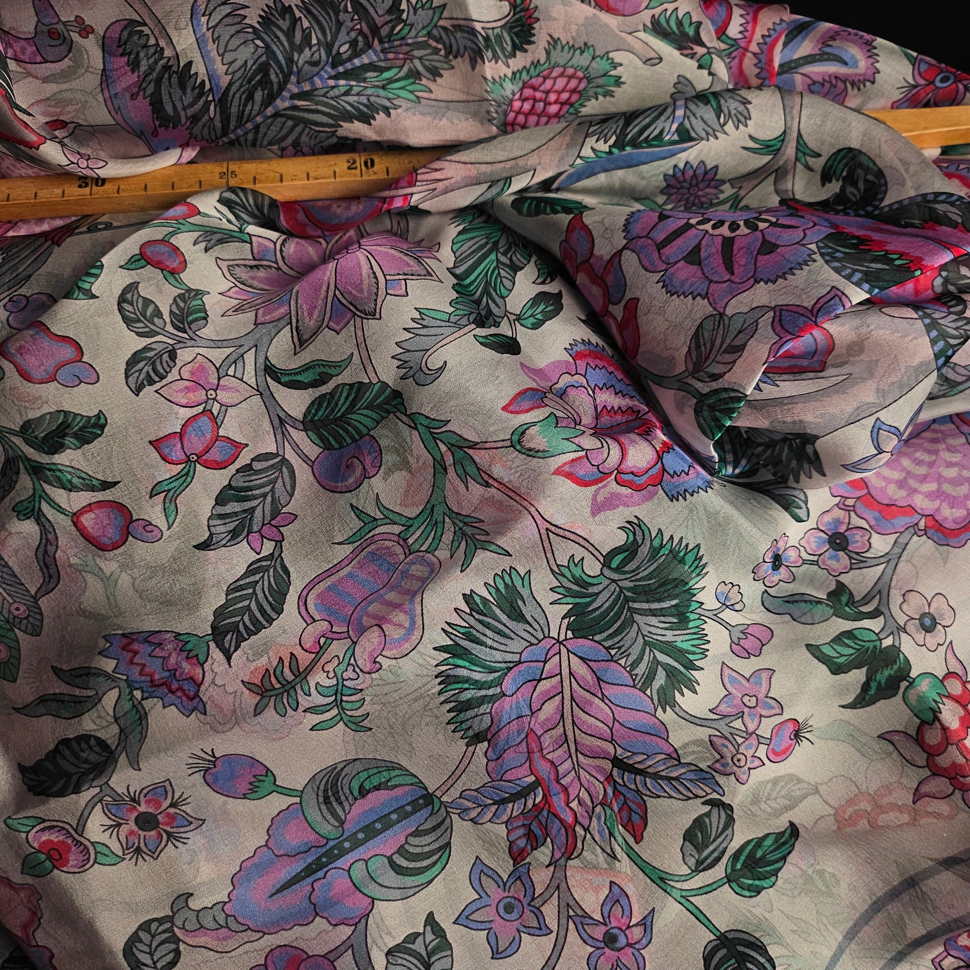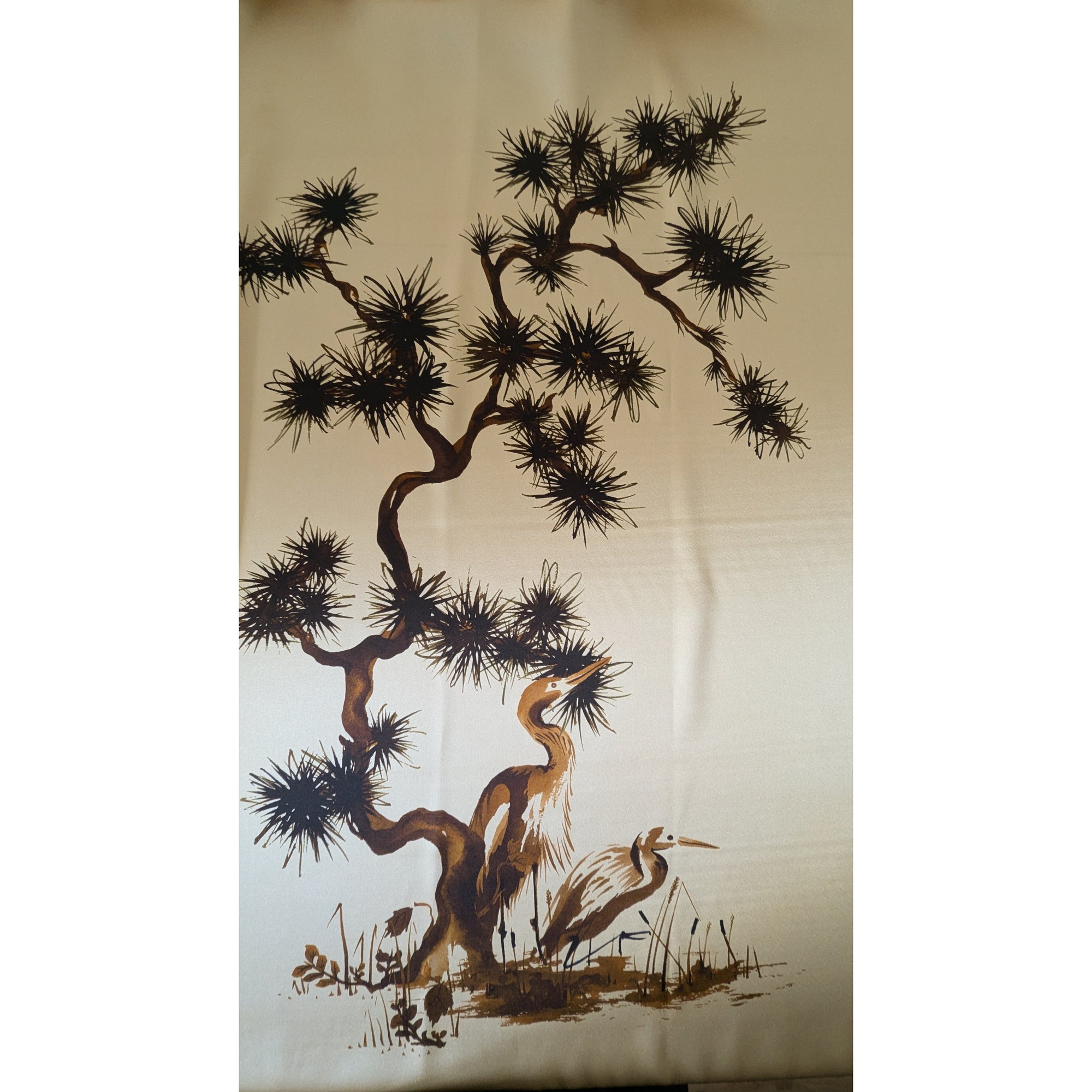 Panel schwere Satinseide G*cci mit Kranichmalerei 300 cm x 140 cm S5X1X023