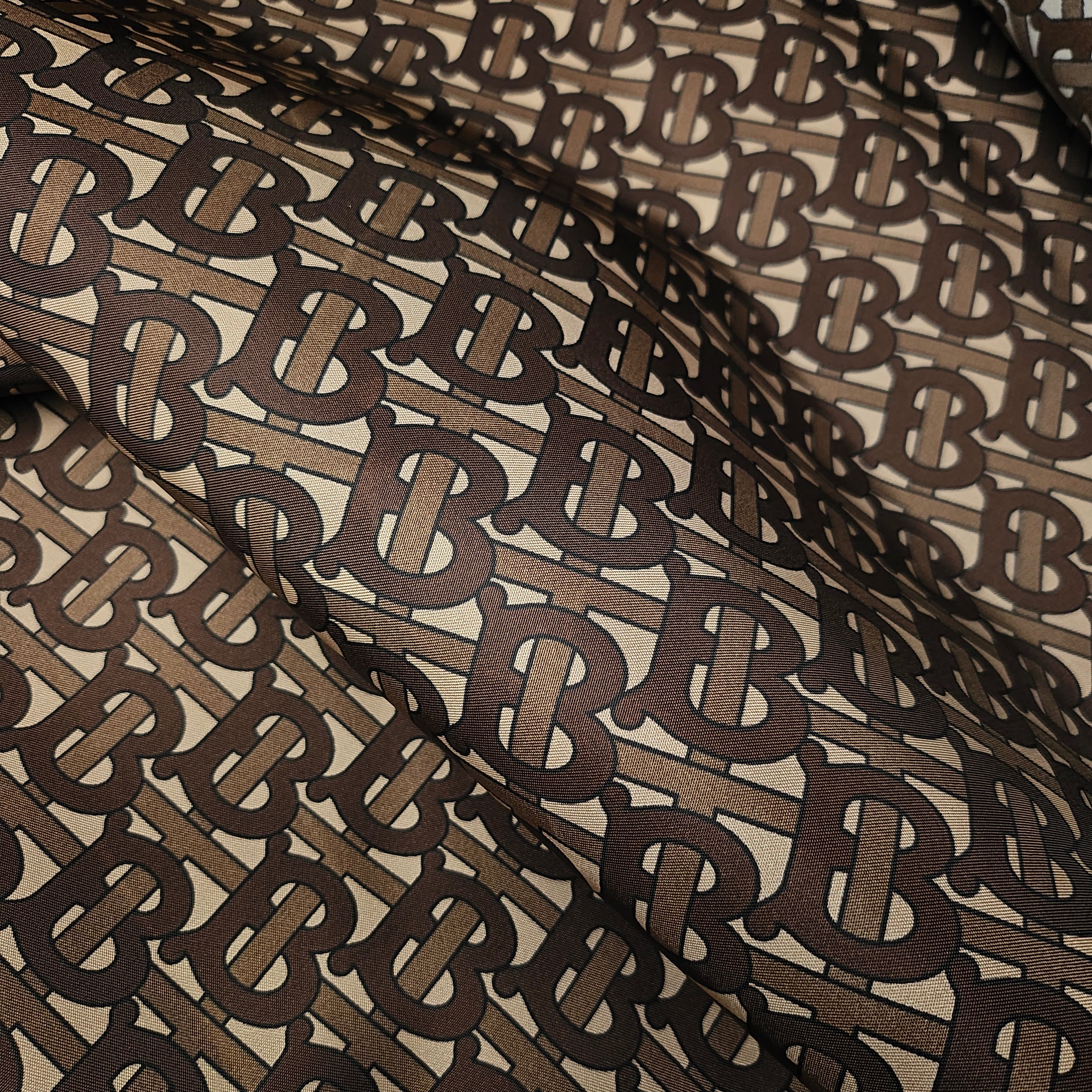B*rberry Designerstoff – Deadstock Lycra Monogram-Design Cocoa Mocha | 145 cm | M2X1X10