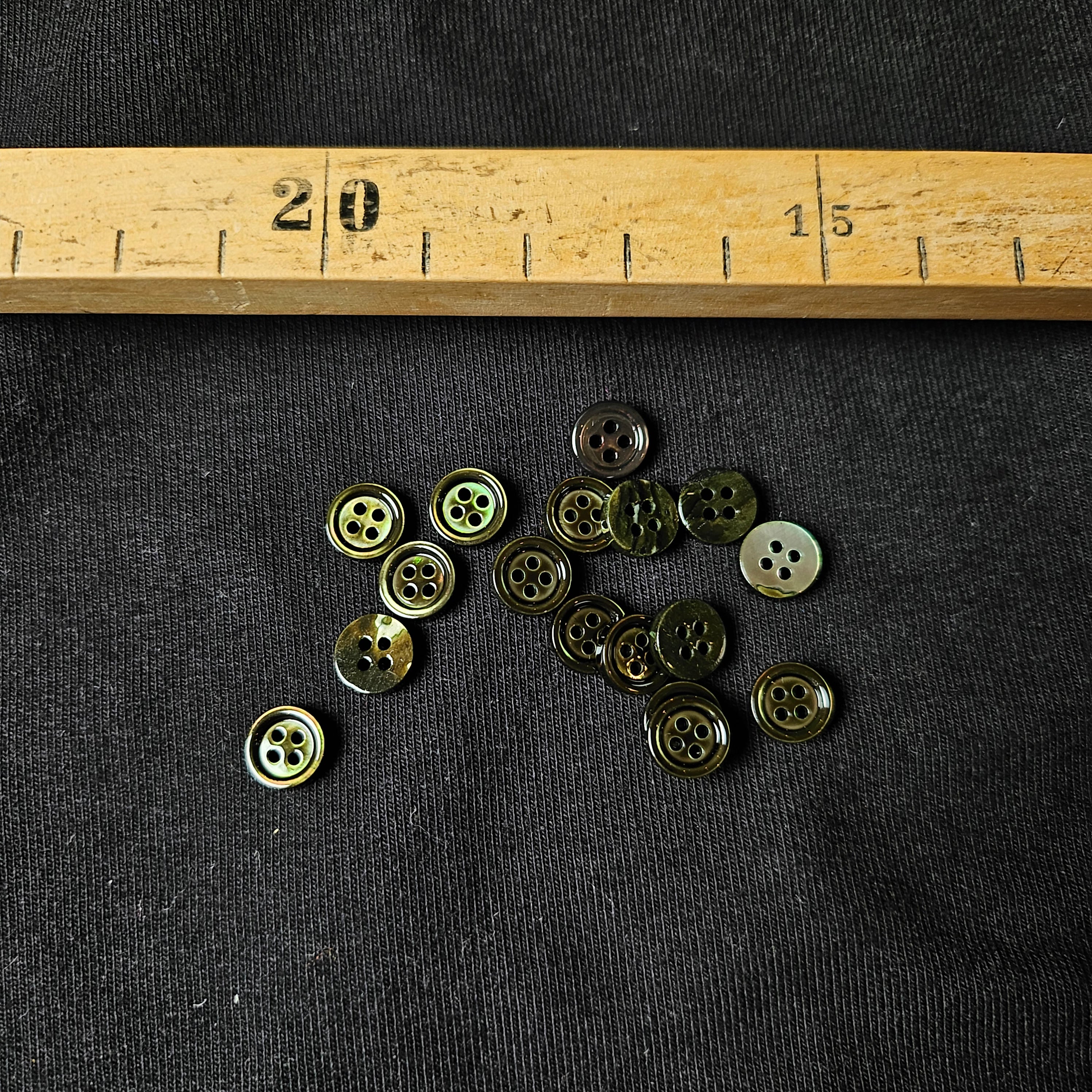 15 Knöpfe Perlmutt dunkelgrün ca. 1 cm 4 Loch S9X5X025