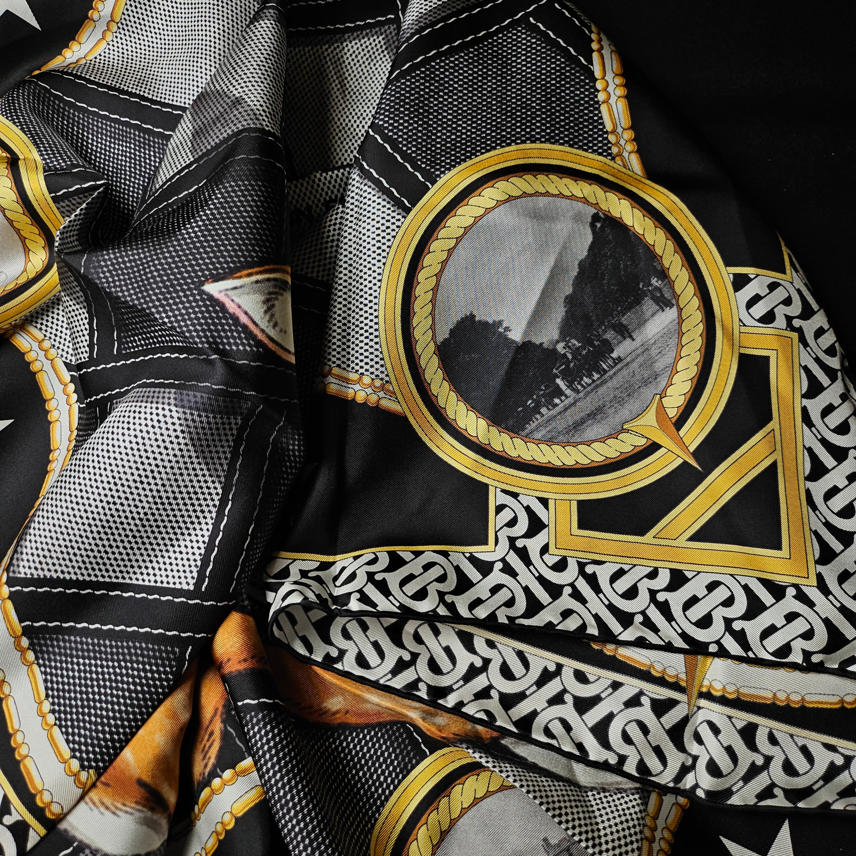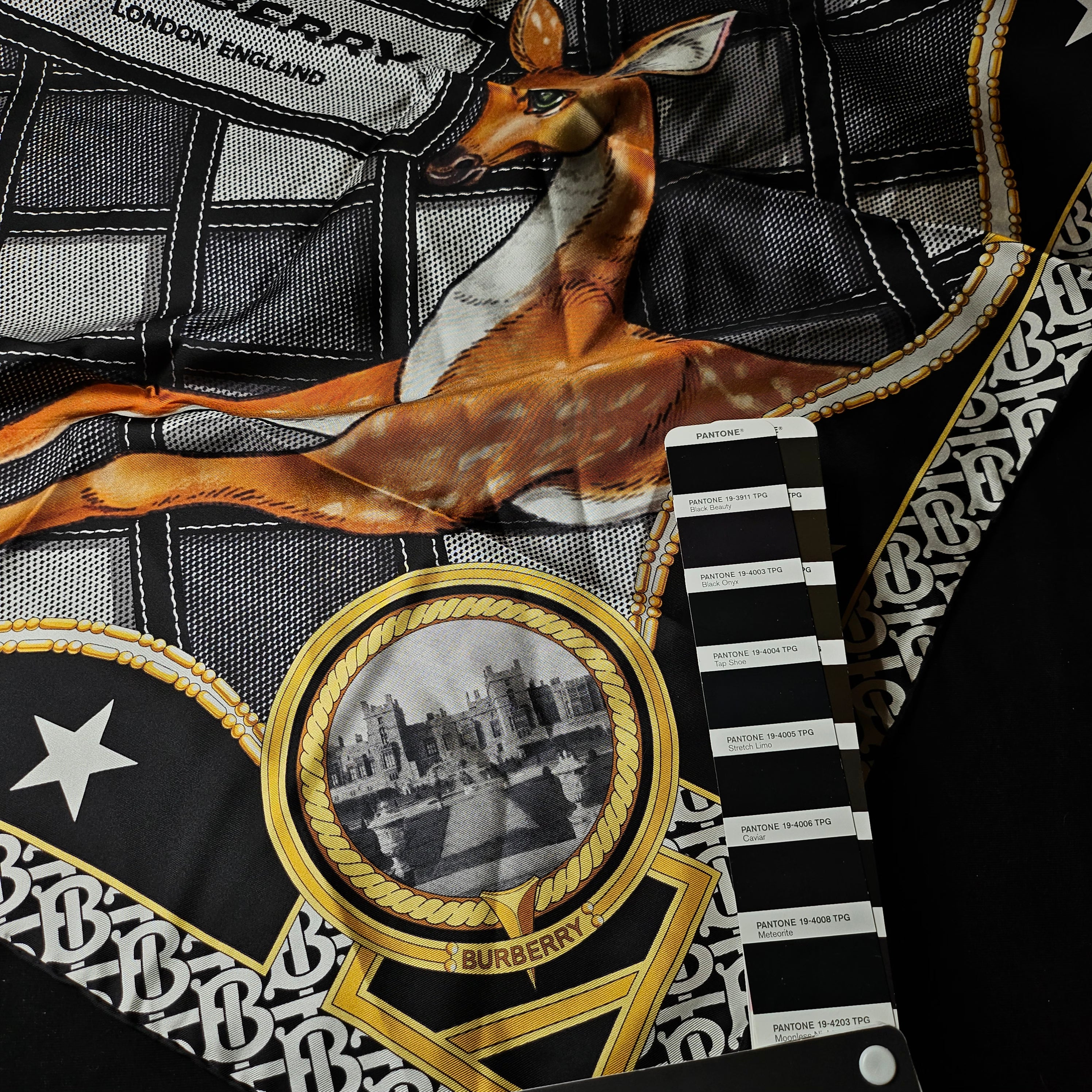 B*rberry Designerstoff – Deadstock Meterware Polyesterstoff Schwarz mit Weißem Logo | 150 cm | M1X4X6