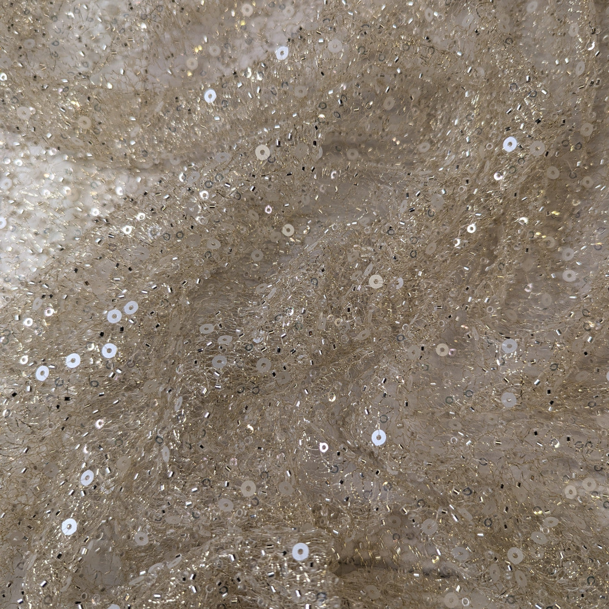 Designerstoff – Deadstock Goldenes Netz mit Perlen und Pailletten Basisfarbe Gold | 150 cm | M9X3X1
