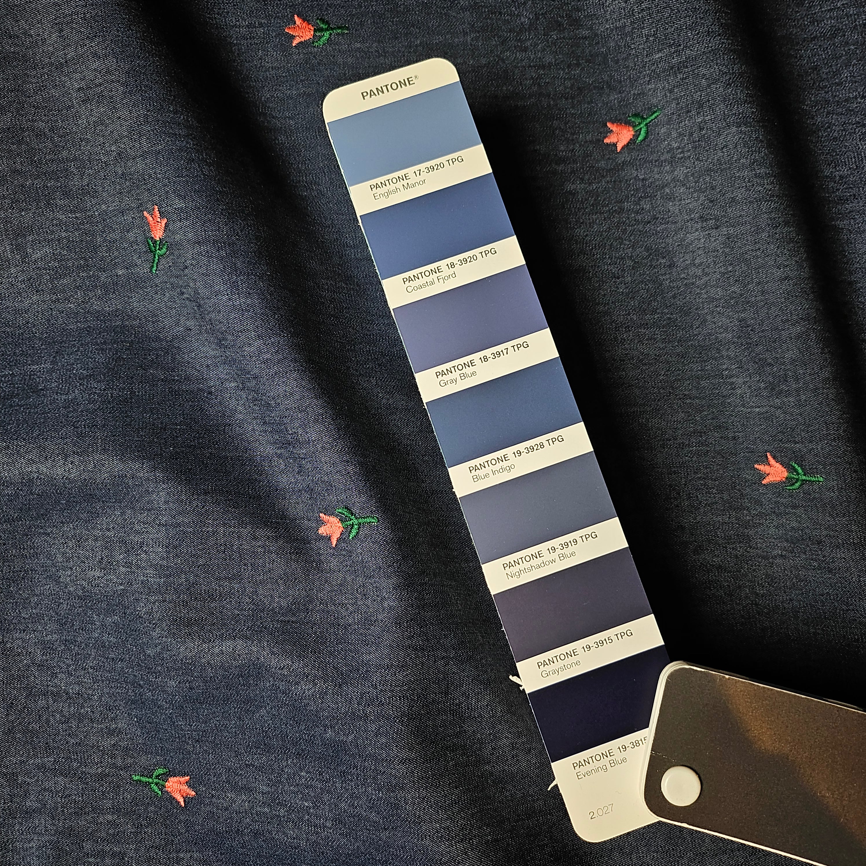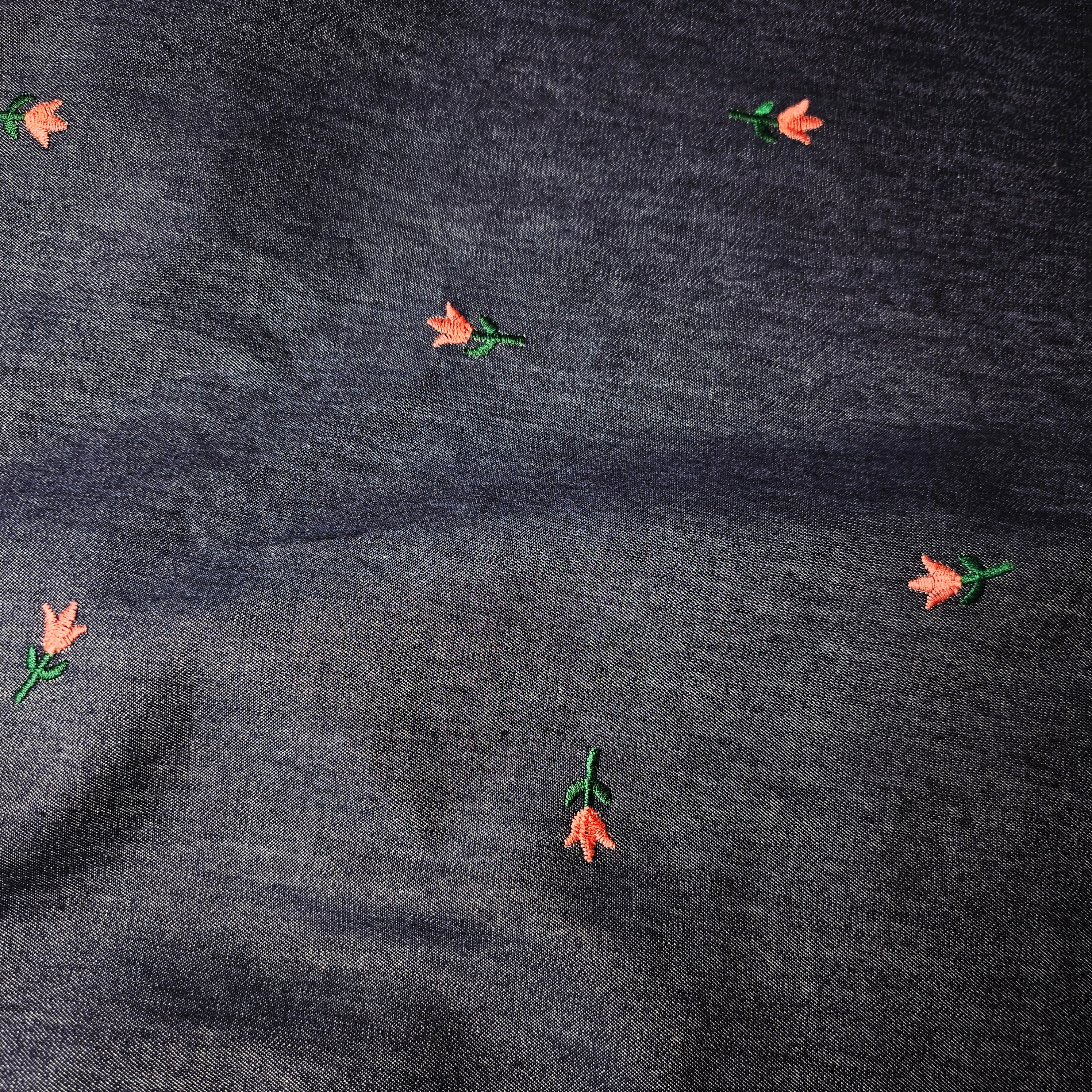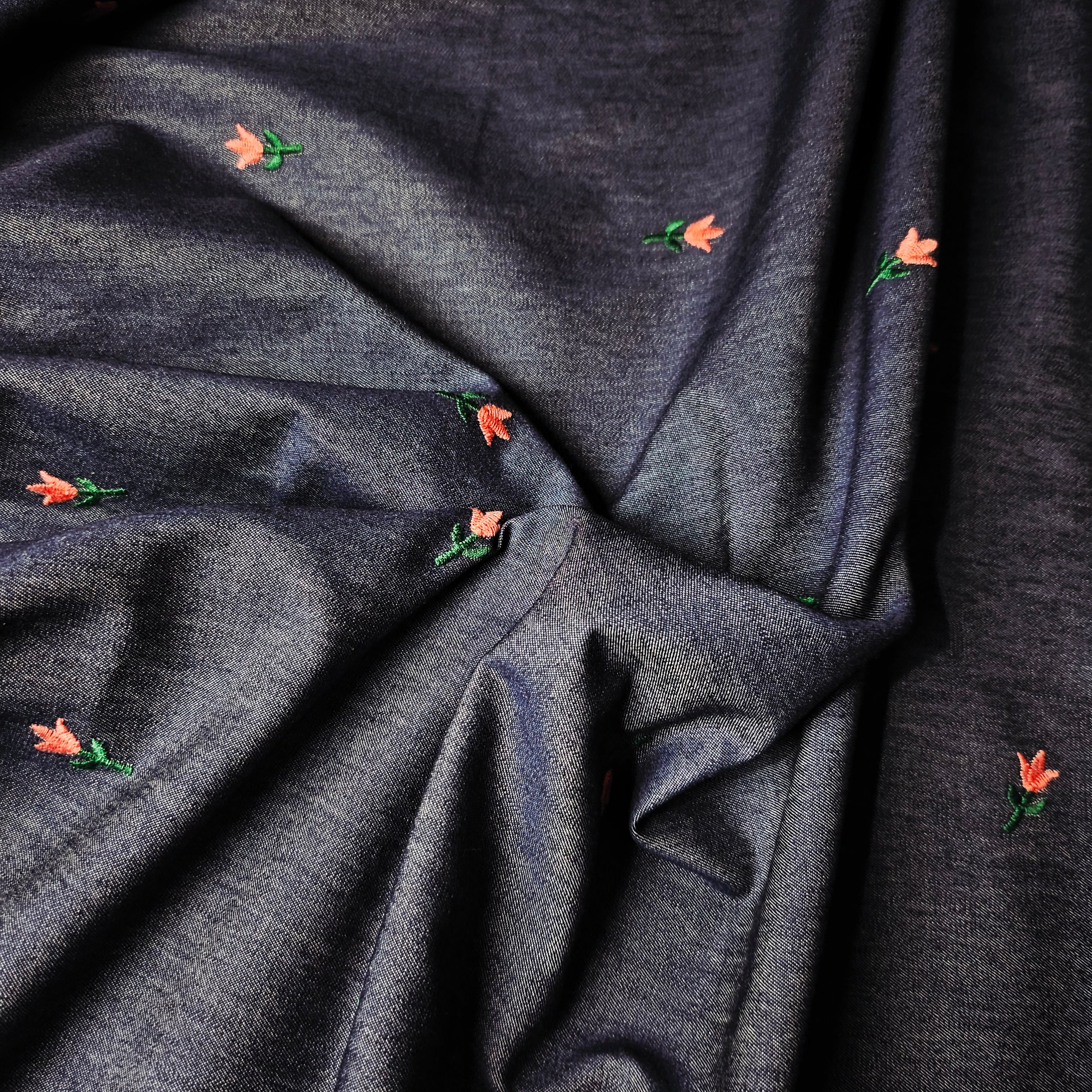 Designerstoff unbekannt* – Deadstock Bestickter Denim Chambray in Basisfarbe Pantone Nightshadow Blue | 150 cm | M7X7X1