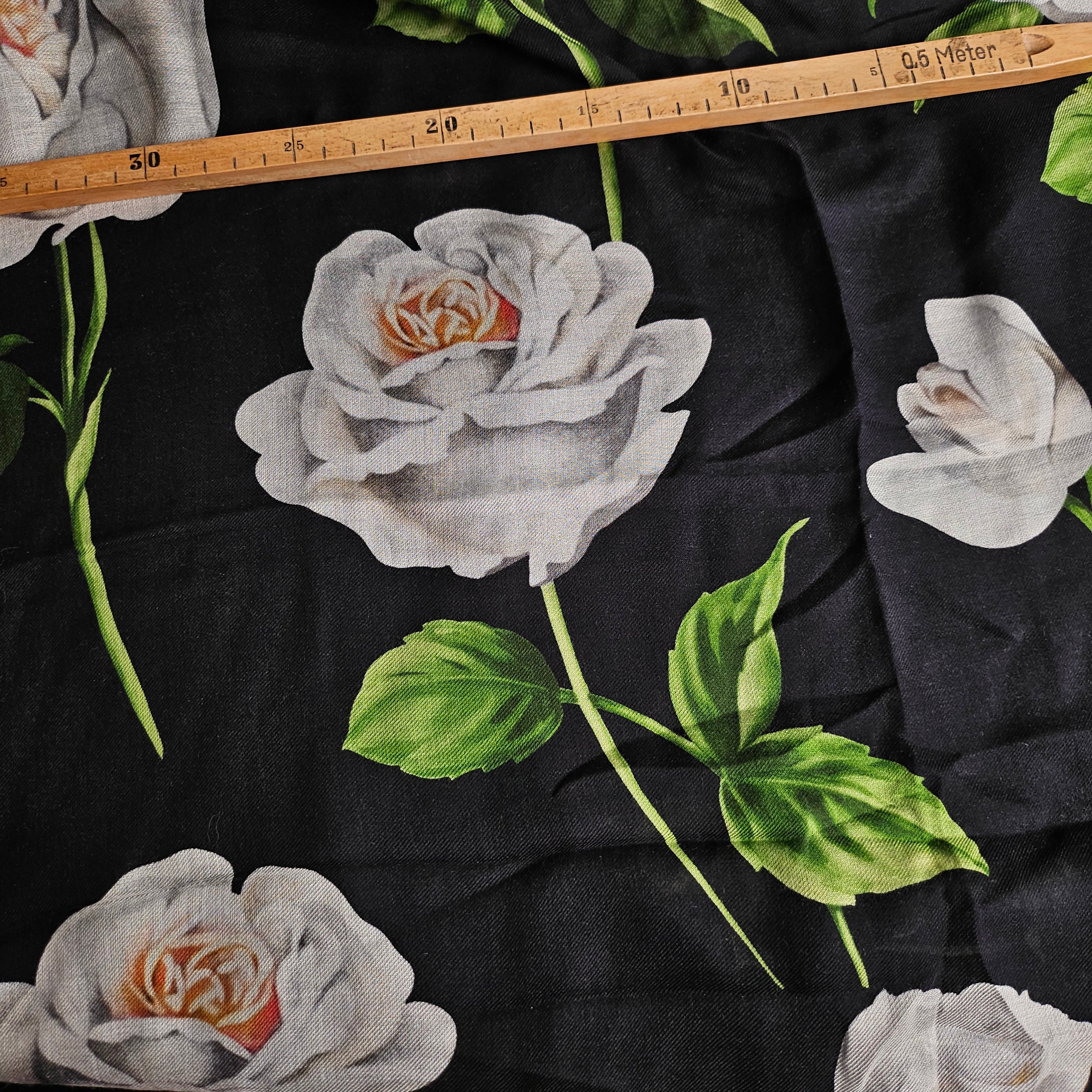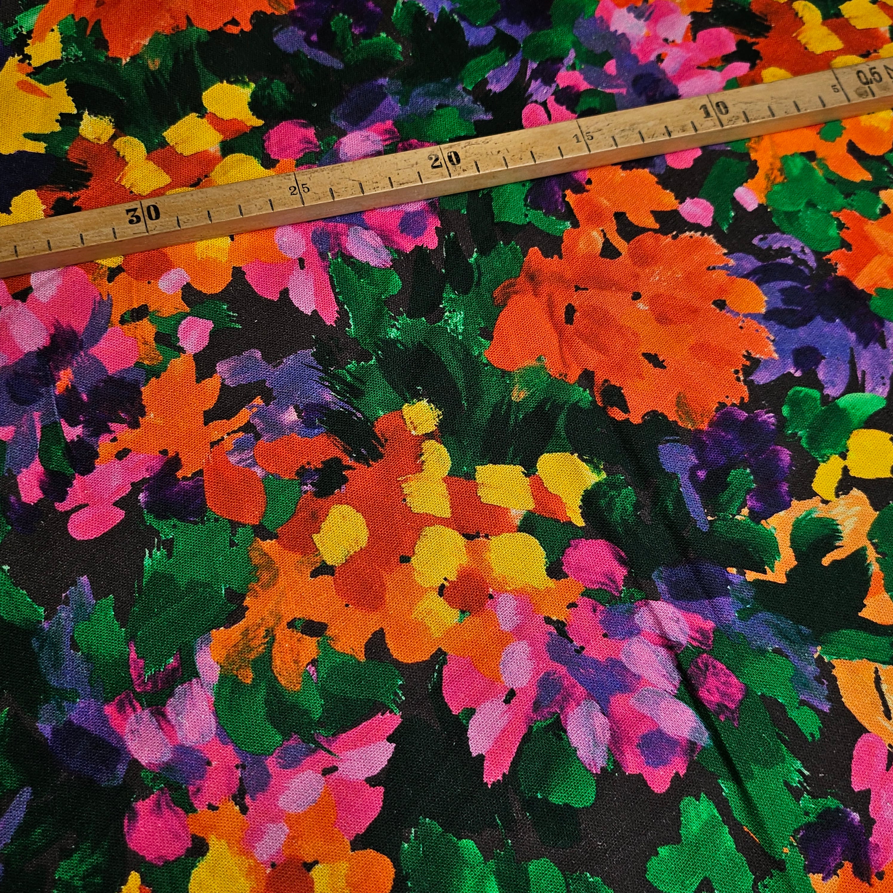 Designerstoff – Deadstock Denim Panel mit Blumenaufdruck | 120 cm × 150 cm | M1X03X05