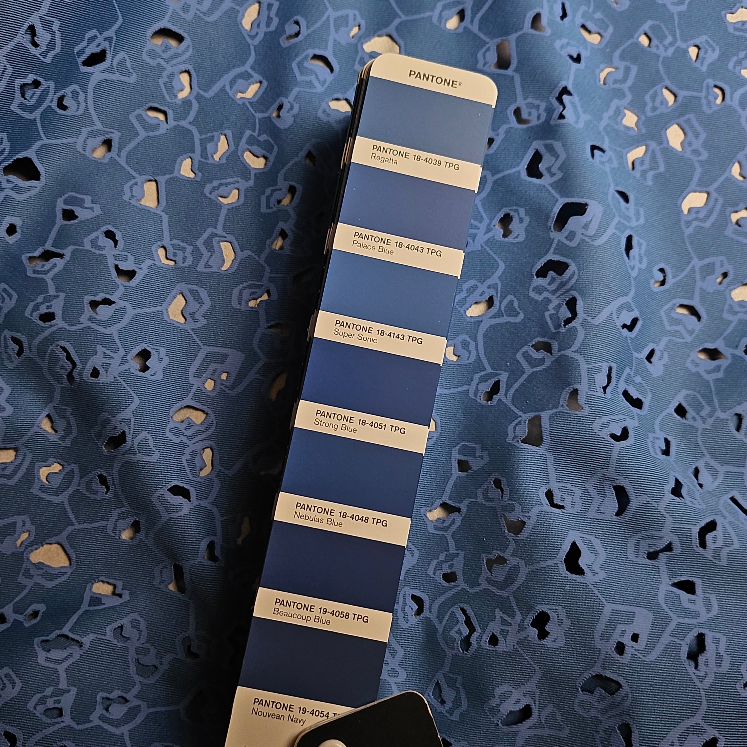 Designerstoff – Deadstock Baumwolle Lasercut Basisfarbe Pantone Super Sonic | 150 cm | M8X2X4