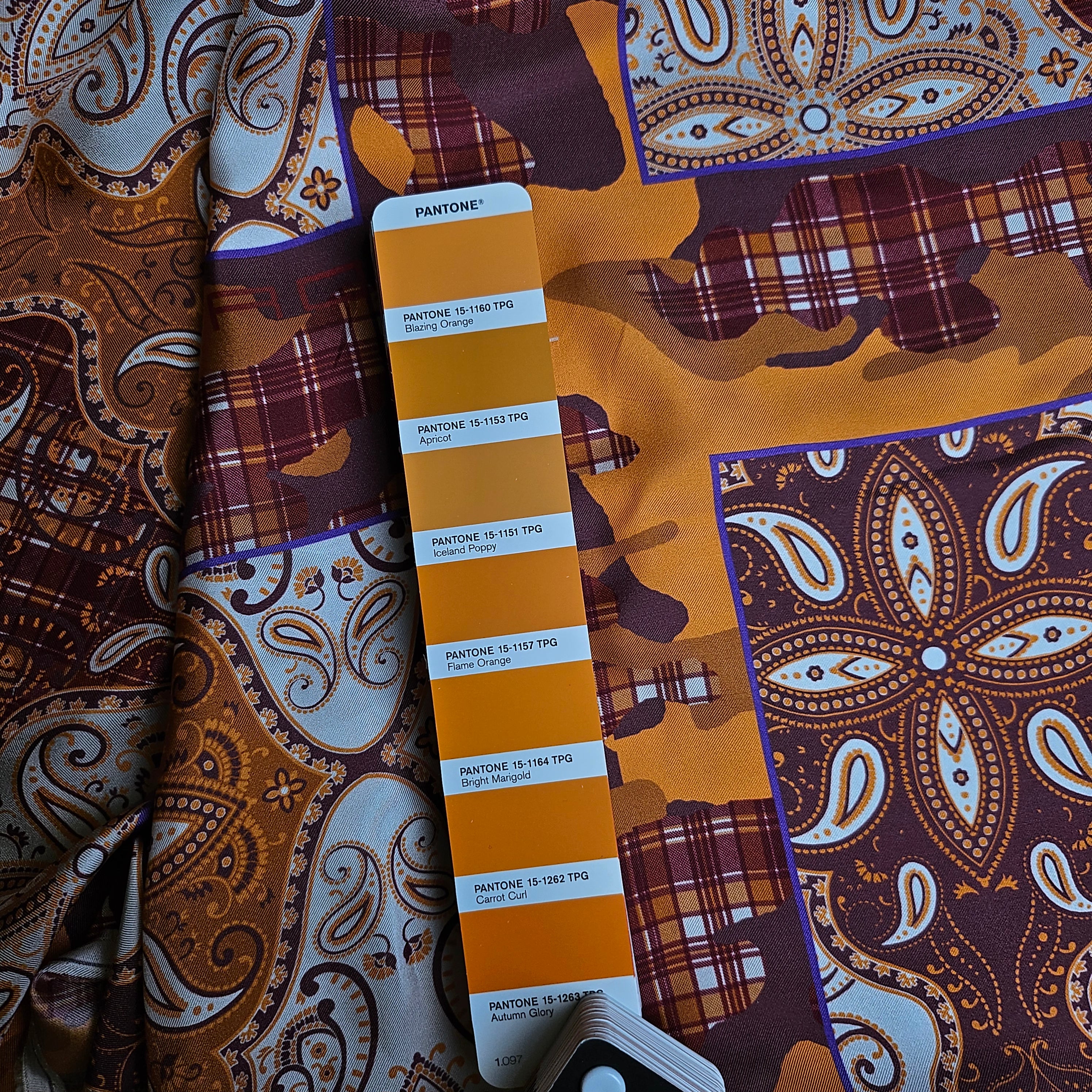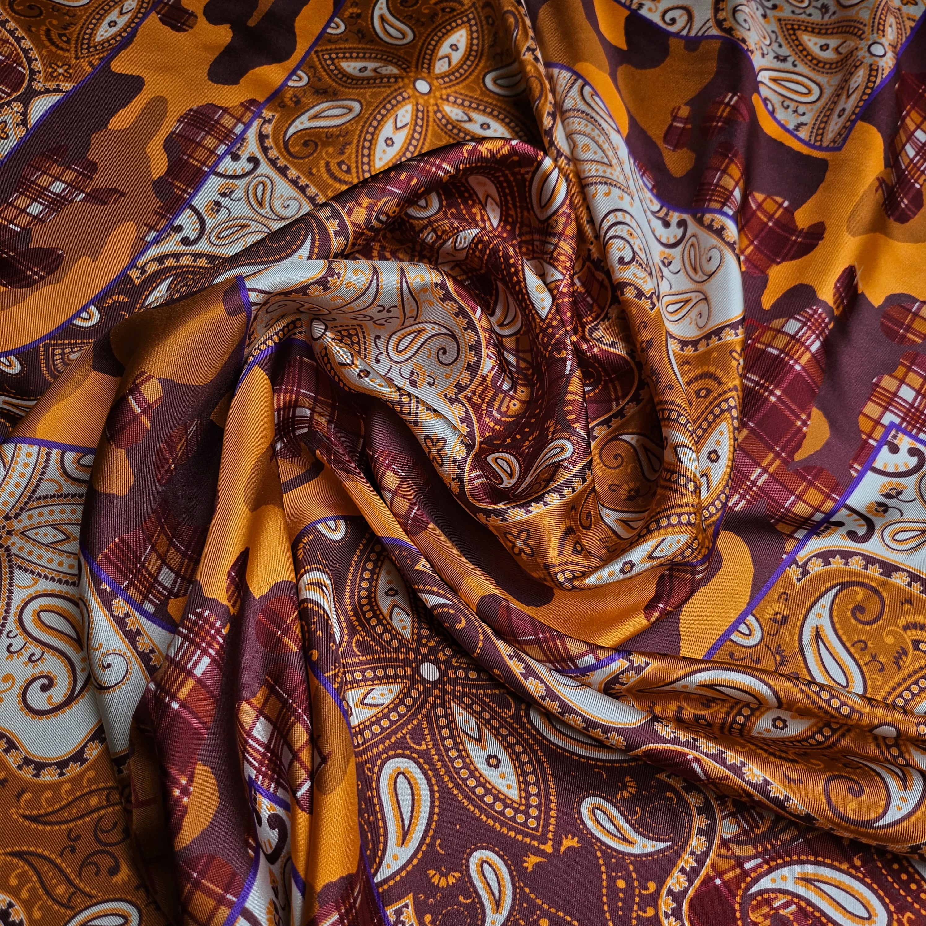 Etr* Designerstoff – Deadstock Seidensatin in Basisfarbe Pantone Blazing Orange Paisley | 140 cm | M8X5X10