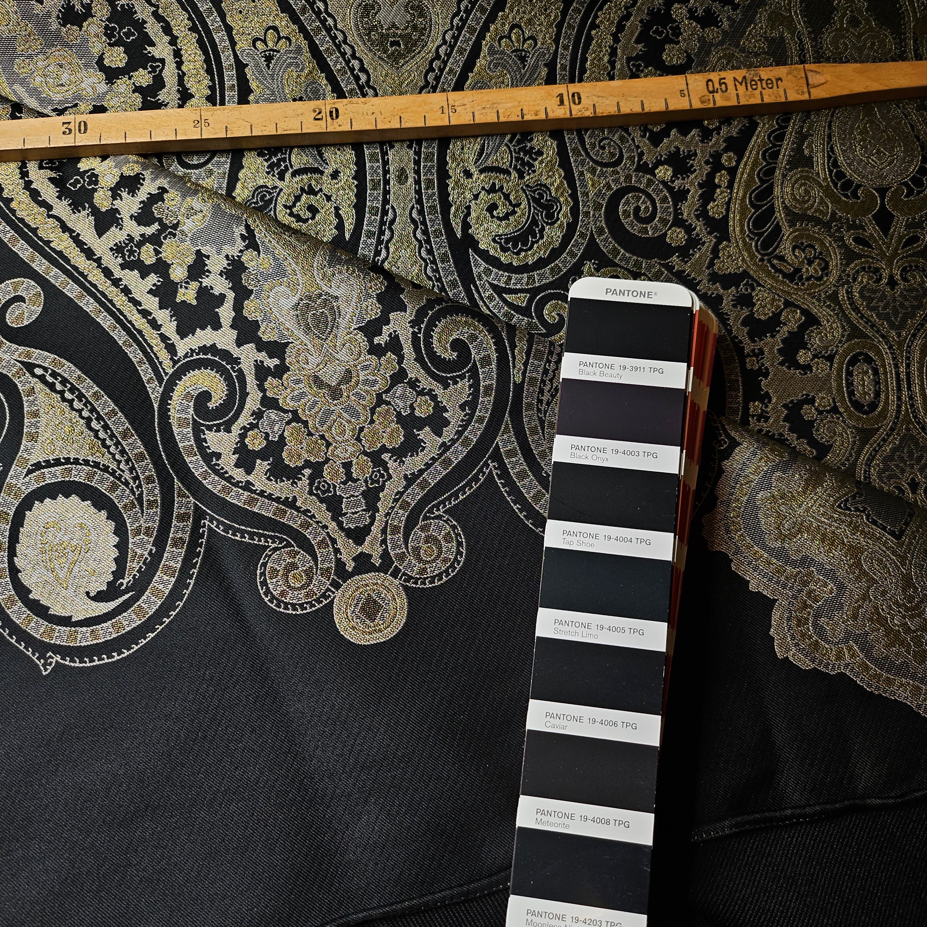 Etr* Designerstoff – Deadstock Baumwoll-Denim Dunkelblau mit Paisley-Jacquard | 150 cm | M5X5X12