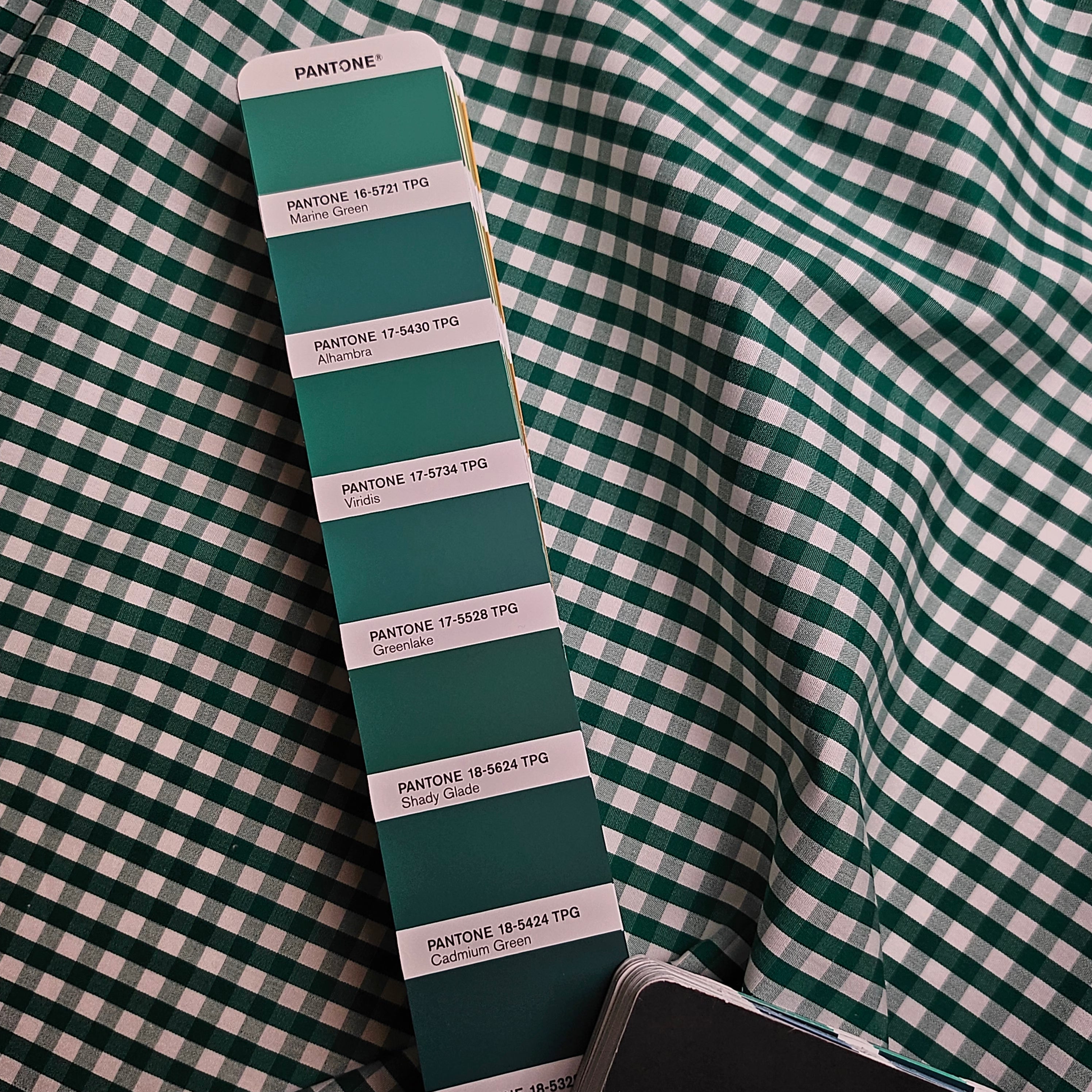 Etr* Designerstoff – Deadstock Baumwollwebware Vichy Basisfarbe Pantone Greenlake | 150 cm | M8X2X5