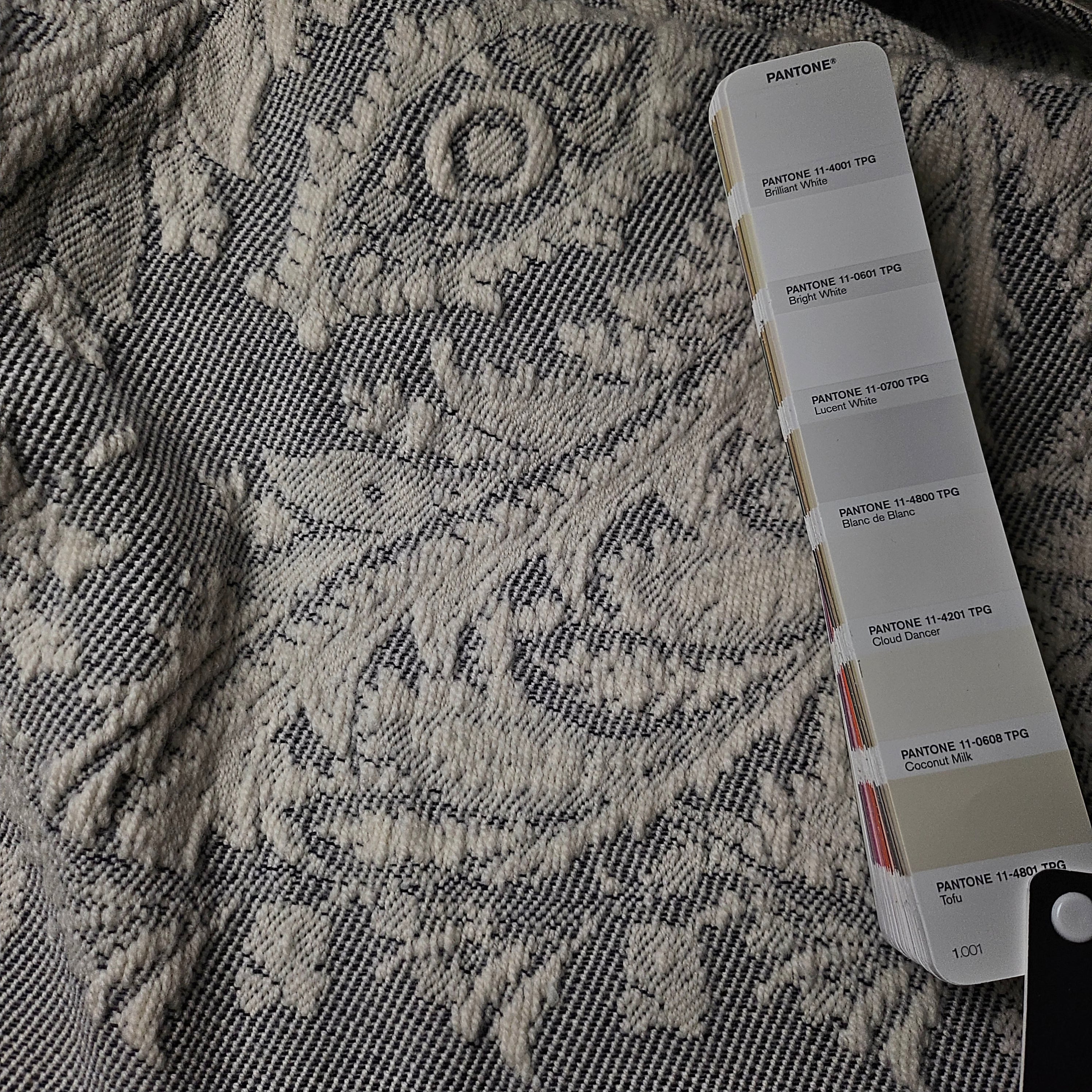 Etr* Designerstoff – Deadstock Baumwollmischung Jacquard in Basisfarbe Pantone Silver Fern | 145 cm | M7X5X5