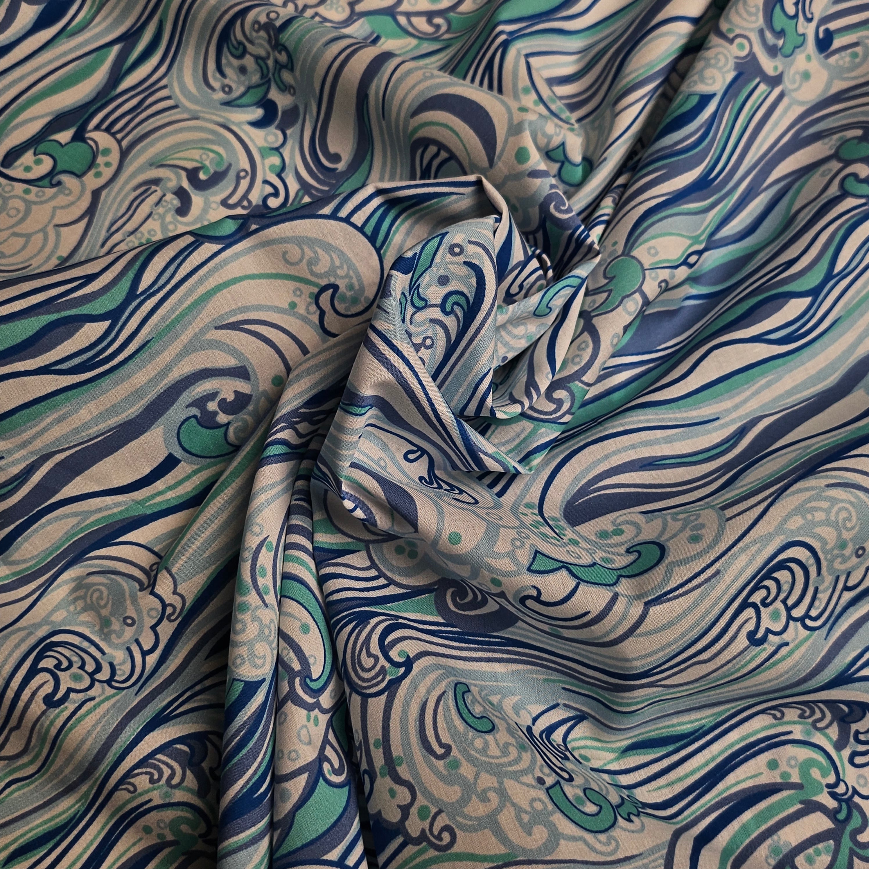Etr* Designerstoff – Deadstock Baumwollwebware mit Sturmmotiv Basisfarbe Pantone Blanc de Blanc | 140 cm | M8X6X4