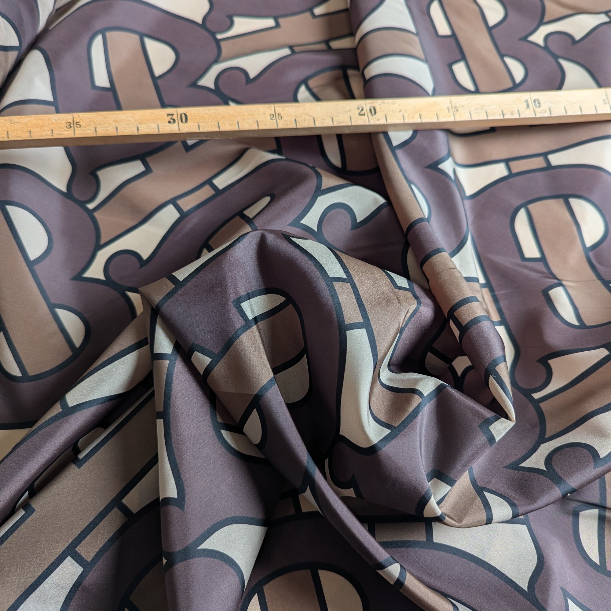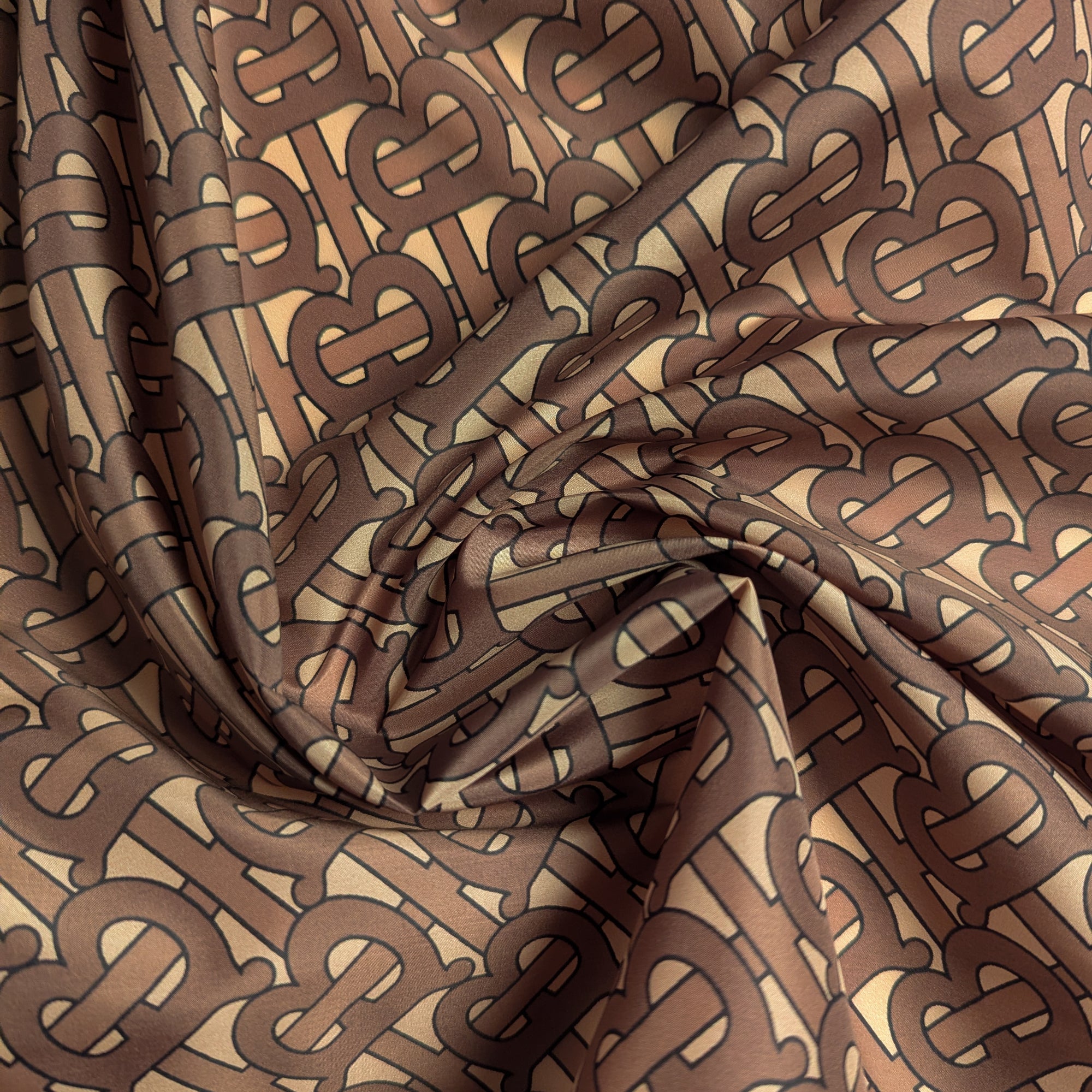 B*rberry Designerstoff – Deadstock Lycra Monogram-Design Cocoa Mocha | 145 cm | M2X1X10