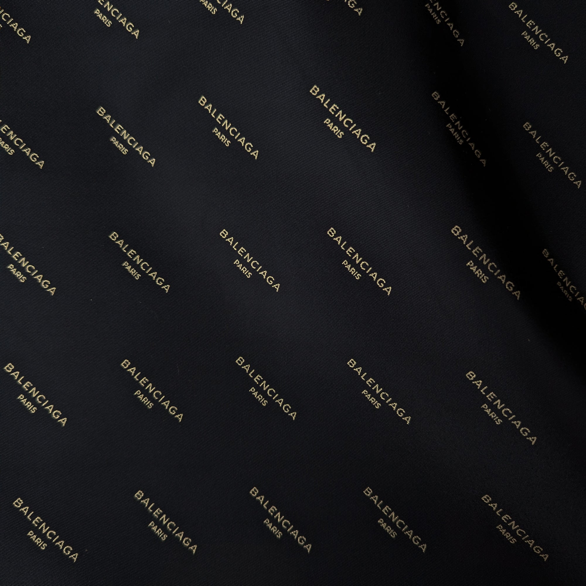 B*lenciaga Designerstoff – Deadstock Polyesterstoff Schwarz Goldenes Logo B-Ware schief gedruckt | 150 cm | M5X2X1