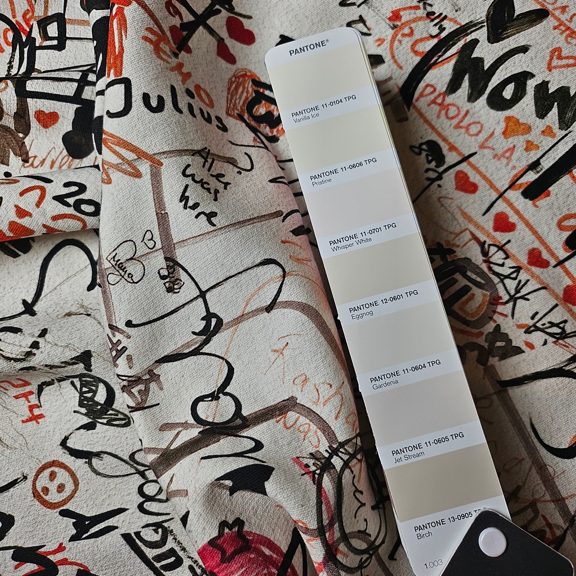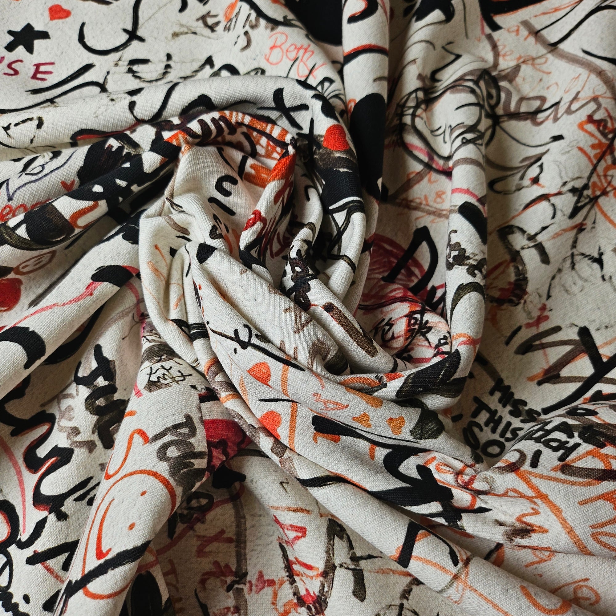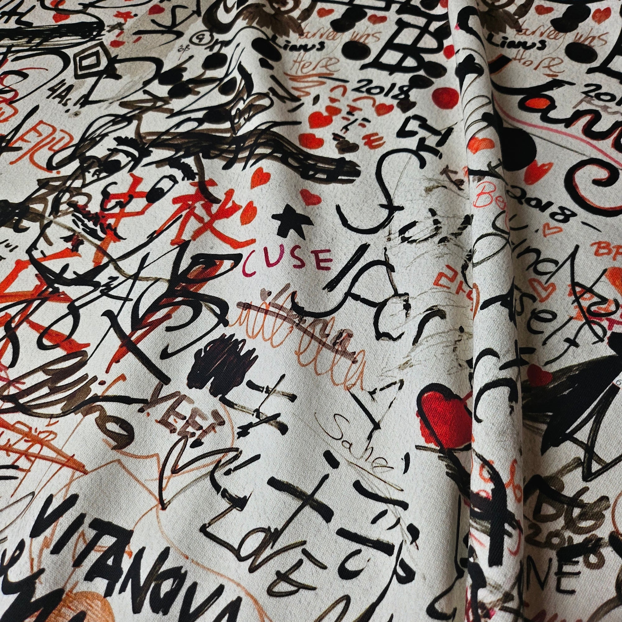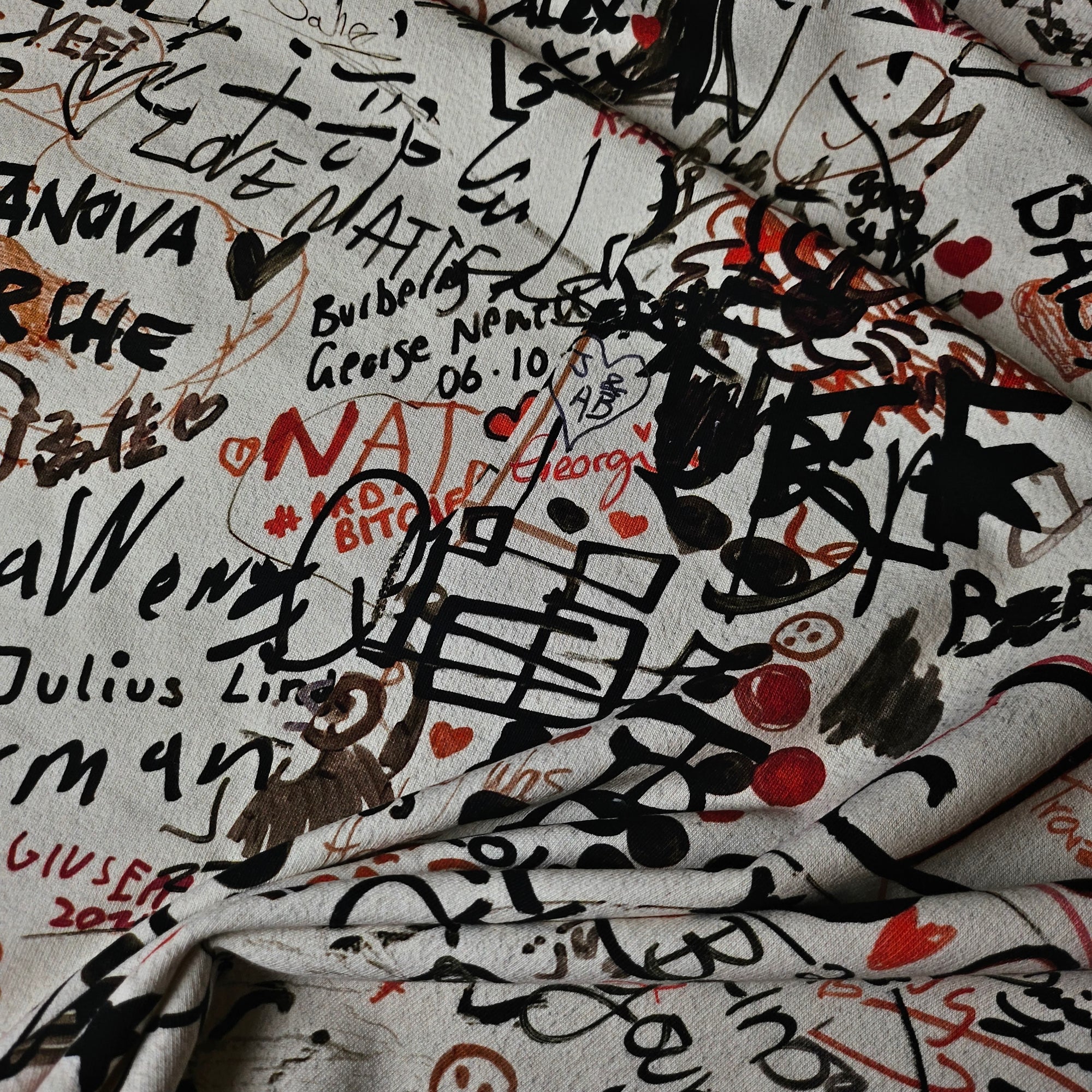 B######y Designerstoff – Deadstock Sweat Panel Basisfarbe Whisper White |Einzelstück Stoffbreite 150 cm X 185 cm | S12X2X19