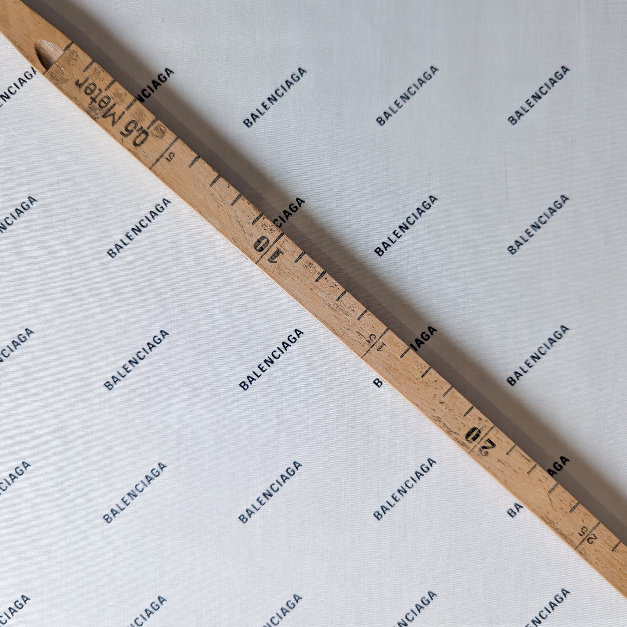 B*lenciaga Designerstoff – Deadstock Baumwollpoplin Weiß mit Logoaufdruck | 145 cm | M5X4X5