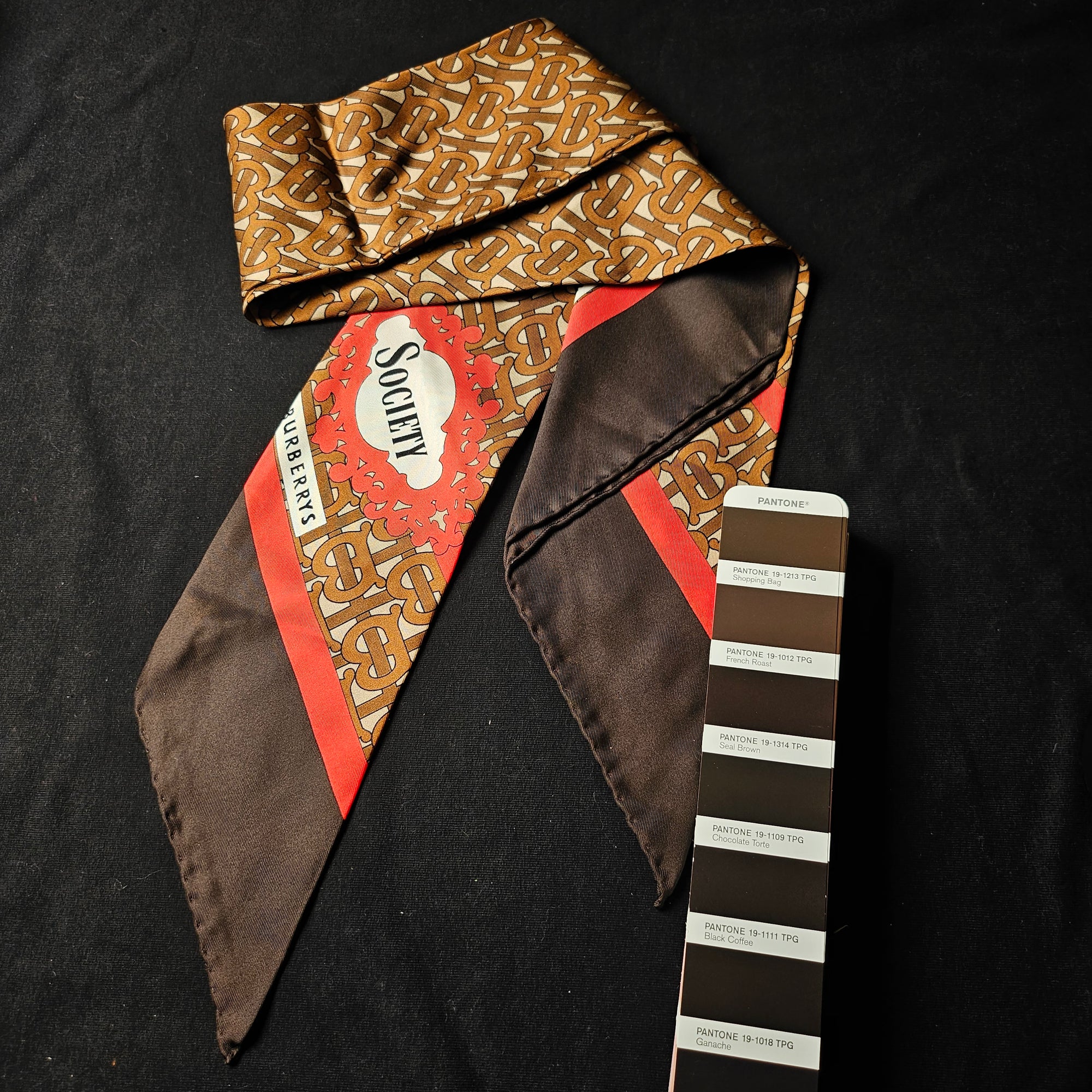 B*rberry – Deadstock Seidentwill Schal in Basisfarbe French Roast | 128 × 9 cm | L6X4X019