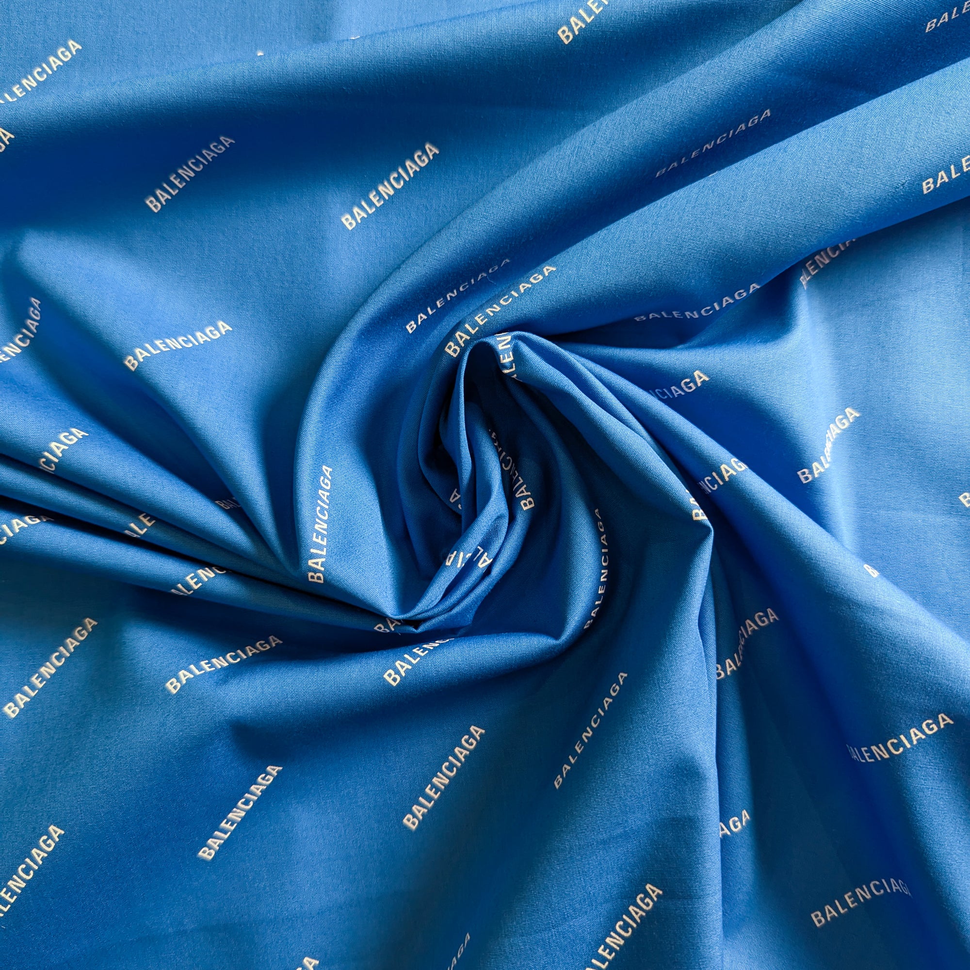 B*lenciaga Designerstoff – Deadstock Baumwollpoplin Blau Logoaufdruck | 145 cm | M1X3X24