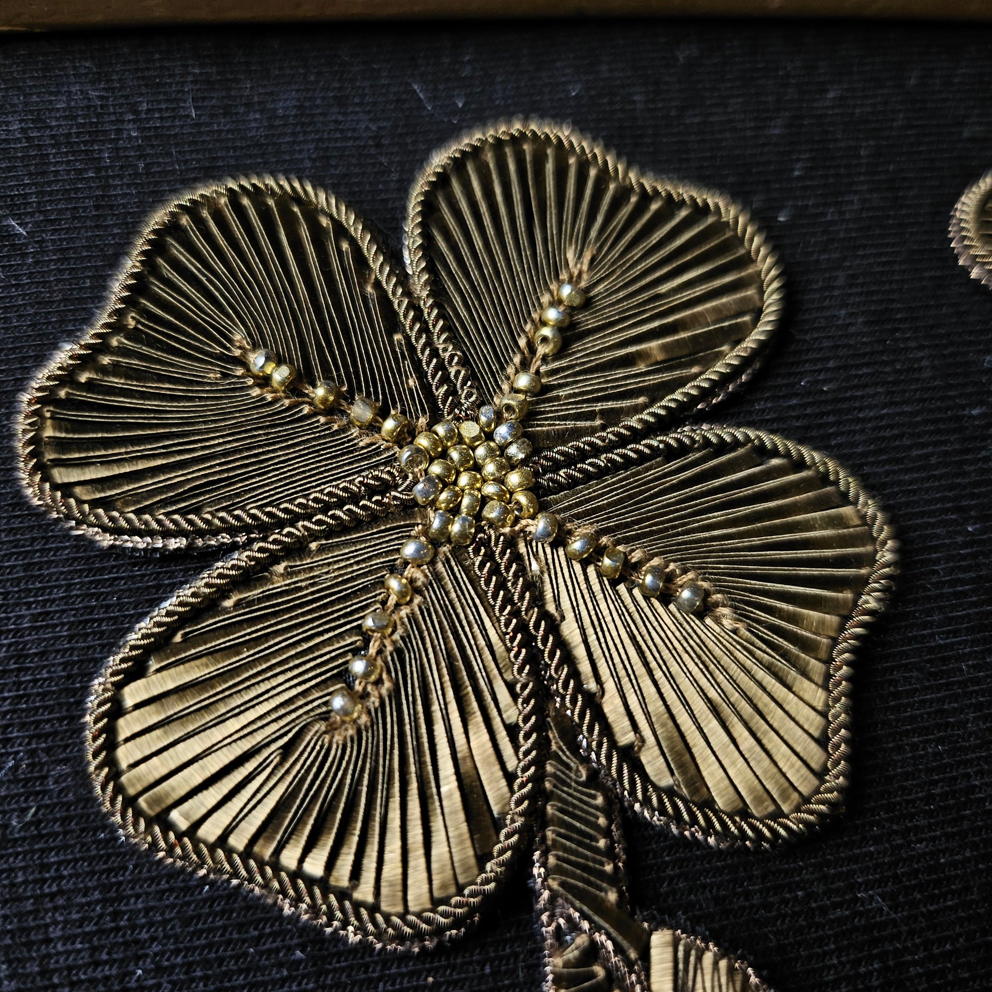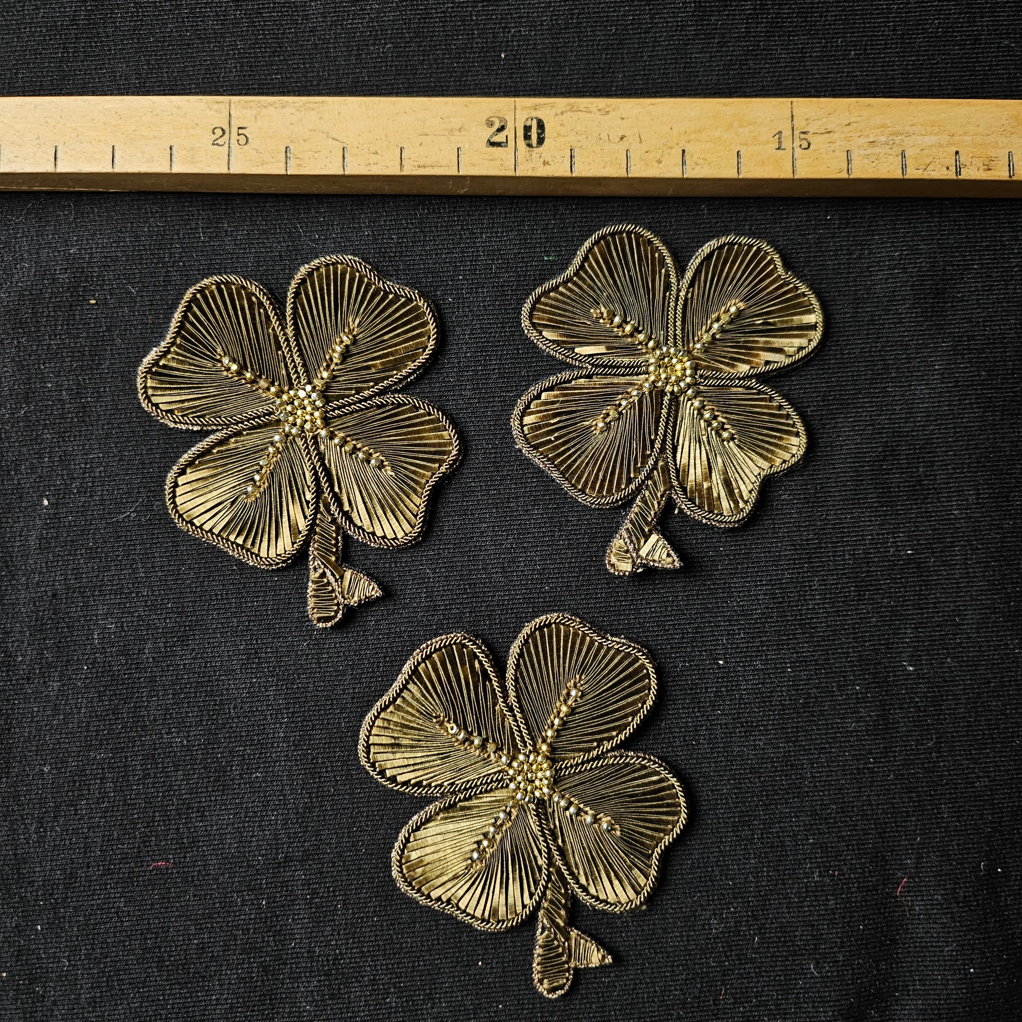 D*G – Metallstickerei Kleeblatt Gold Perlen | 6 × 6 cm | S3X2X028