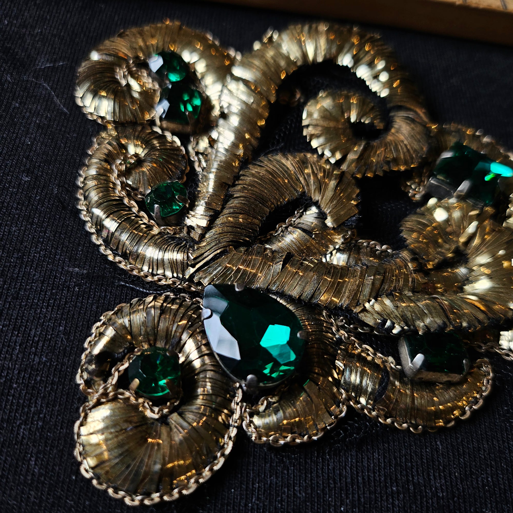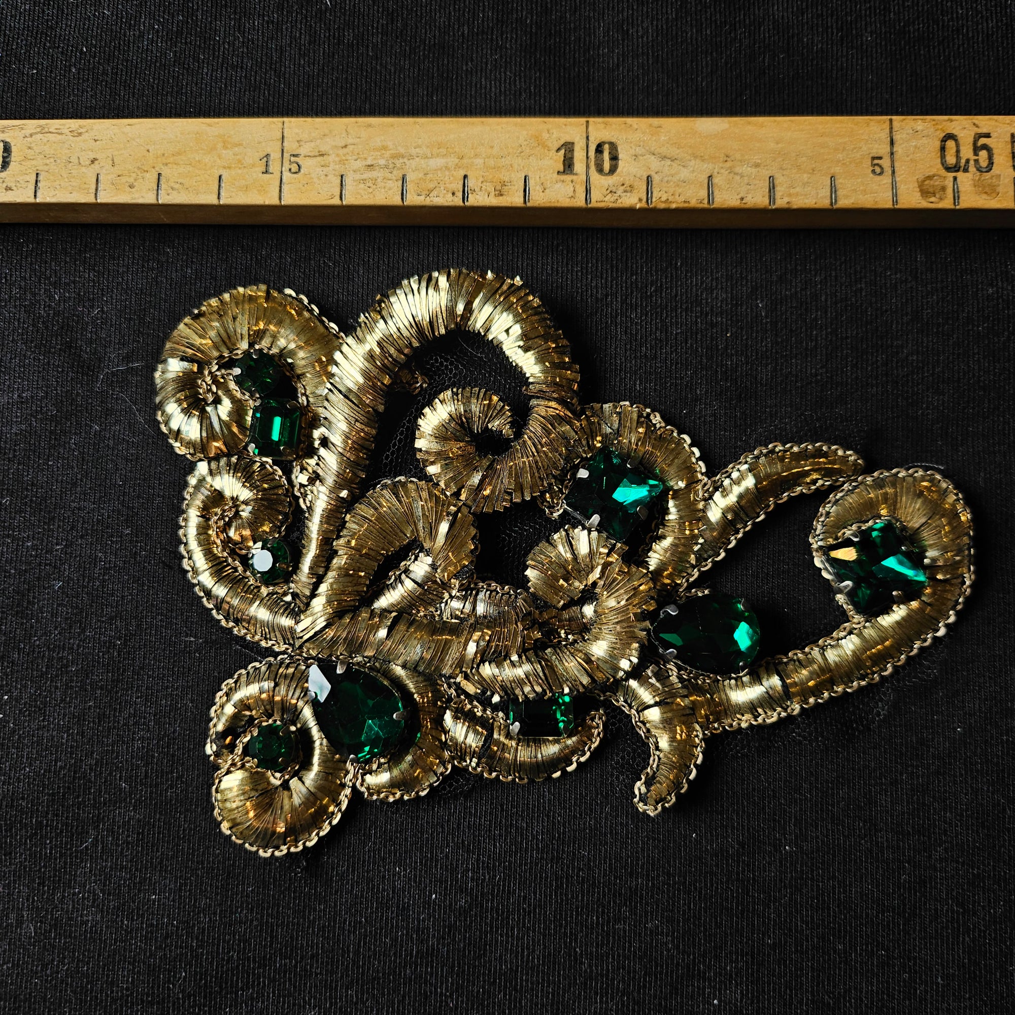 D*G – Metallstickerei Gold Ornamentik Grüne Steine | 10 × 14 cm | S3X1X054