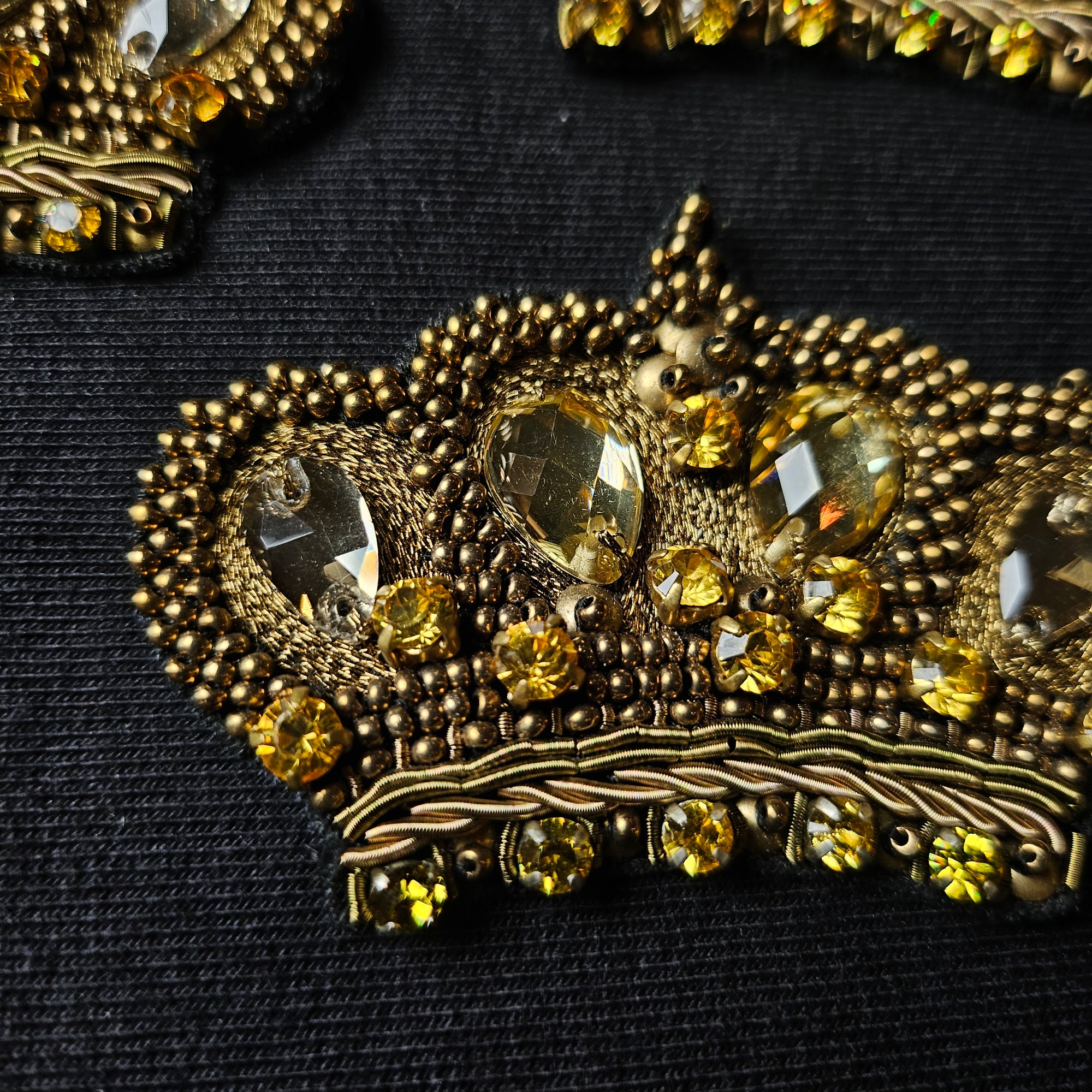 D*G – Metallstickerei-Patch Gold Krone Steine Perlen | 4 × 5 cm | S3X4X019