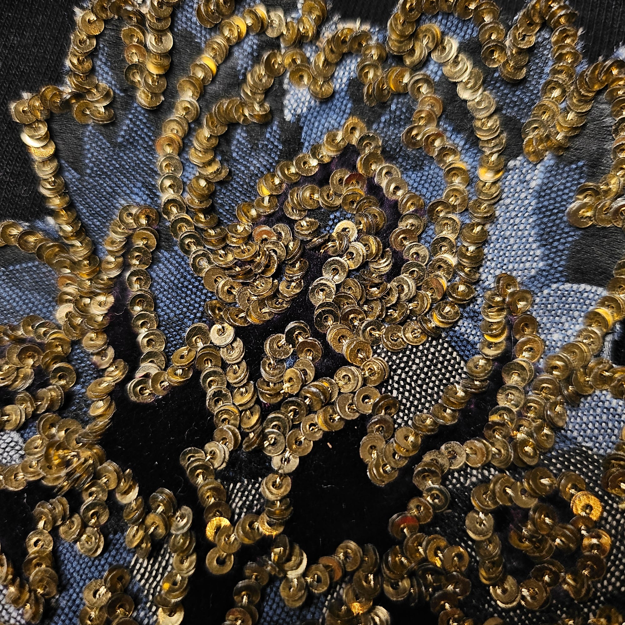D*G – Metallstickerei-Patch Gold Filigran Blau Stein | 2,5 × 2,5 cm | S3X4X017