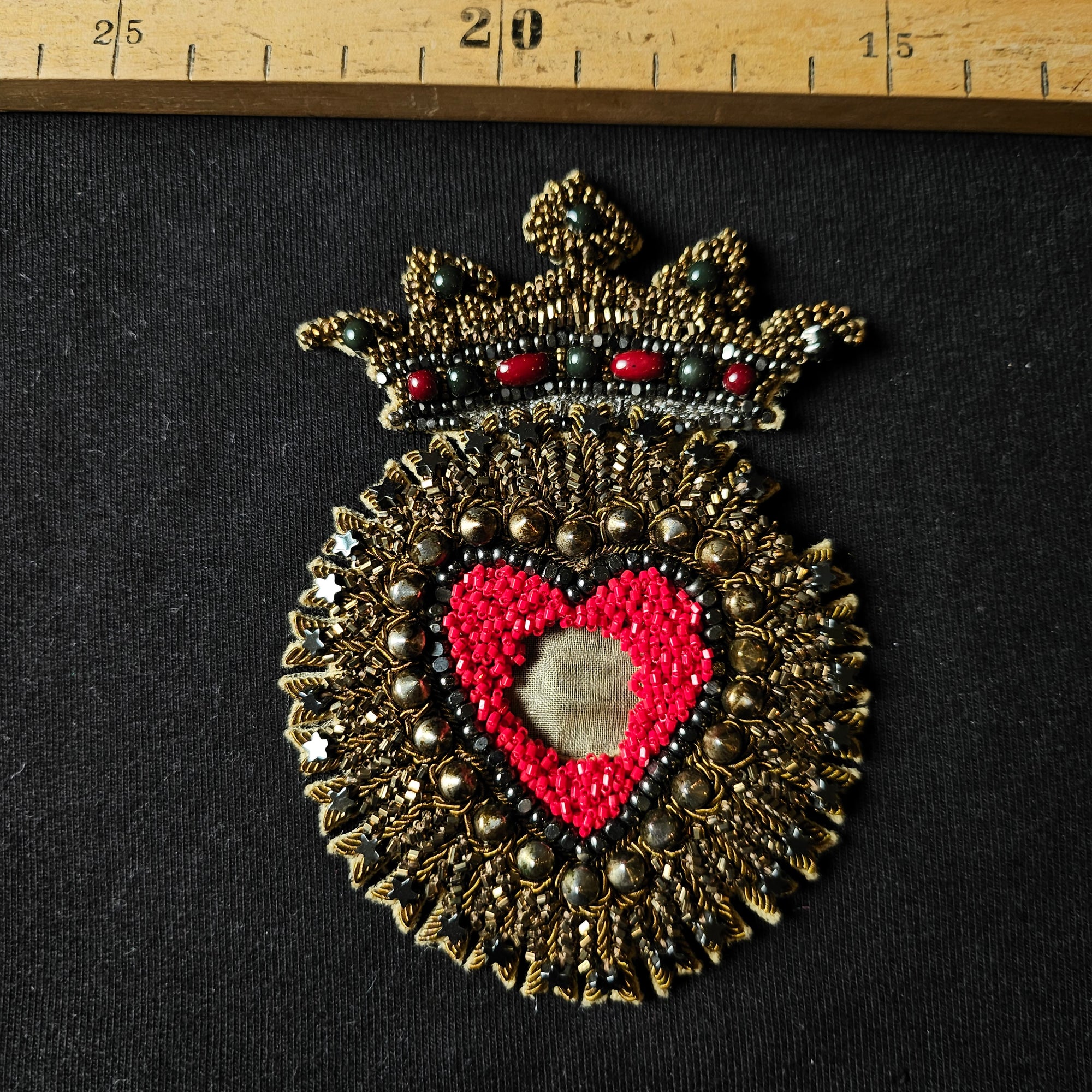 D*G – Metallstickerei Gold Herz Medaillon | 12 × 14 cm | S3X2X014