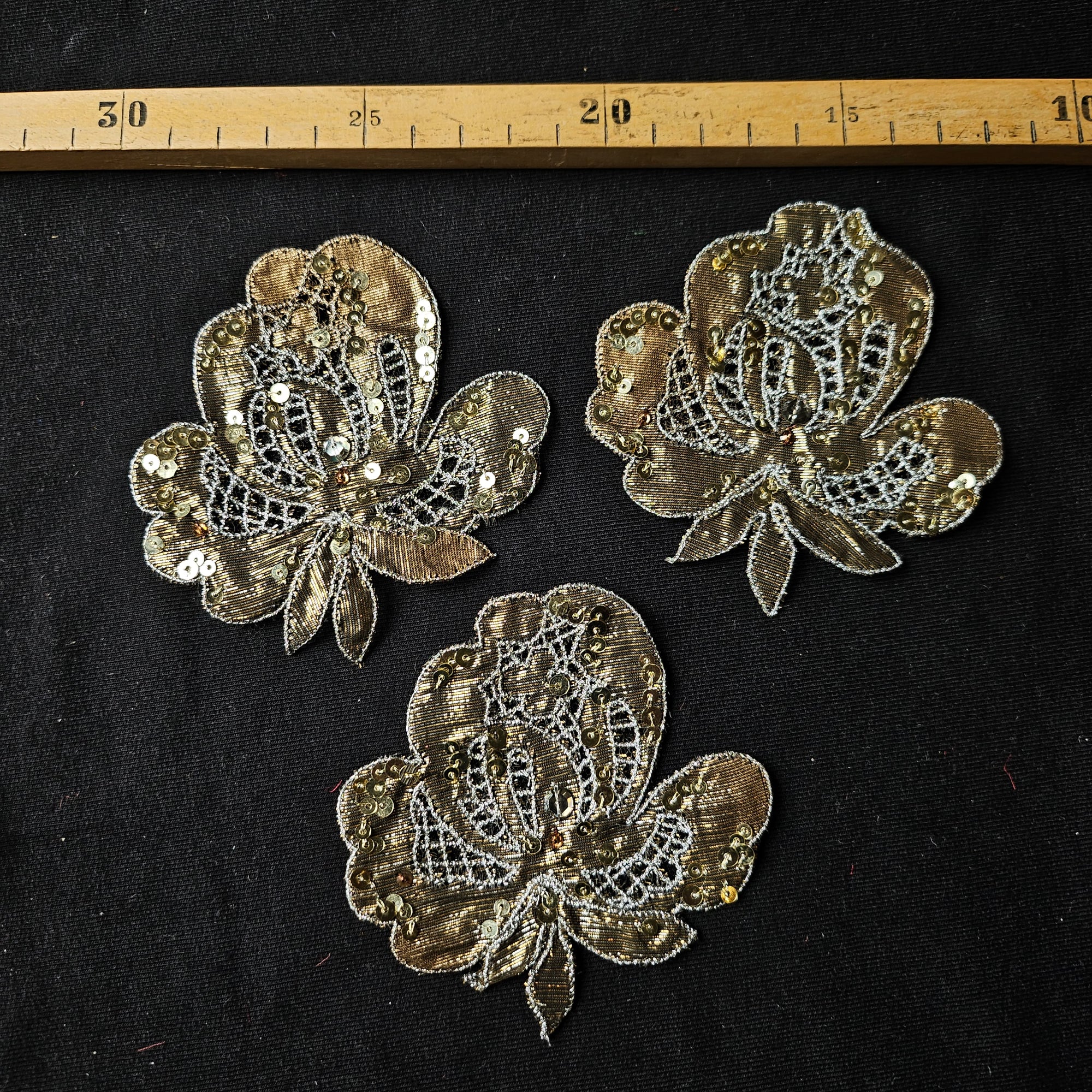D*G – Metallstickerei Gold Blumenapplikation | 8 × 8 cm | S3X3X007