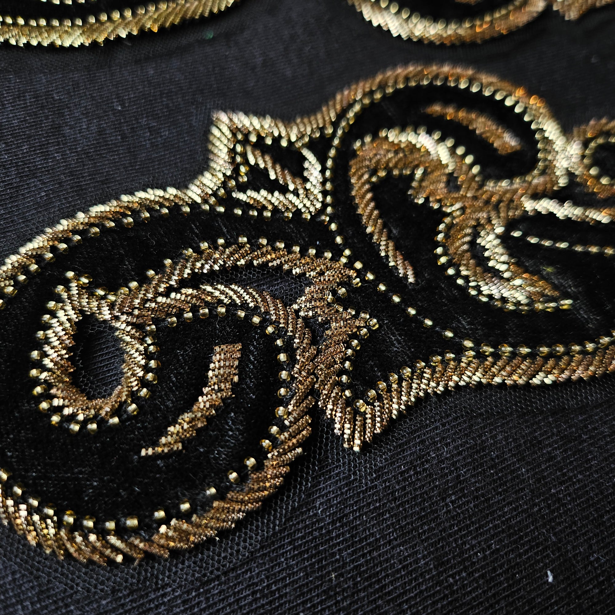 D*G – Bead & Perlenstickerei Patch Roségold Rosemotiv | 12 × 19 cm | S3X4X026