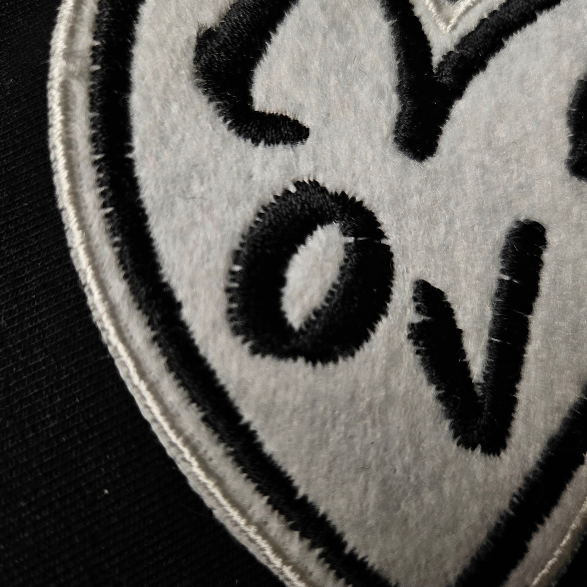 D*G – Bestickter Filz Herz Love Weiß Schwarz | 8 × 8 cm | S8X1X006