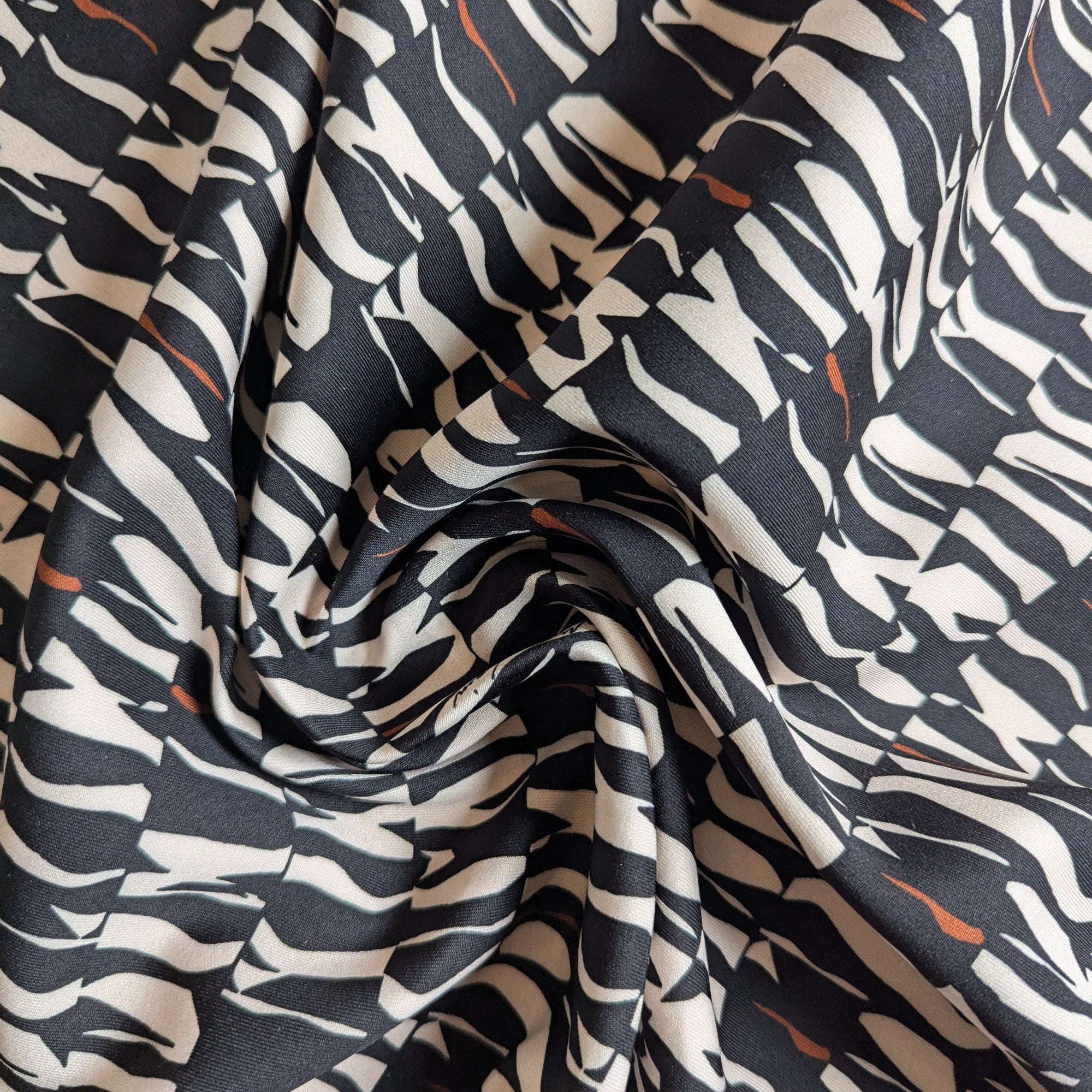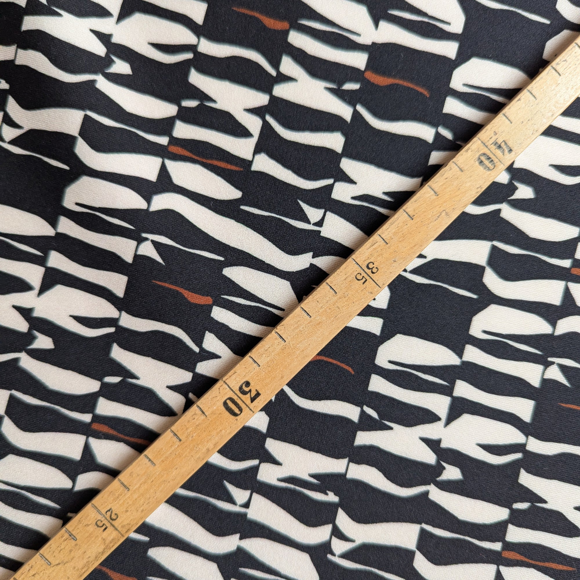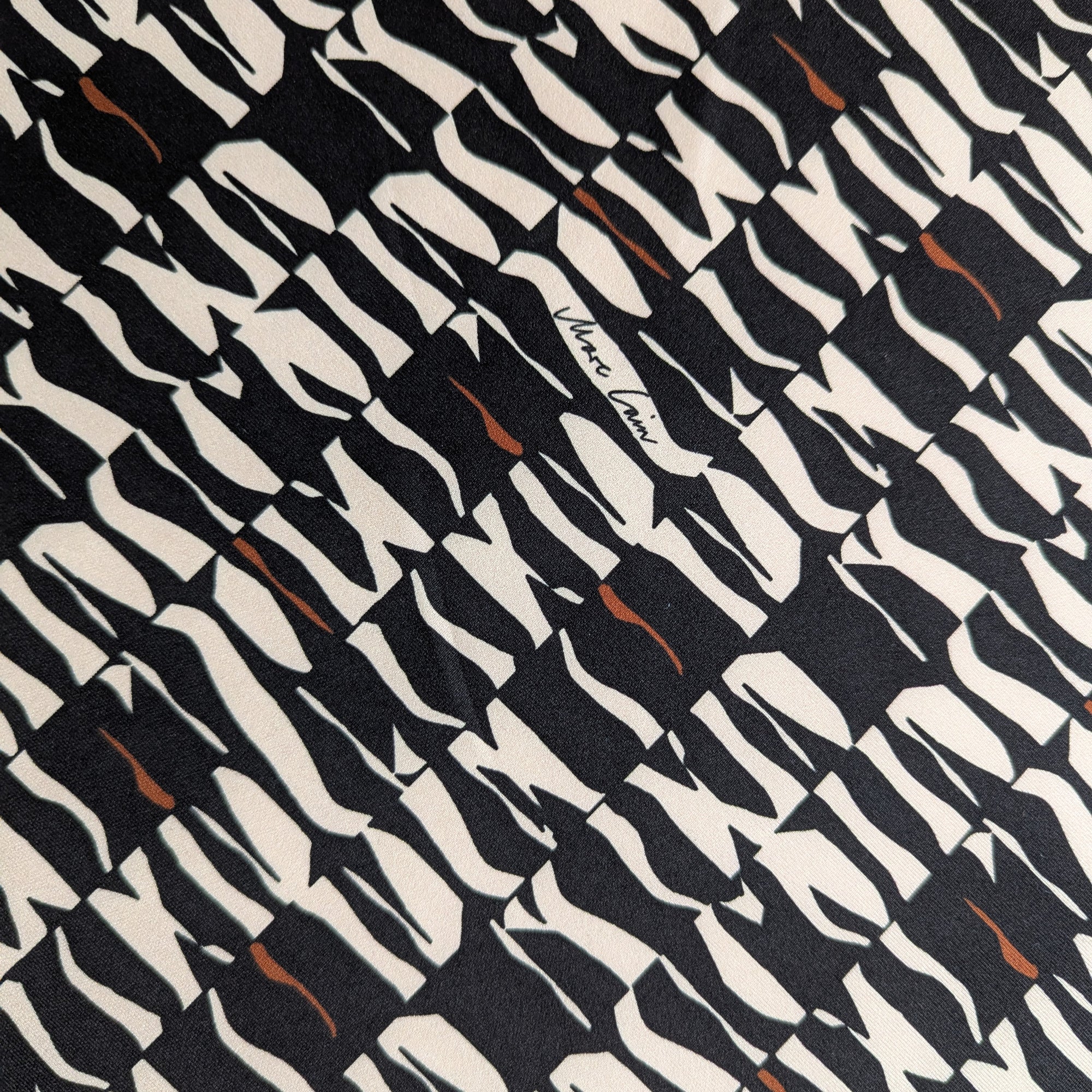 Meterware M###c C##n Designerstoff – Deadstock Punto Milano Polyester Naturweiß-Schwarz Logo | 140 cm | M1X6X7