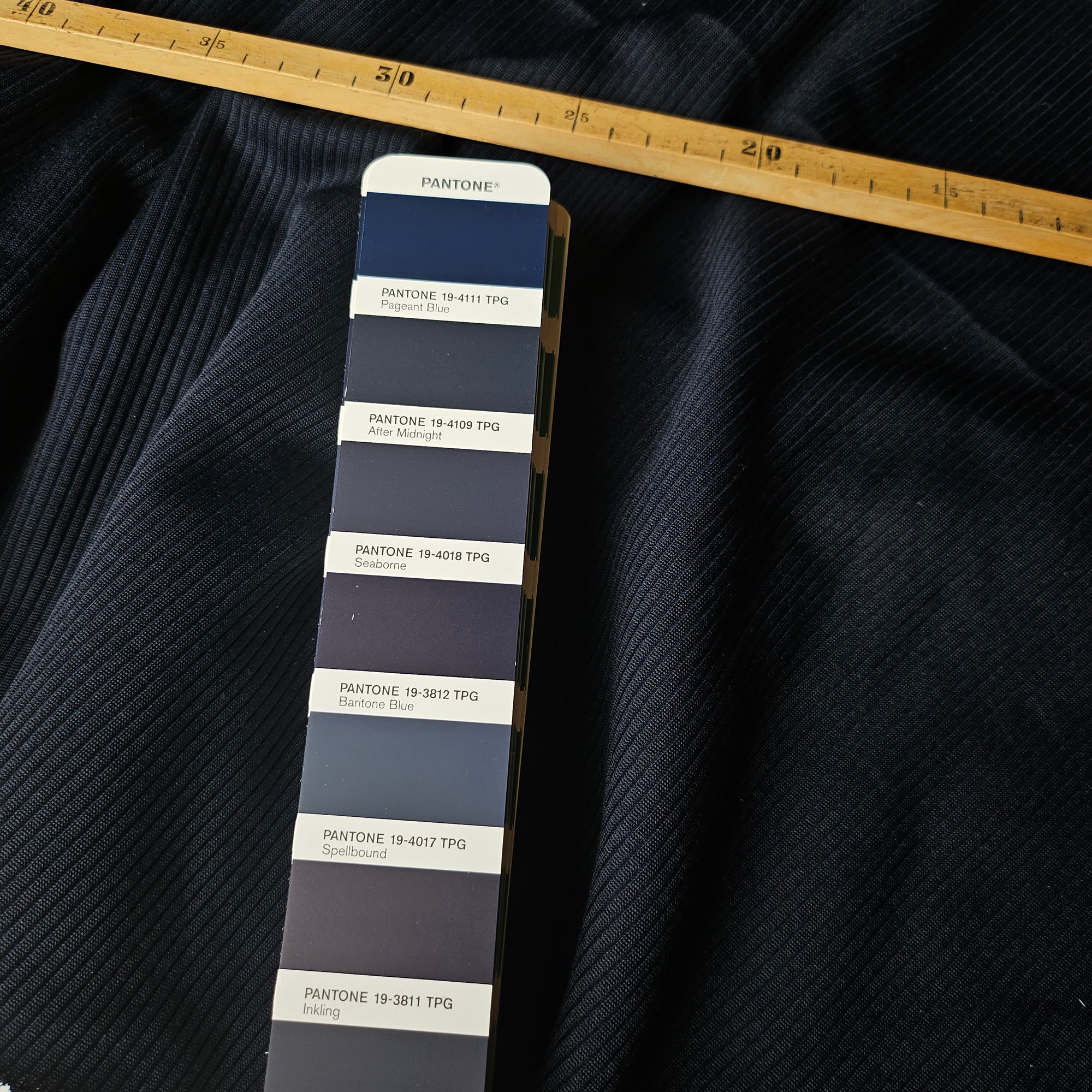 F###i Designerstoff – Deadstock Ribstrick Polyester-Baumwolle Basisfarbe After Midnight Einzelstück | 40 cm x 185 cm | S5X2X014