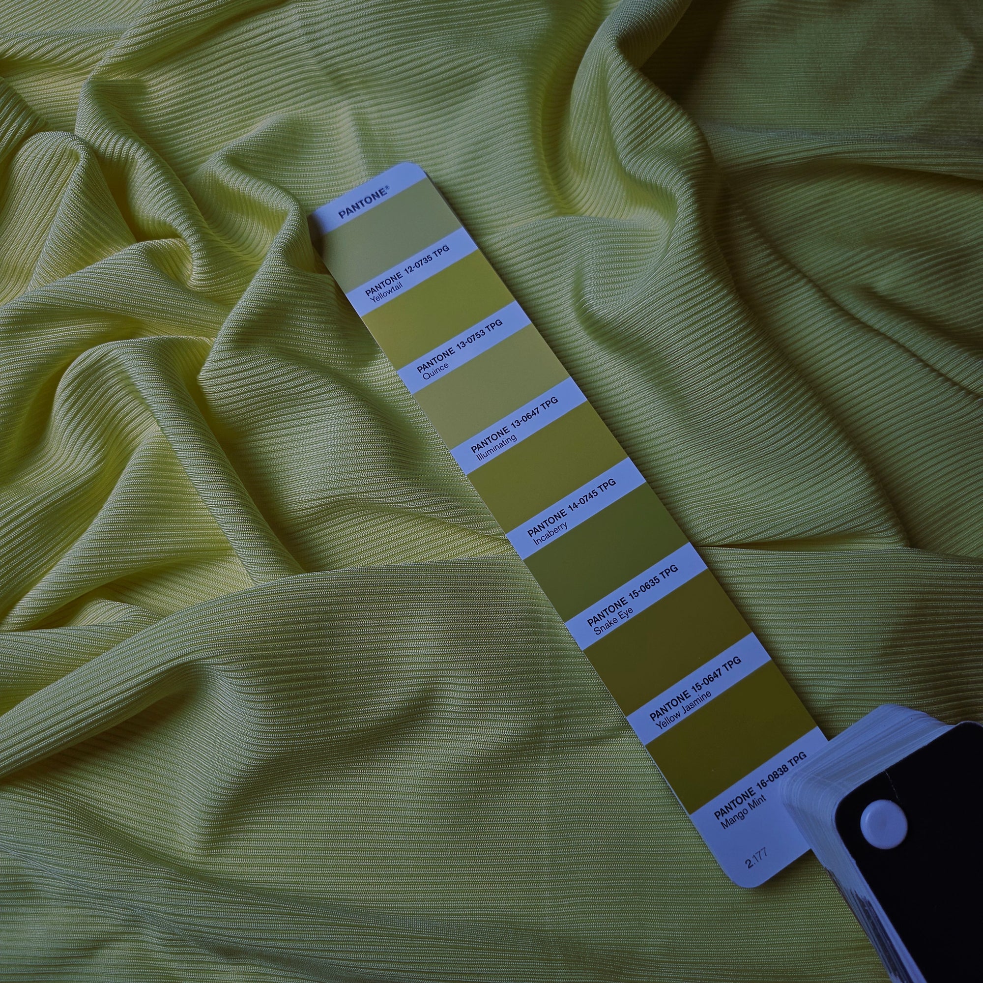 D##r Designerstoff – Deadstock Viskoseribstrick Basisfarbe Yellowtail Einzelstück | 65 cm x 120 cm | S10X3X23