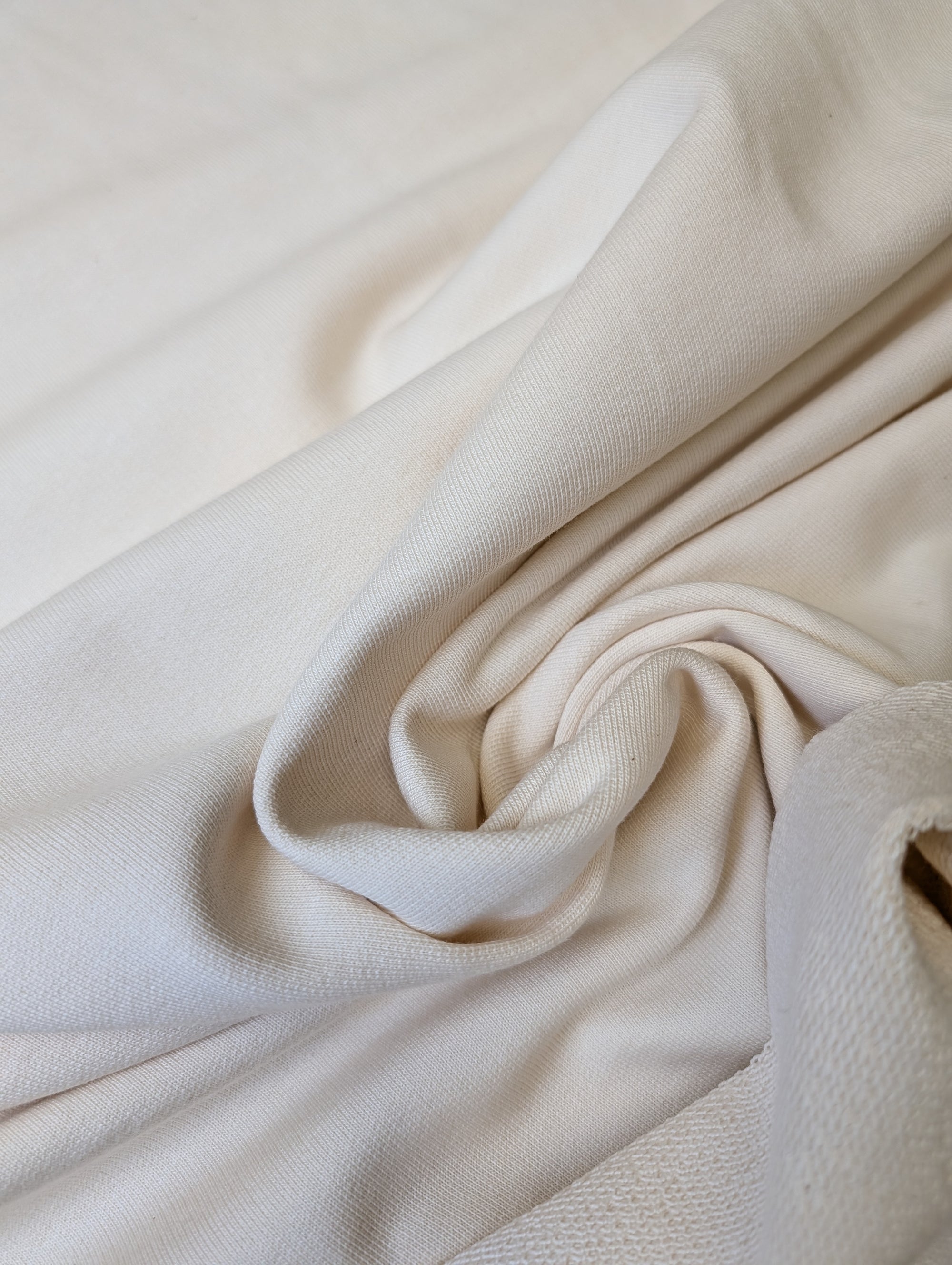 Kombipaket 2 Meter French Terry D##r plus 50 cm Bündchen D##r | Stoffbreite French Terry 190 cm | Stoffbreite Bündchen 120 cm | Basisfarbe Vanilla Ice