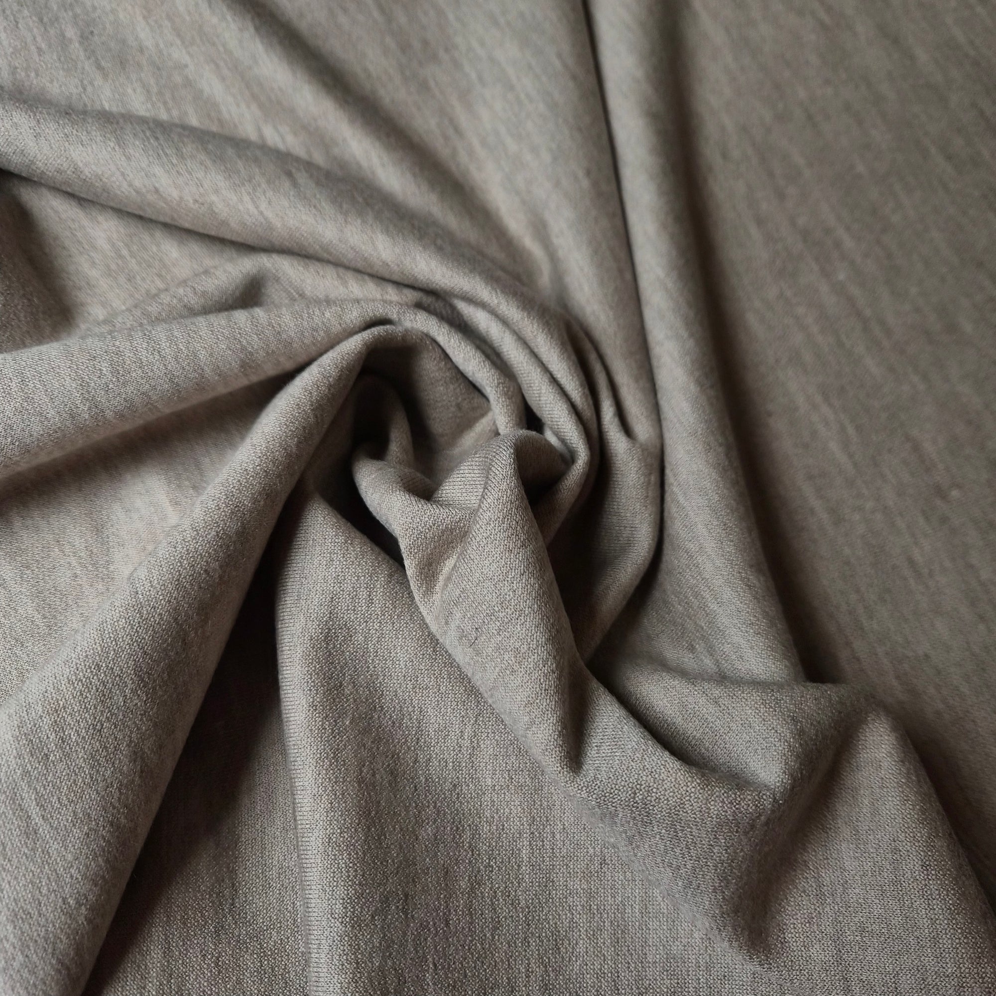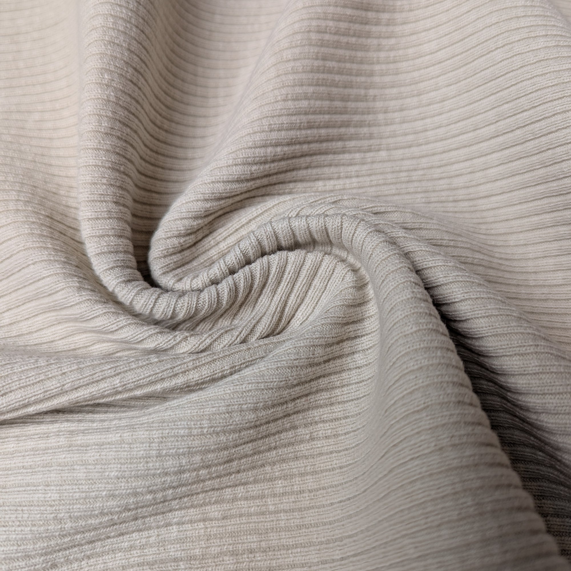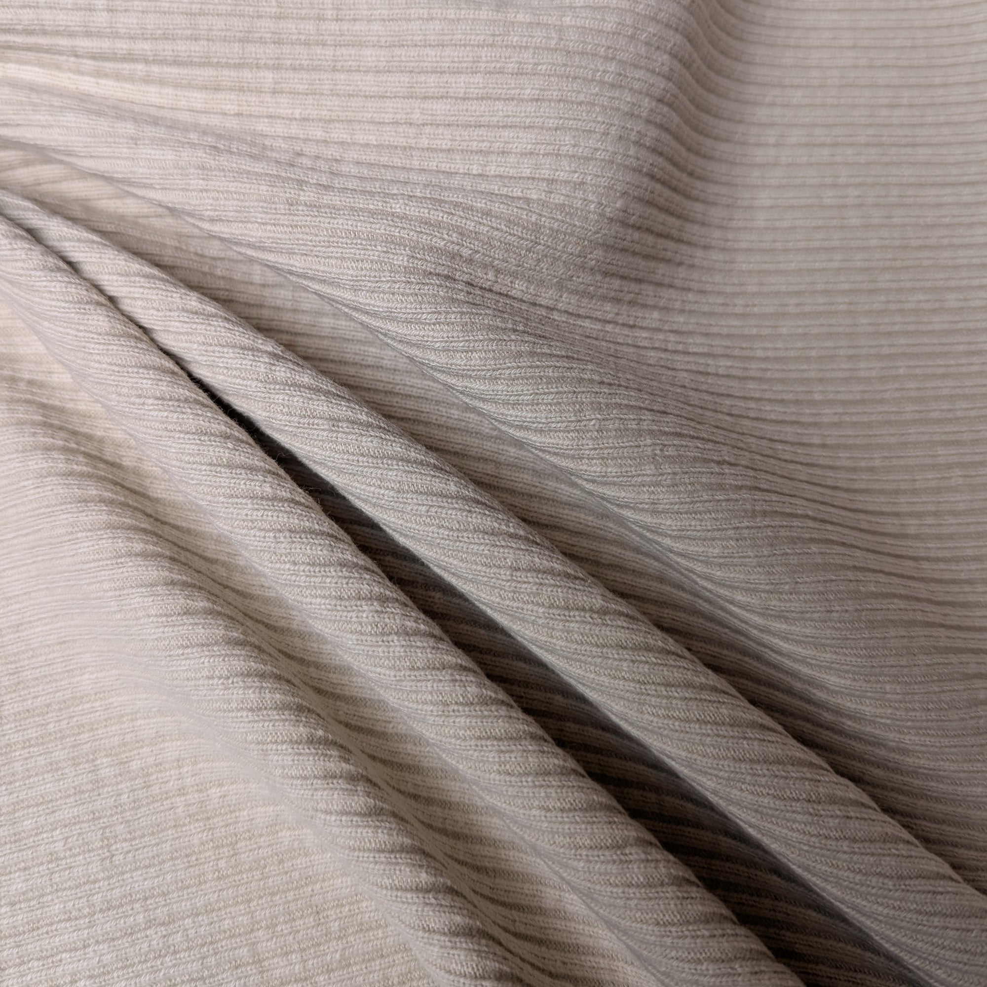 Designerstoff – Deadstock Baumwoll-Ribstrick Austerngrau Meliert Feine Rippenstruktur Basisfarbe keine | Stoffbreite 115 cm | M5X5X6